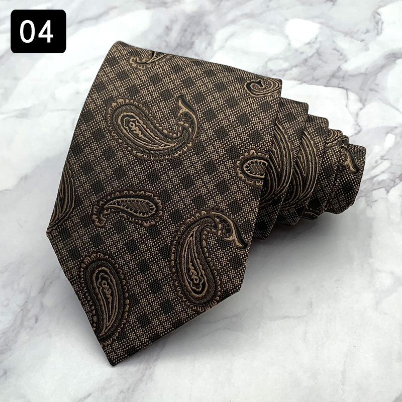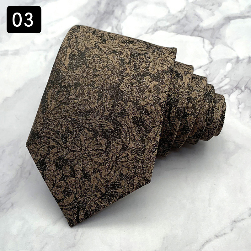 새로운 다크 브라운 넥타이 트렌디 한 남성복 비즈니스 캐주얼 패션 플로랄 넥타이 원사 염색 자카드 핸드 메이드 8CM 와이드