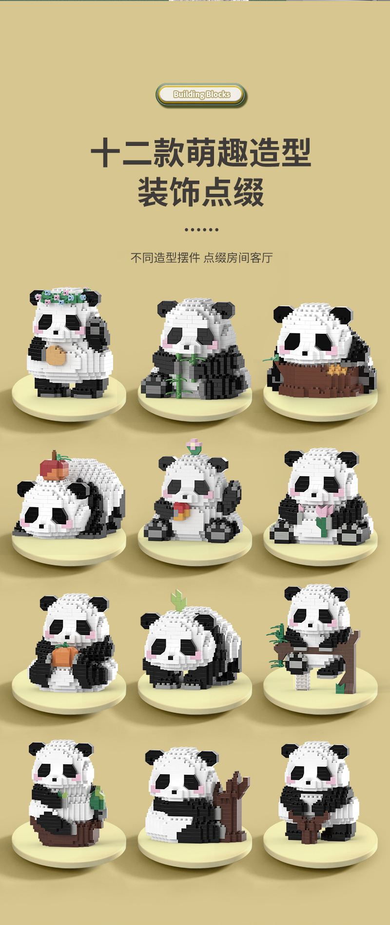 팬더 선물 미세 입자 조립 블록 장난감 레고와 호환 가능한 입체 퍼즐 선물 팬더 테마 블록