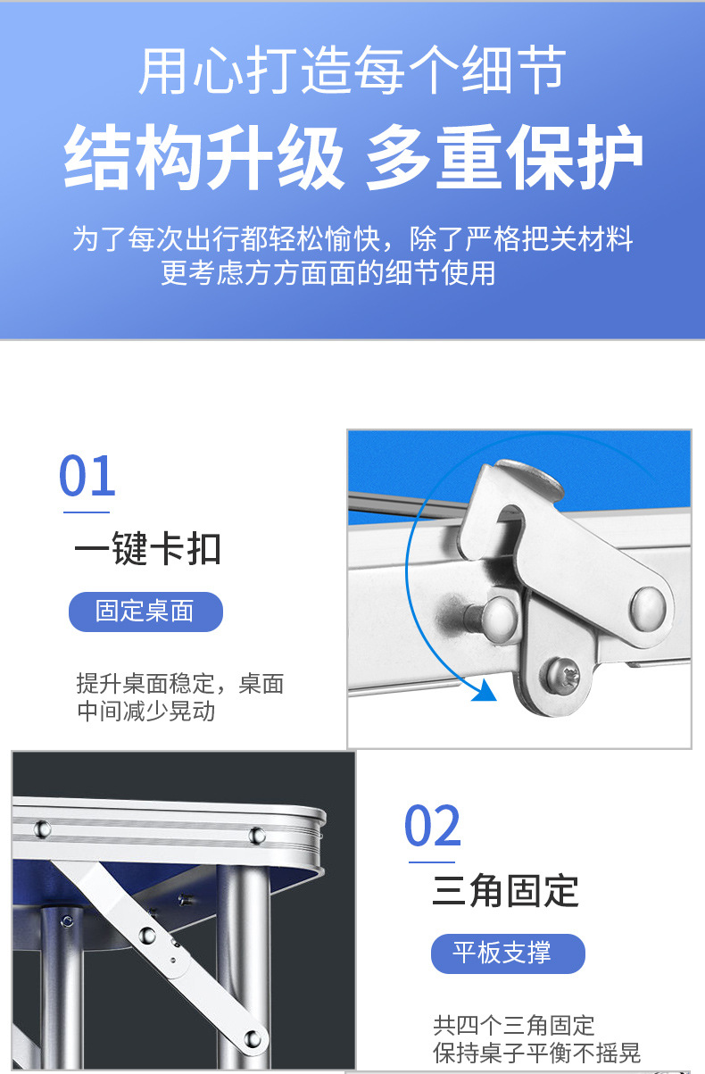 야외 접이식 테이블 야시장 마구간 바닥 푸시 휴대용 작은 테이블 트렁크 캠핑 알루미늄 합금 접이식 식탁과 의자