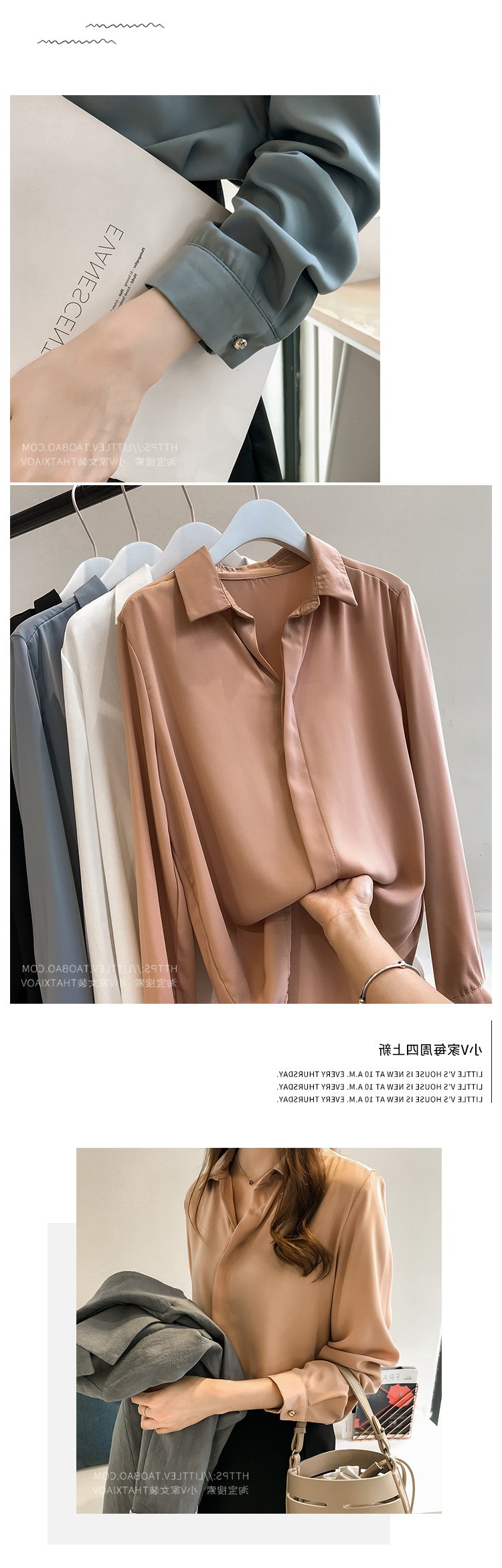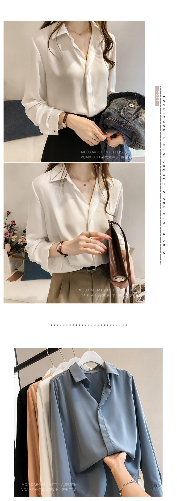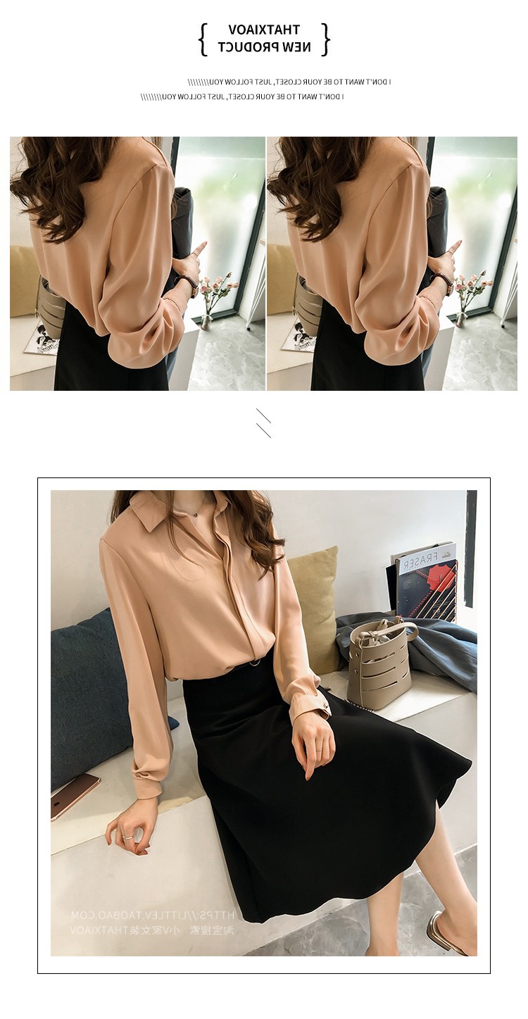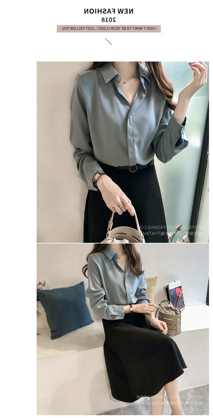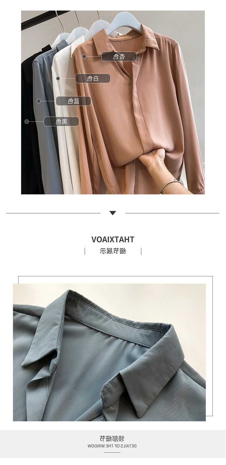 2023 년 봄과 여름 새로운 한국 스타일 우아한 단색 셔츠 여성용 긴 소매 탑 간단한 OL 쉬폰 셔츠베이스 셔츠 트렌디스토어 가기