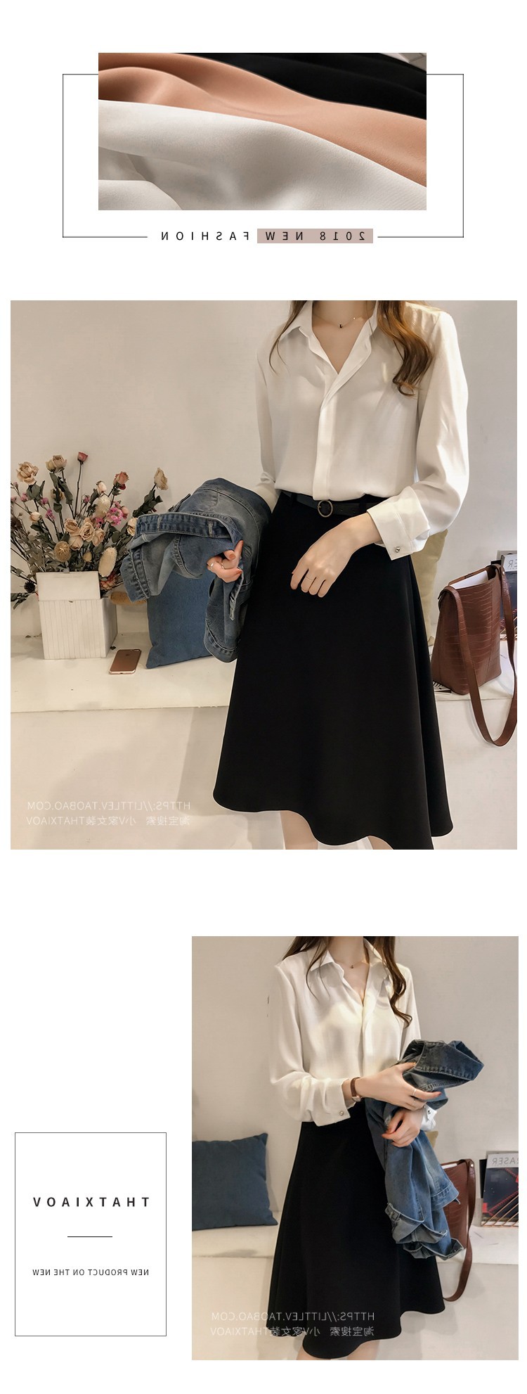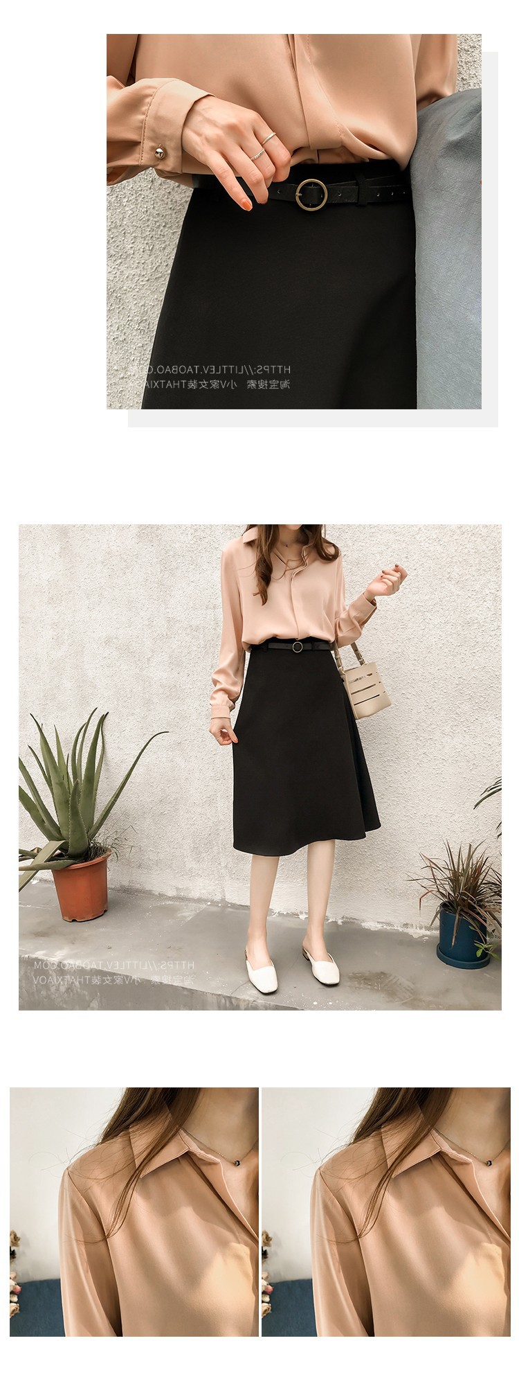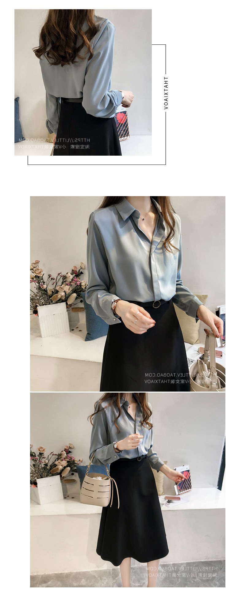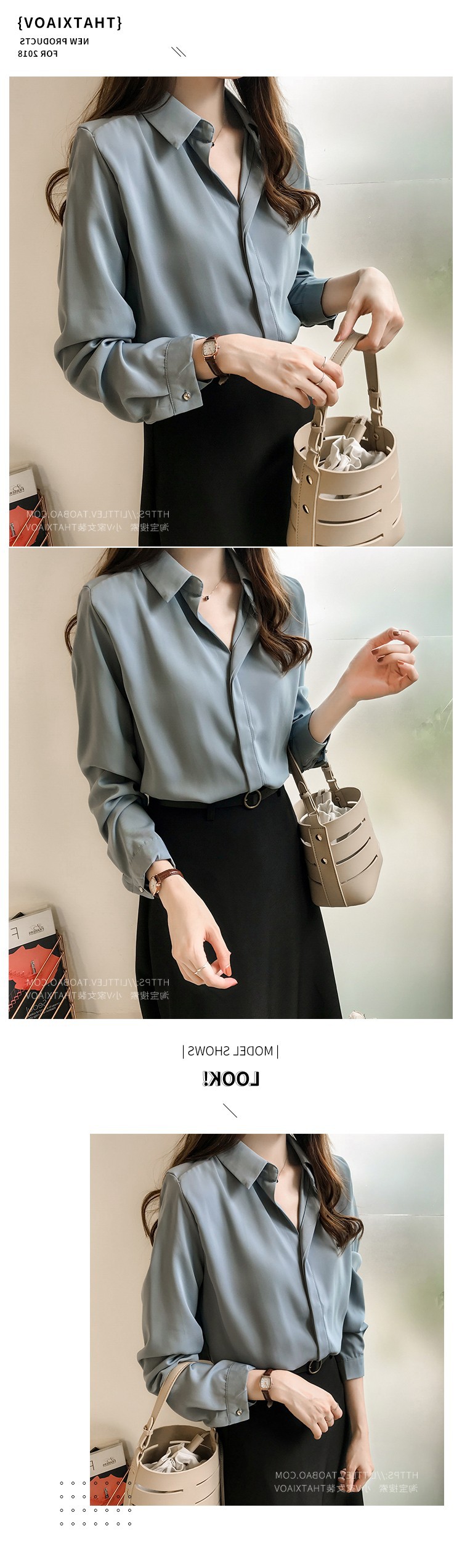 2023 년 봄과 여름 새로운 한국 스타일 우아한 단색 셔츠 여성용 긴 소매 탑 간단한 OL 쉬폰 셔츠베이스 셔츠 트렌디스토어 가기