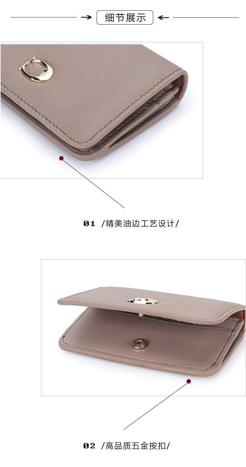 정품 가죽 짧은 지갑 여성 첫 번째 레이어 소 가죽 트리밍 나파 패턴 멀티 카드 통합 반 배 인증서 동전 지갑스토어 가기