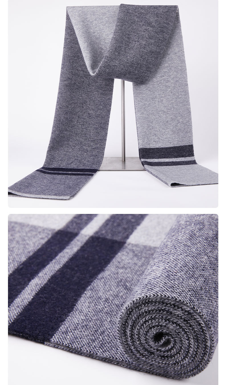 100% 양모 남성 격자 무늬 스카프 새로운 가을과 겨울 따뜻한 한국식 다목적 니트 두꺼운 스카프 선물 상자스토어 가기