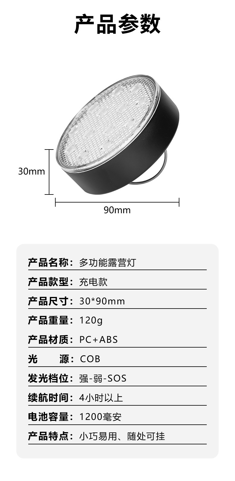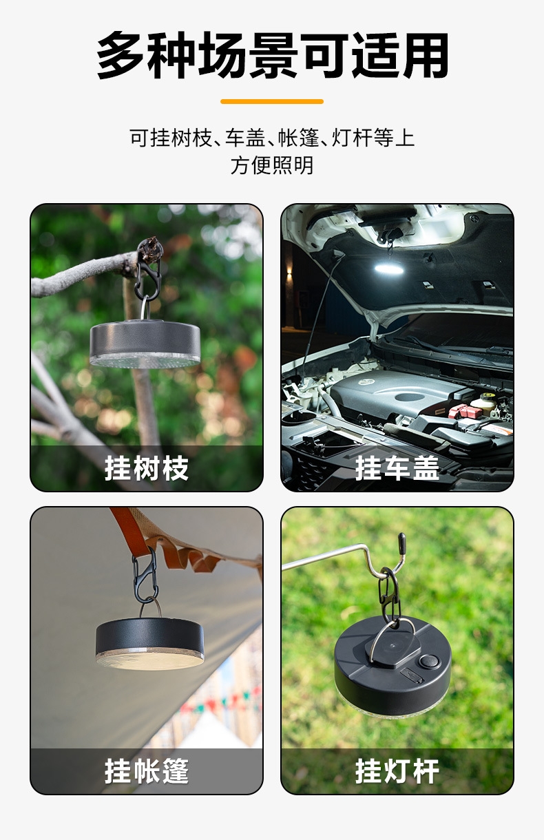 24 년 새로운 라운드 다기능 캠핑 조명 야외 휴대용 캠핑 조명 충전식 텐트 비상 작은 교수형 조명
