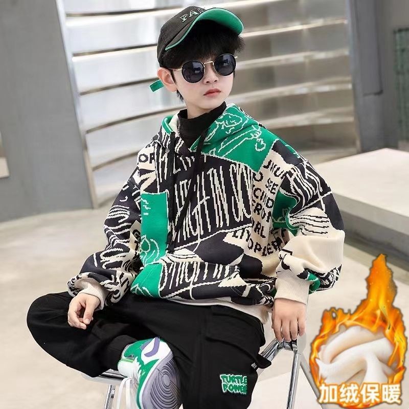 가을과 겨울 소년의 잘 생긴 기모 두꺼운 따뜻한 후드 스웨터 미디어와 큰 아이들 느슨한 캐주얼 재킷 긴팔 탑스토어 가기