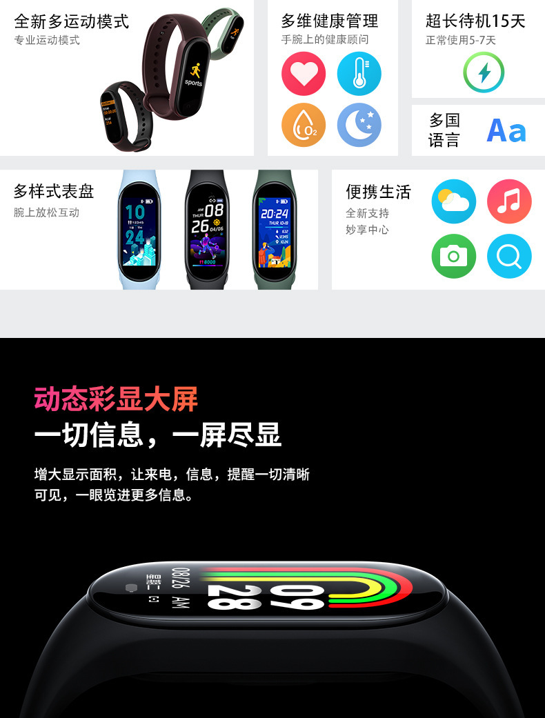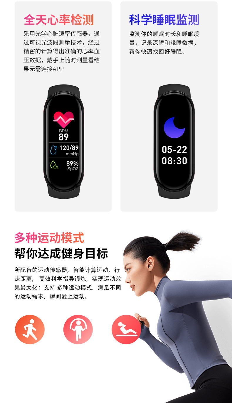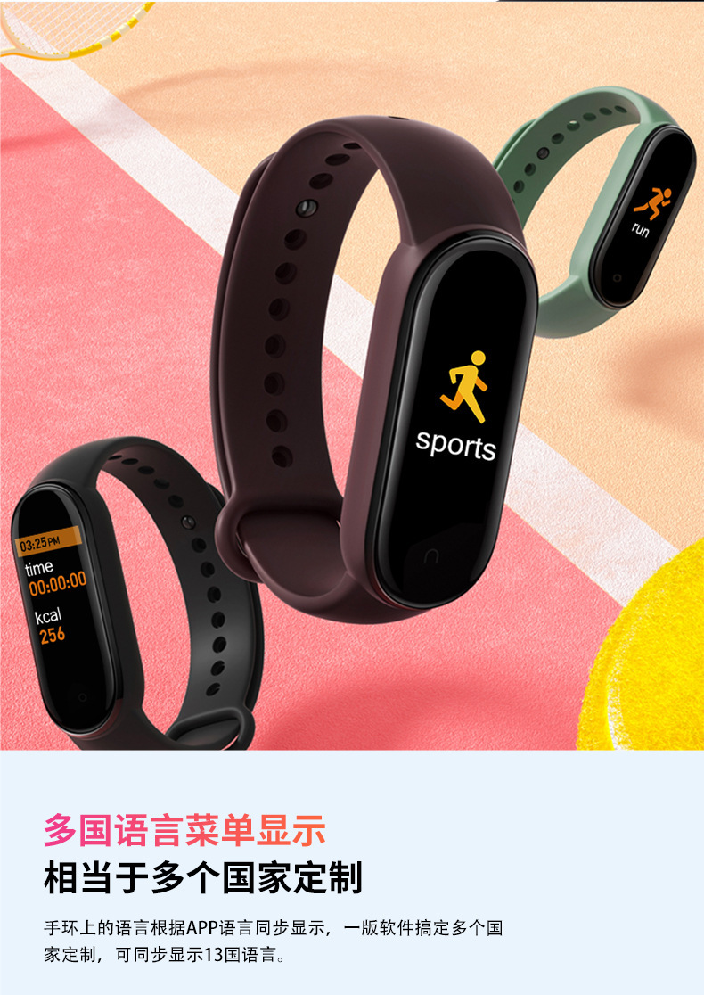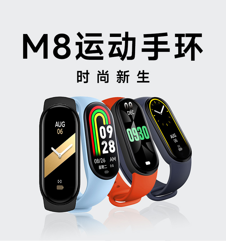 M8 스마트 팔찌 스포츠 단계 계산 블루투스 심박수 혈압 혈액 산소 건강 모니터링 스포츠 팔찌 공장 재고스토어 가기