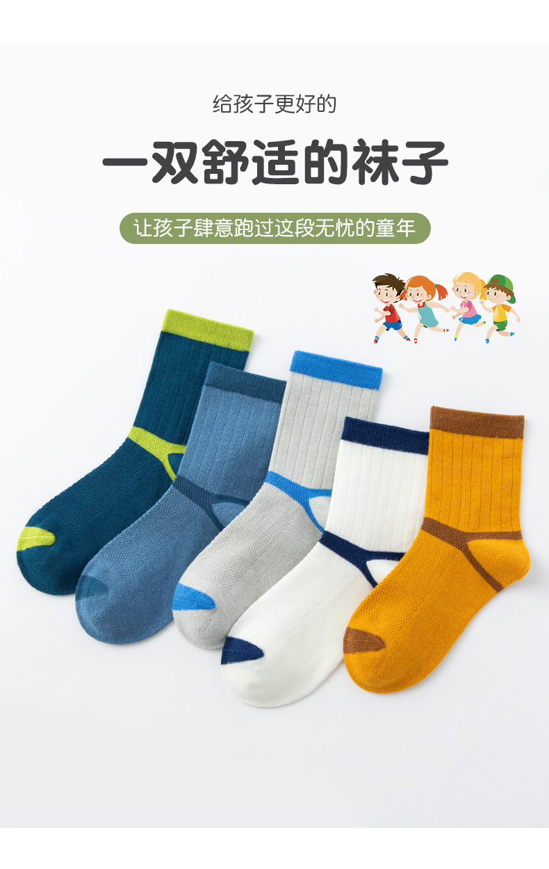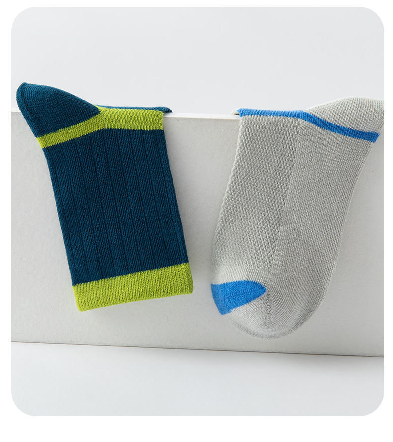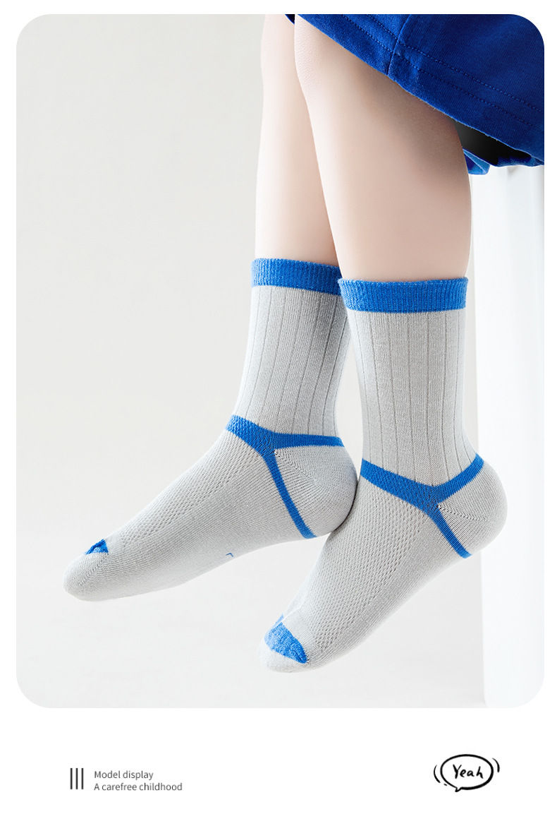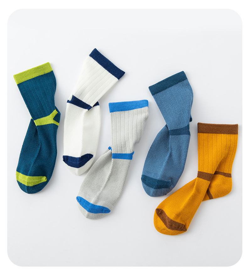 뼈없는 어린이 양말 남학생 코튼 메쉬 가로 줄무늬 중반 종아리 양말 통기성 땀 흡수성 스포츠 조수 양말 봄과 여름 얇은 스타킹