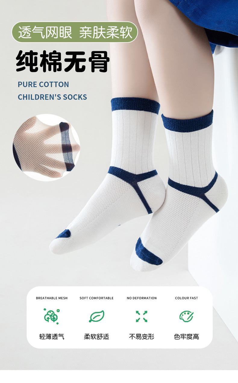 뼈없는 어린이 양말 남학생 코튼 메쉬 가로 줄무늬 중반 종아리 양말 통기성 땀 흡수성 스포츠 조수 양말 봄과 여름 얇은 스타킹스토어 가기