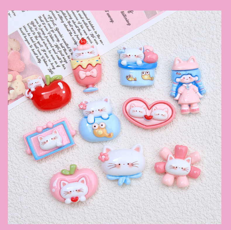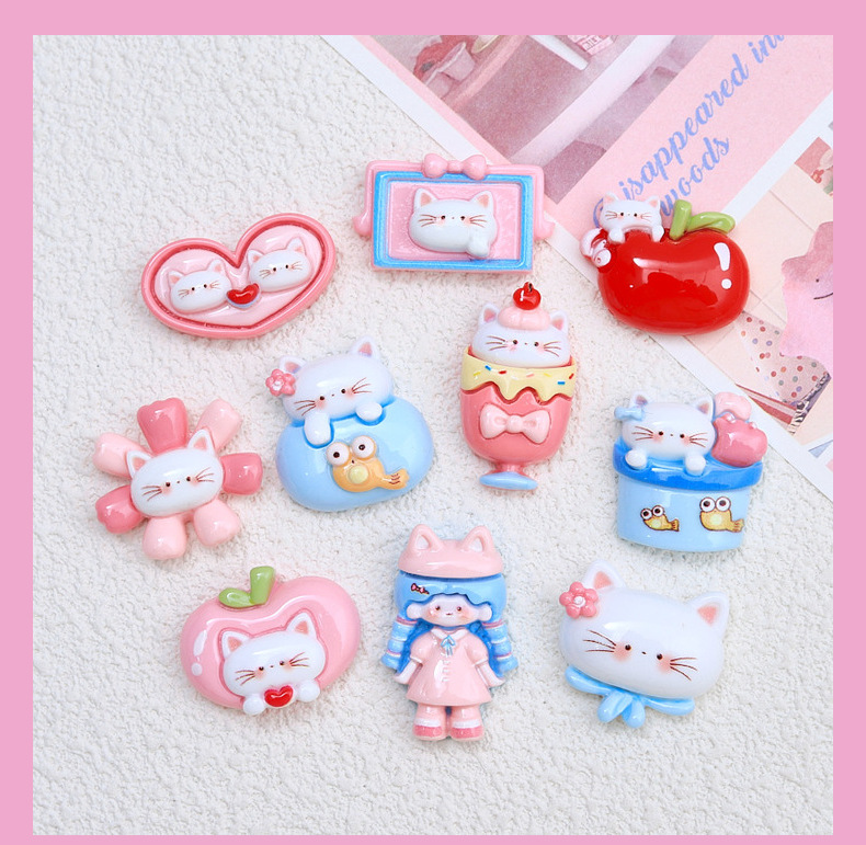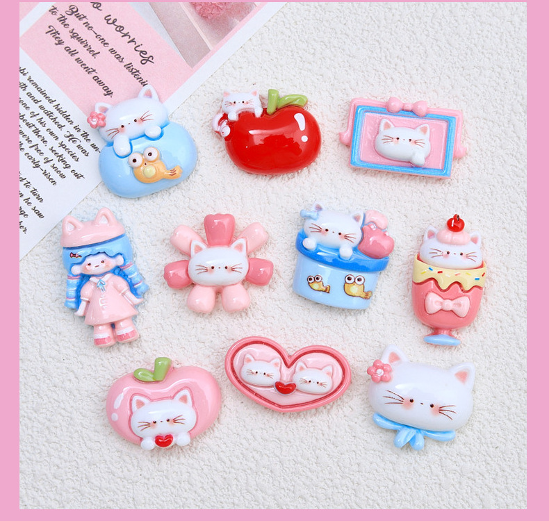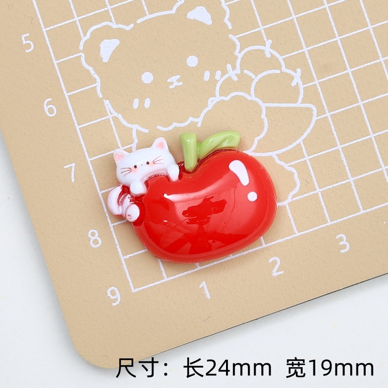 귀여운 사과 고양이 만화 크림 접착제 액세서리 창조적 인 신발 버클 소재 수지 액세서리 diy 보석 머리핀