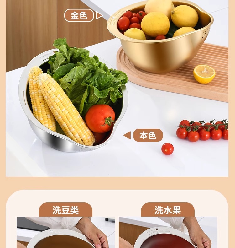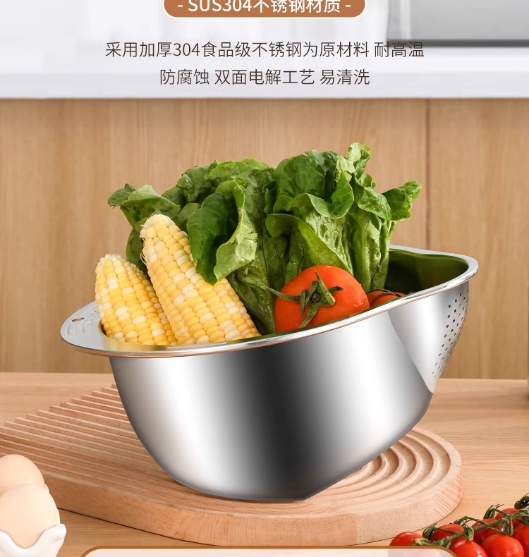304 스테인레스 스틸 배수 바구니 쌀 세척 유물 쌀 세척 체 과일 플레이트 배수 분지 가정용 주방 특수 야채 세척 분지