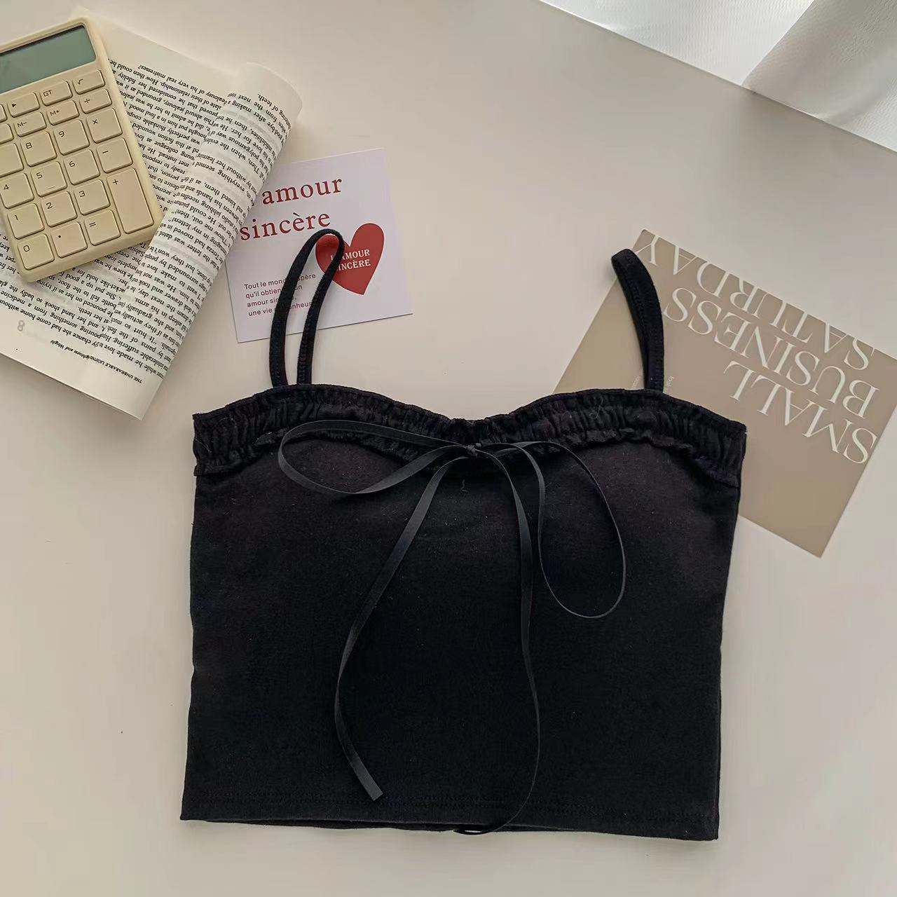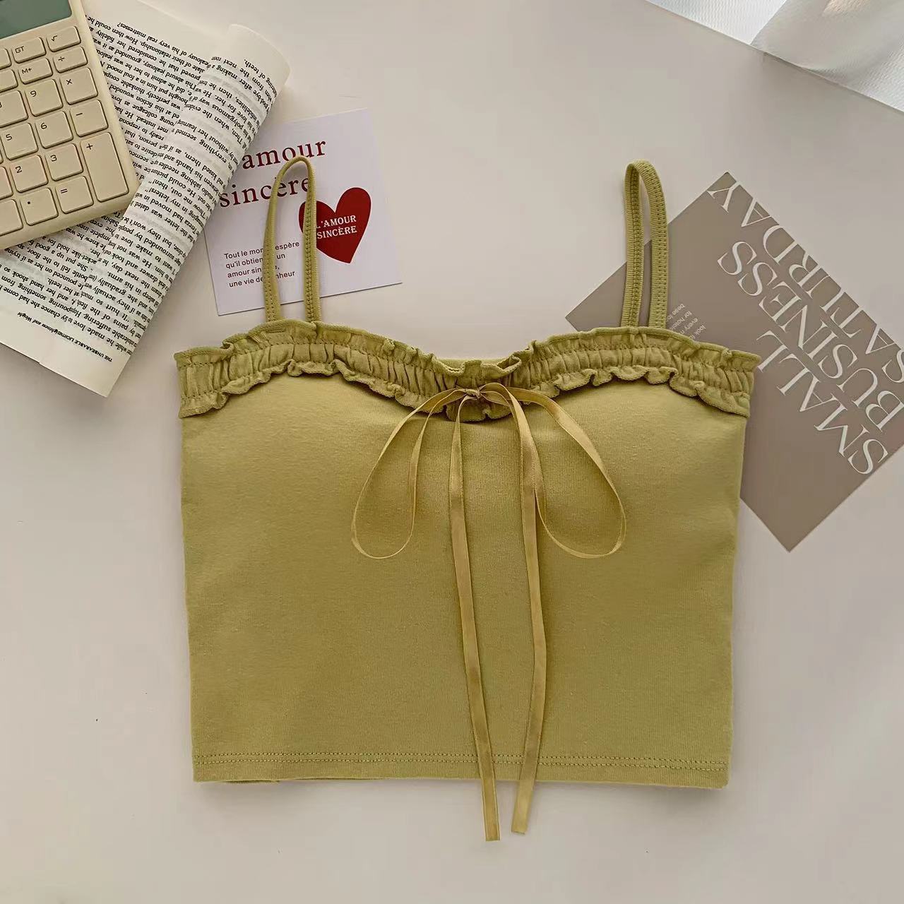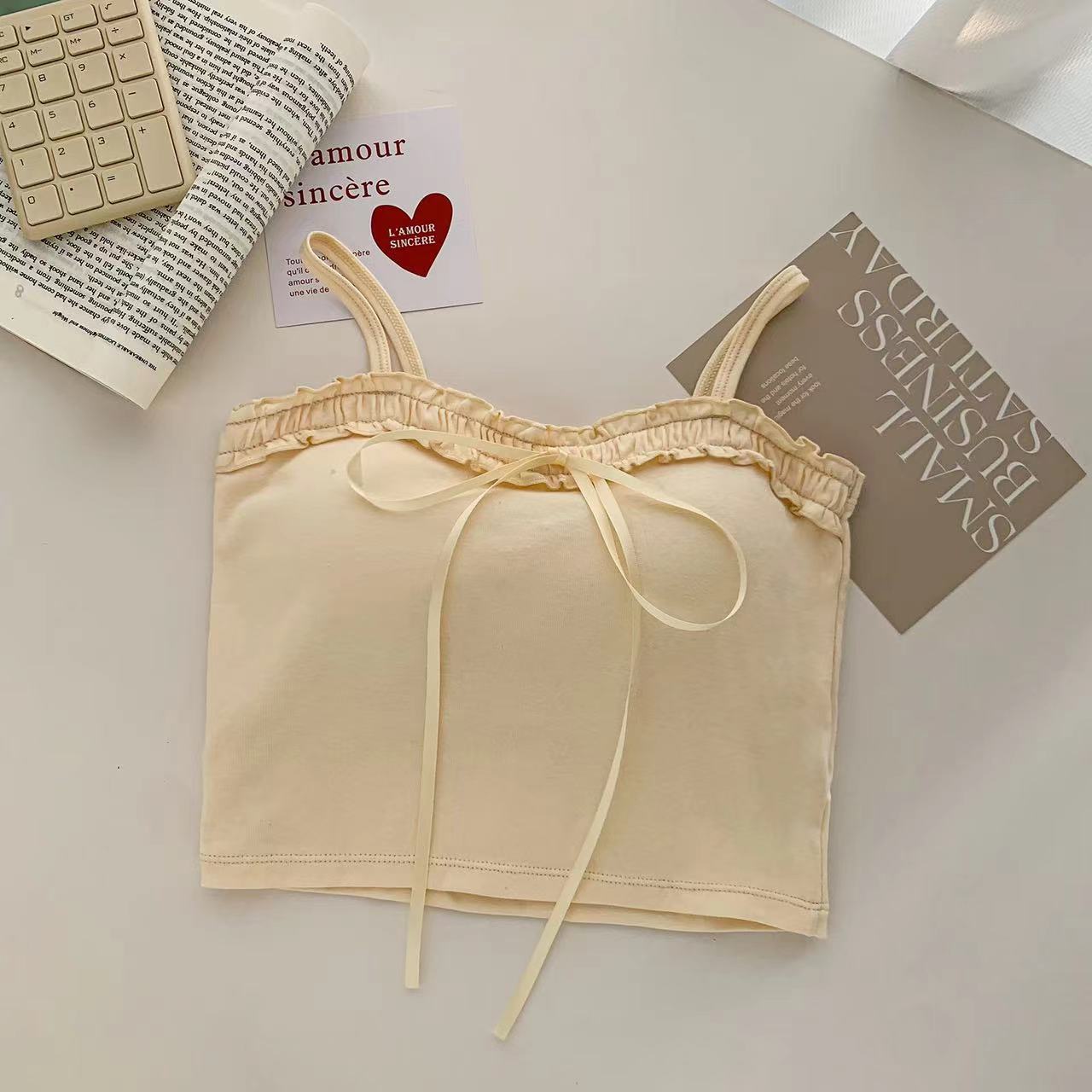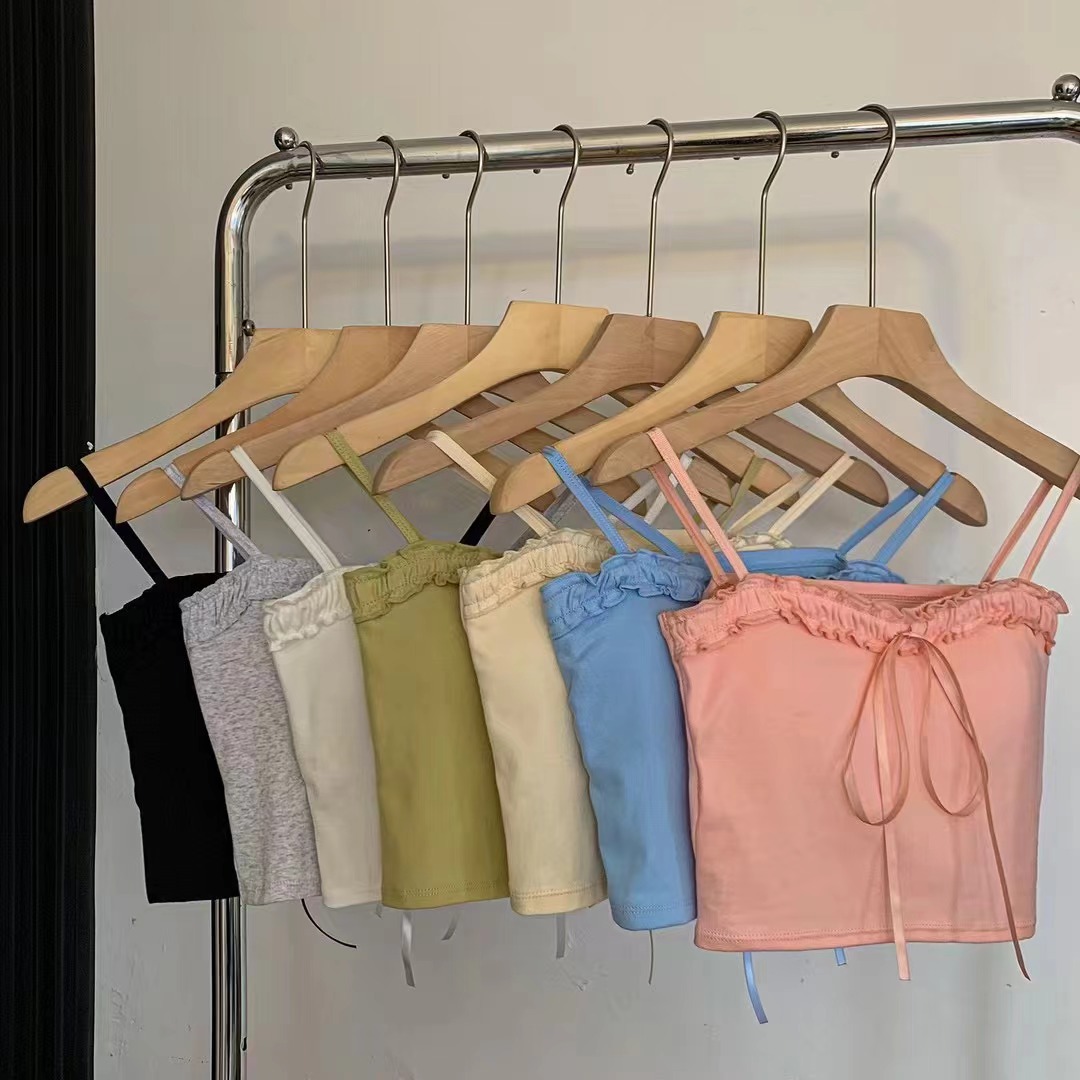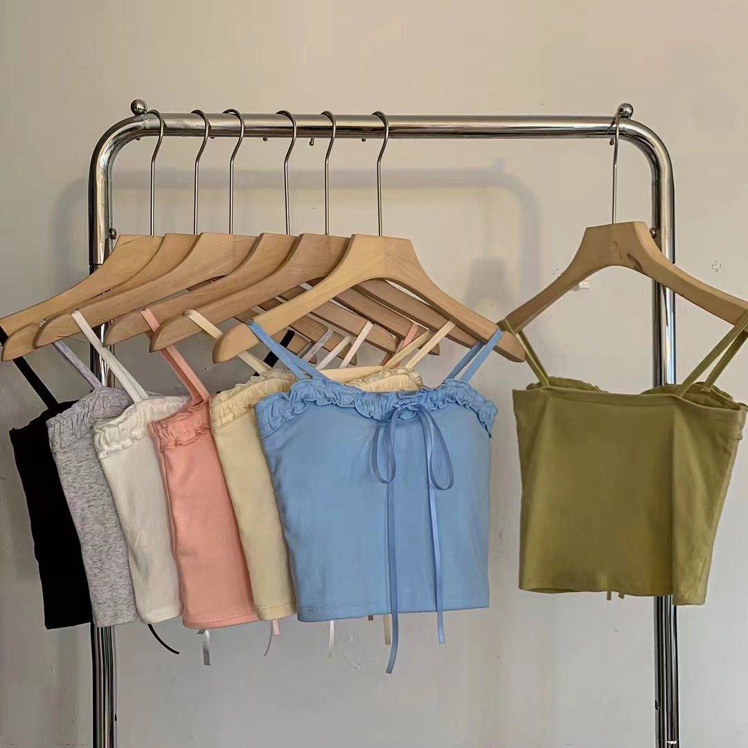 694 # 코튼 디자인 활 캐미솔 여성용 짧은 가슴 패드 슬림 슬리밍 다목적 탑스토어 가기