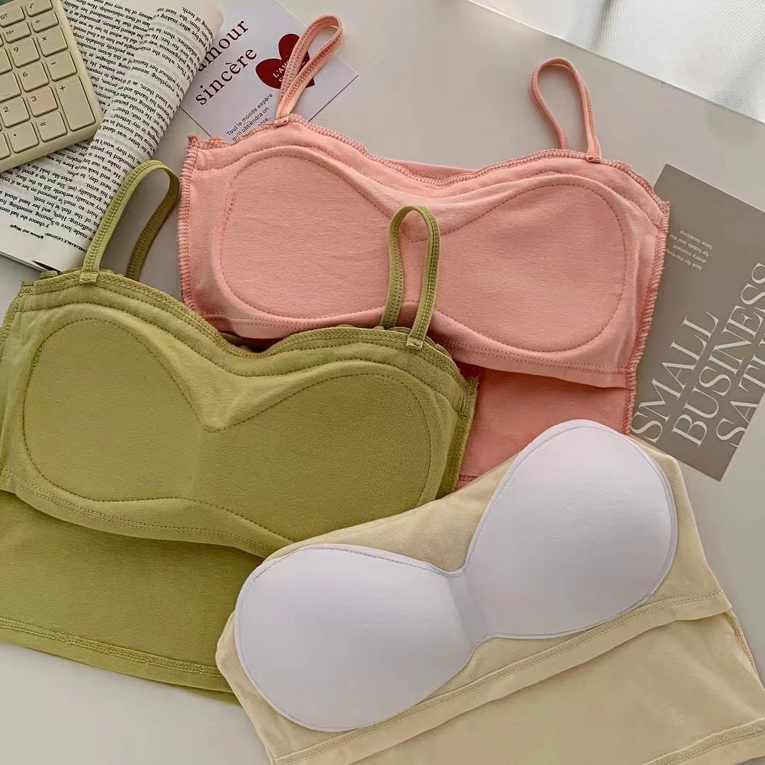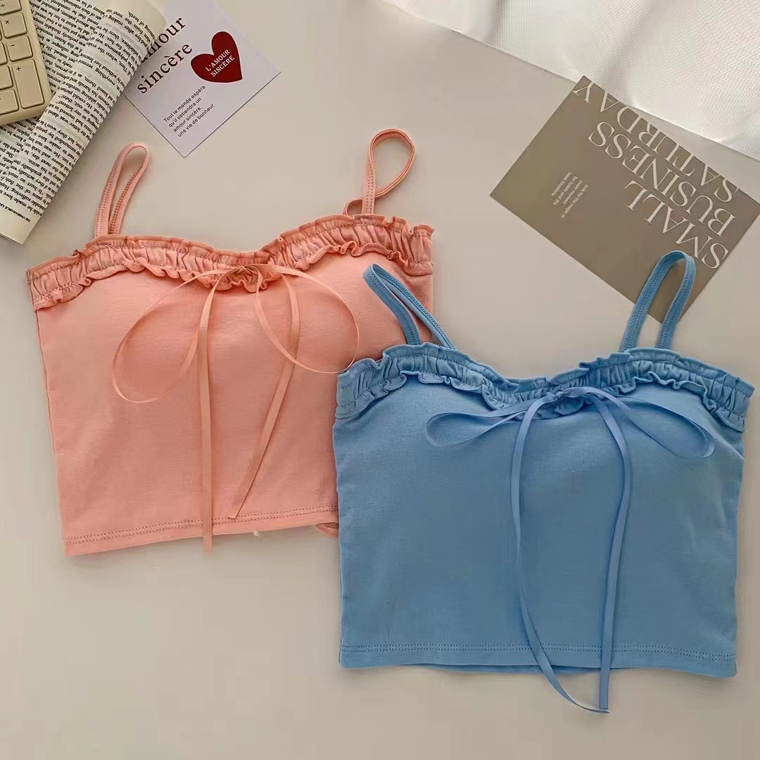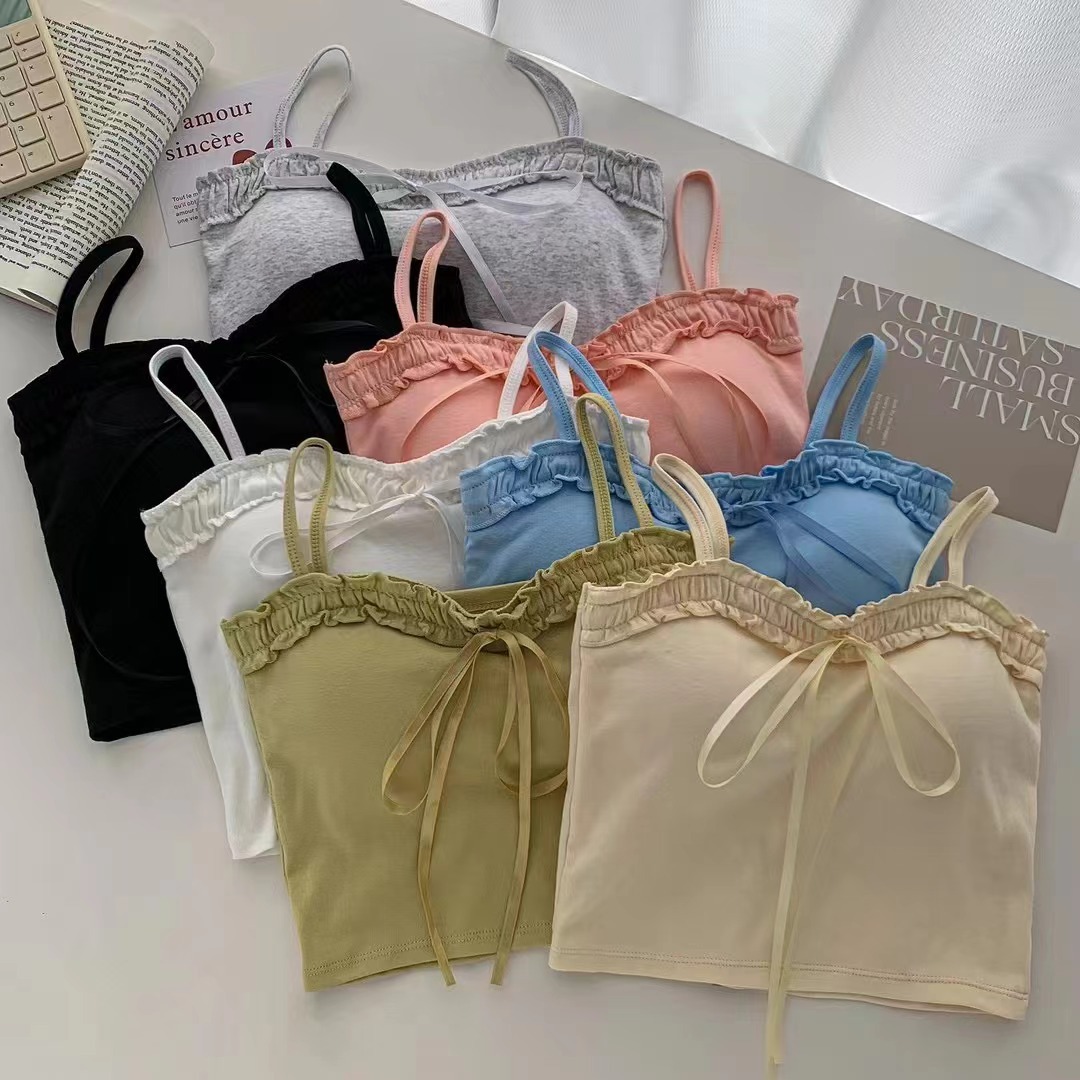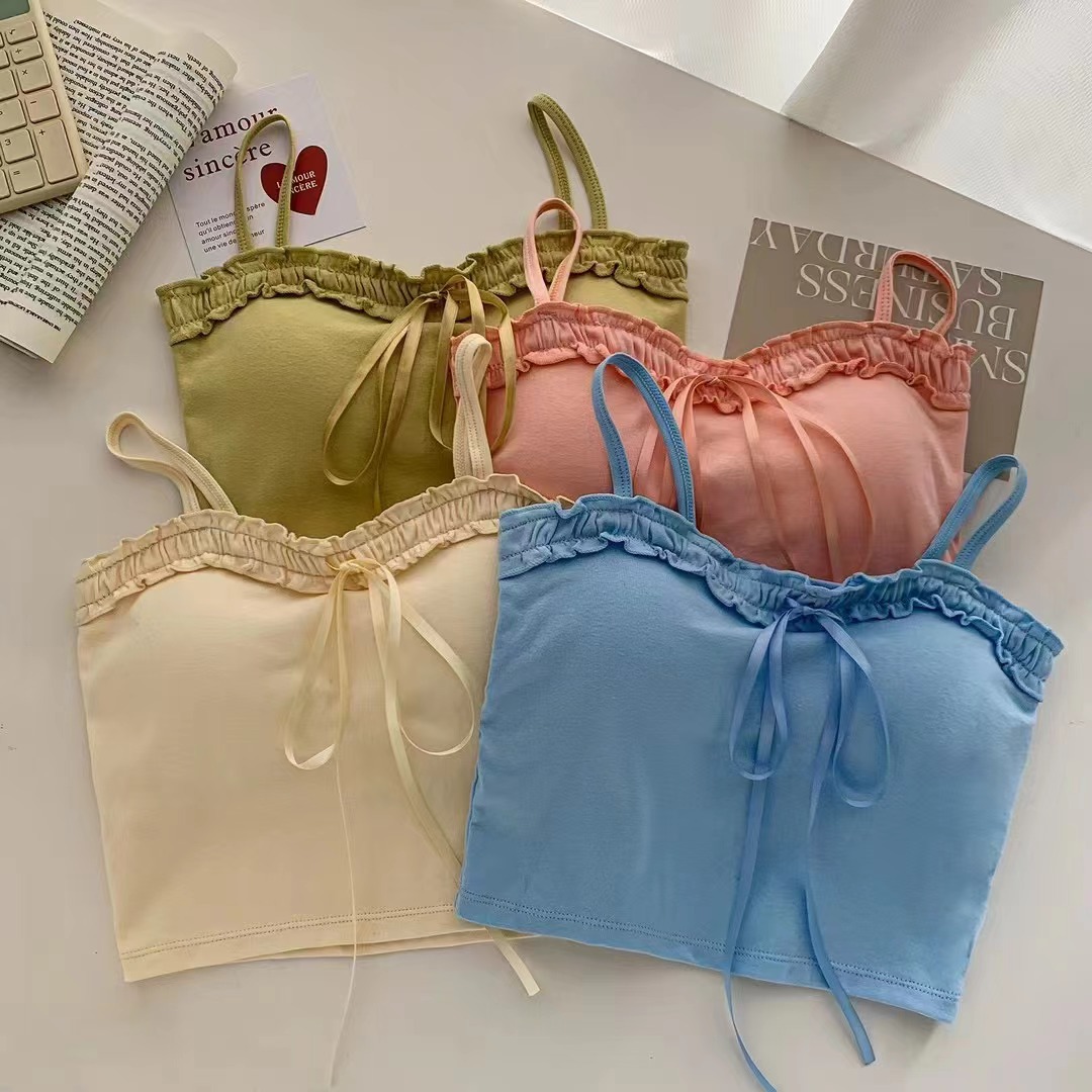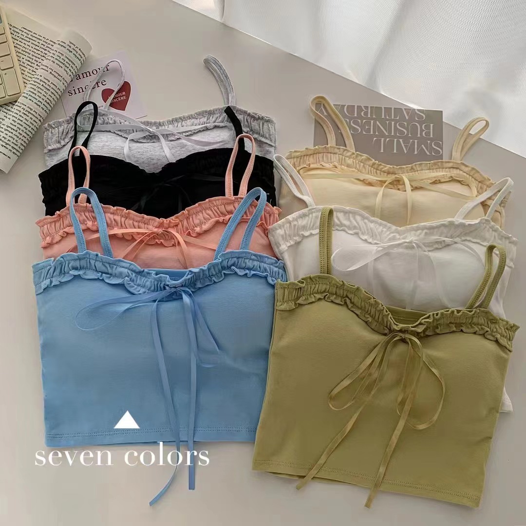 694 # 코튼 디자인 활 캐미솔 여성용 짧은 가슴 패드 슬림 슬리밍 다목적 탑
