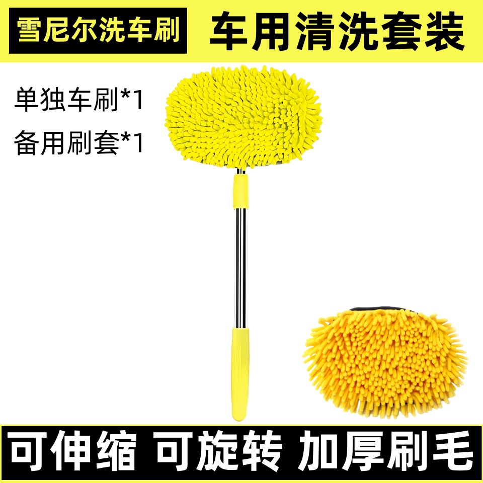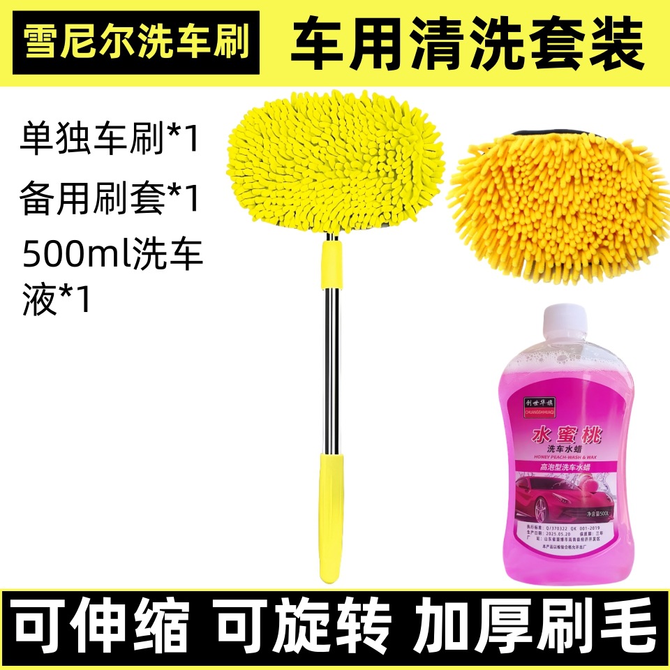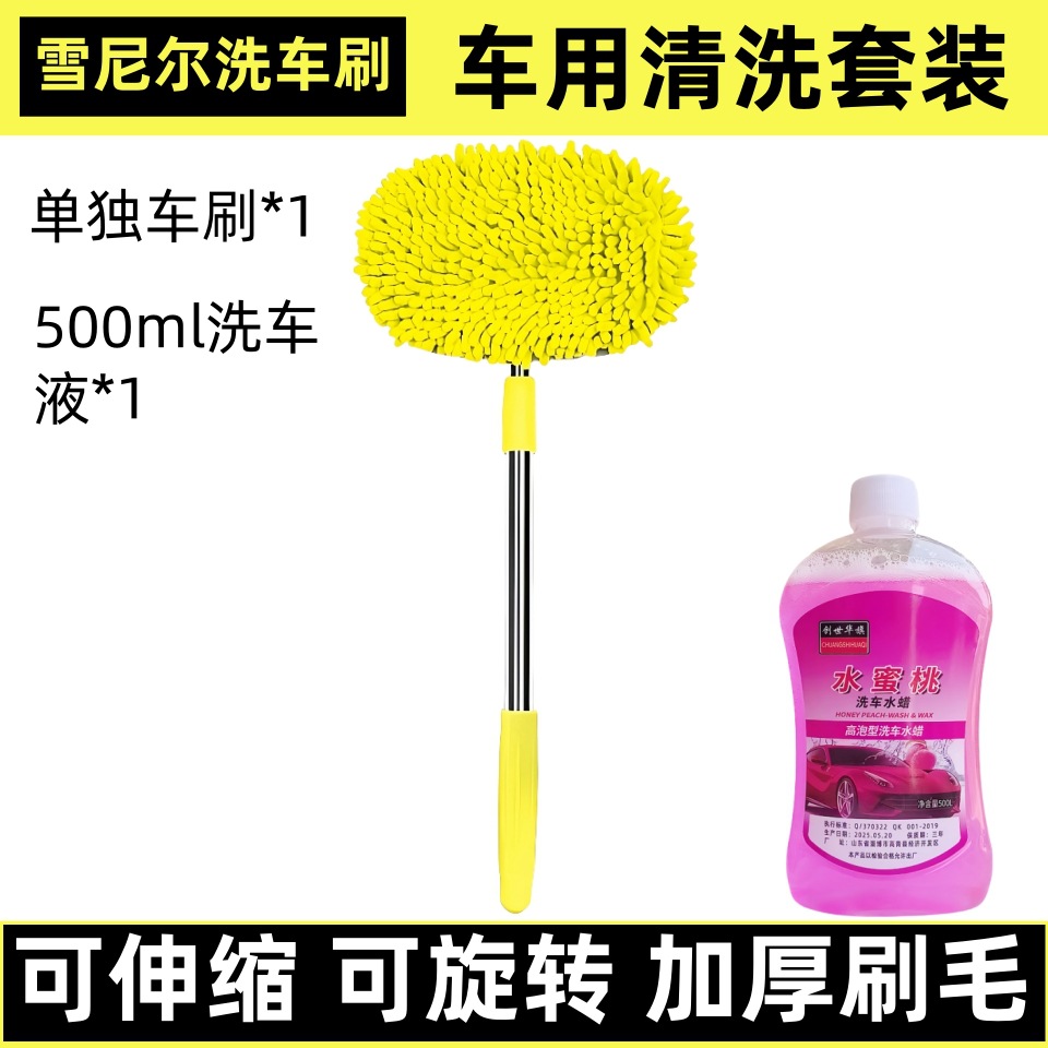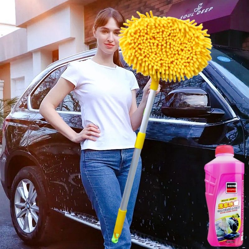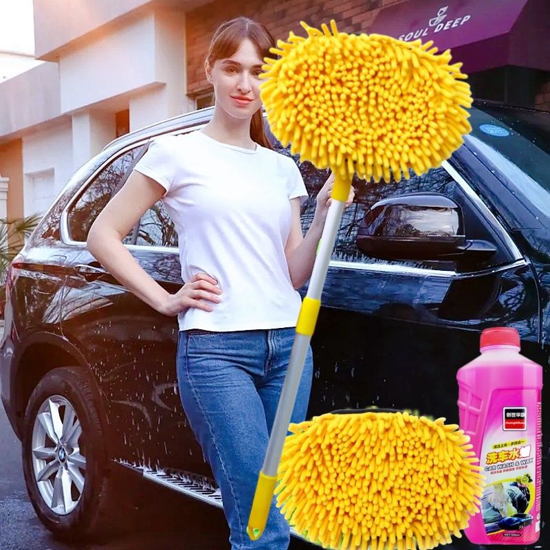 • [노란 chenille] 2 섹션 세차 브러시 + 세차 액체