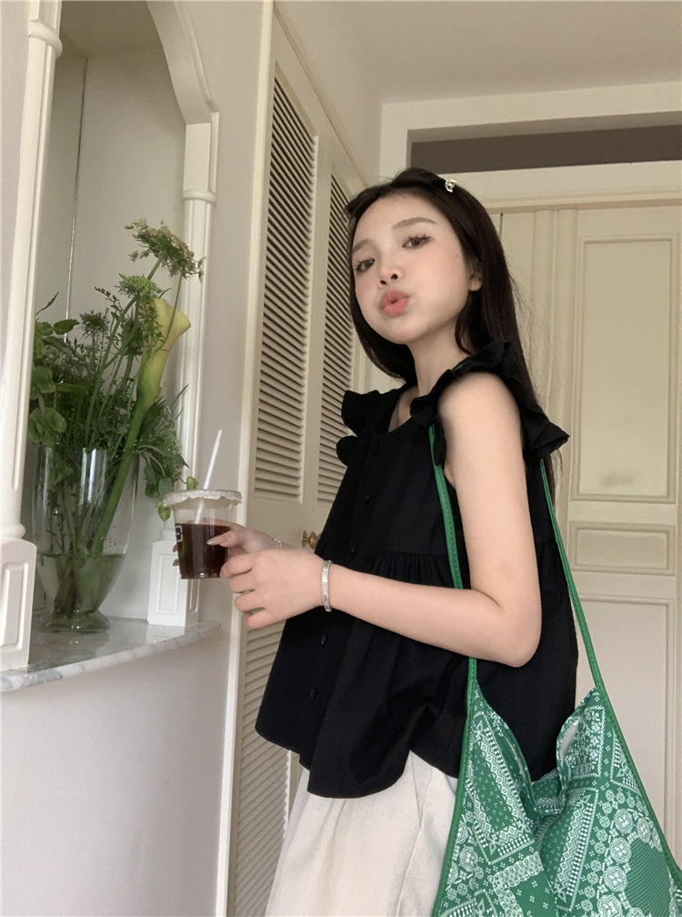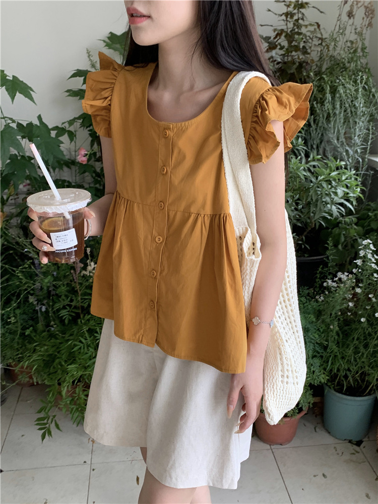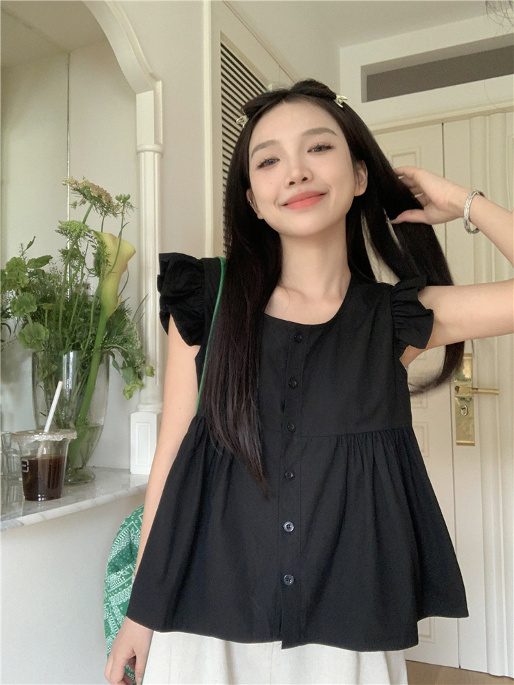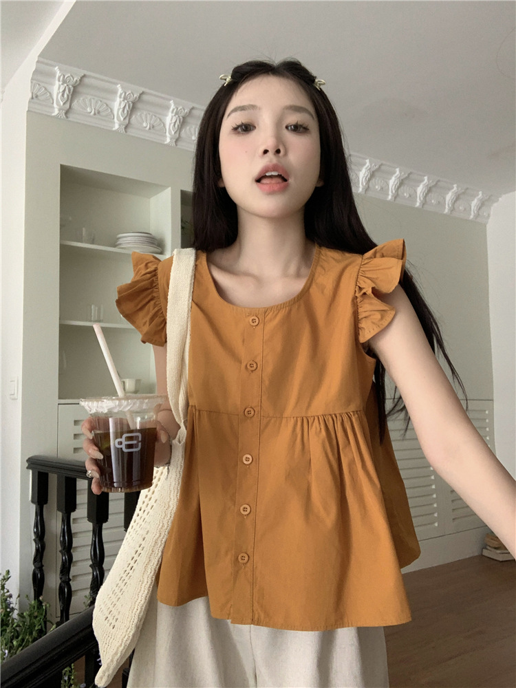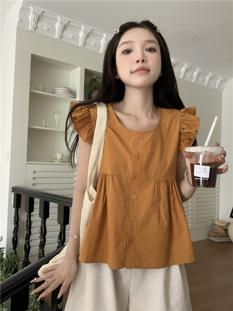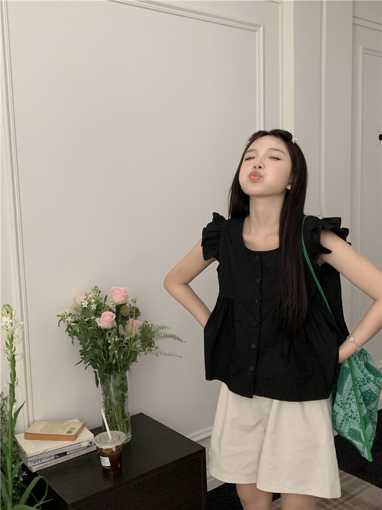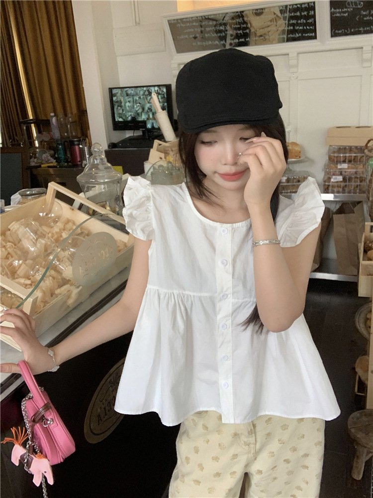 시폰 2025 새 스타일 배꼽 노출 핫 소녀 짧은 단색 반팔 여름 드레스 플라잉 슬리브 스퀘어 넥 격자 무늬 프렌치 스타일스토어 가기