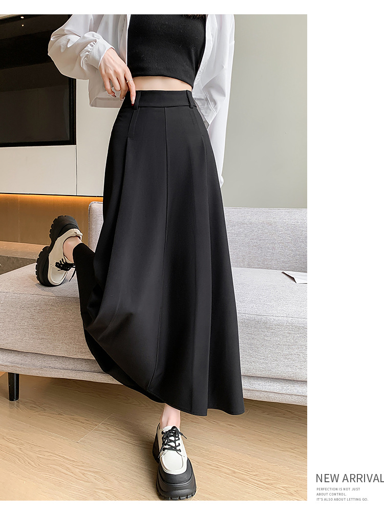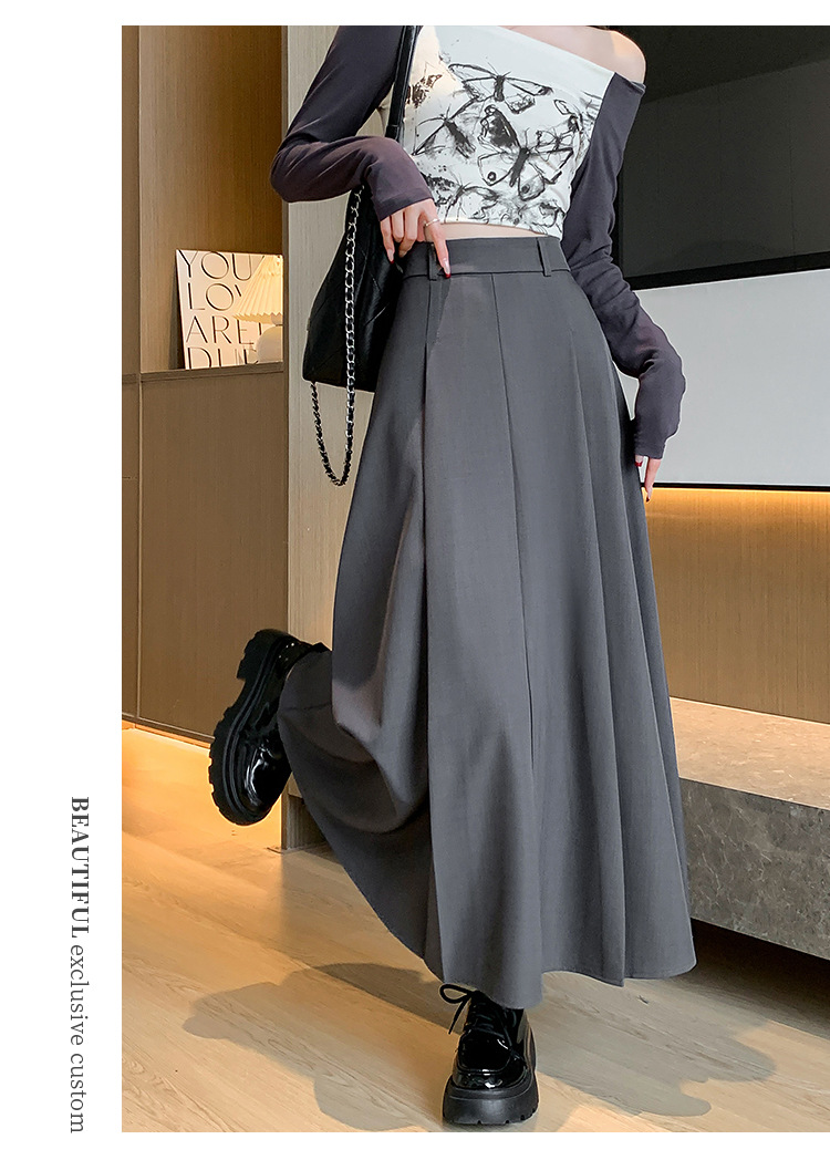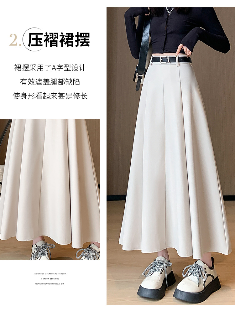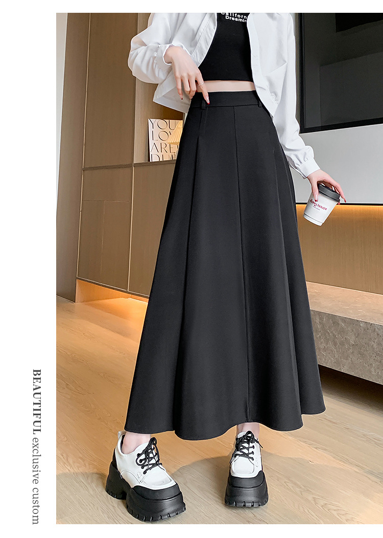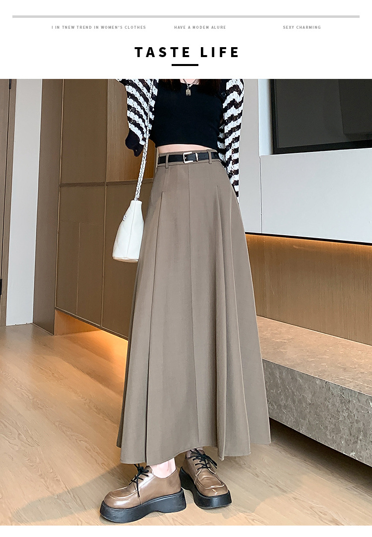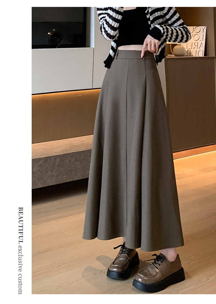 큰 밑단의 스커트, 가을 겨울 신상 플리츠 스커트, 하이웨이스트 슬림핏, 고급스러운 중간 길이 스커트, 우아한 분위기의 정장