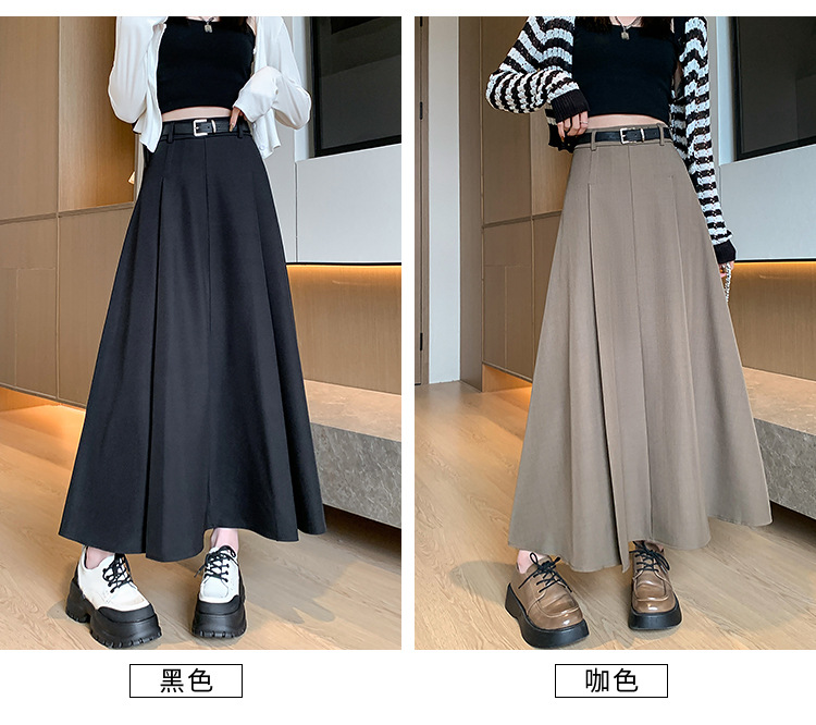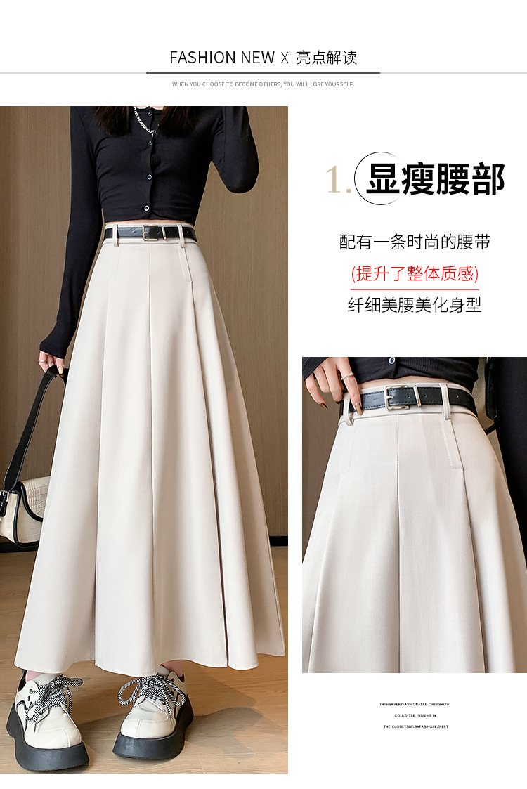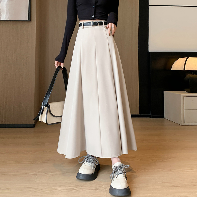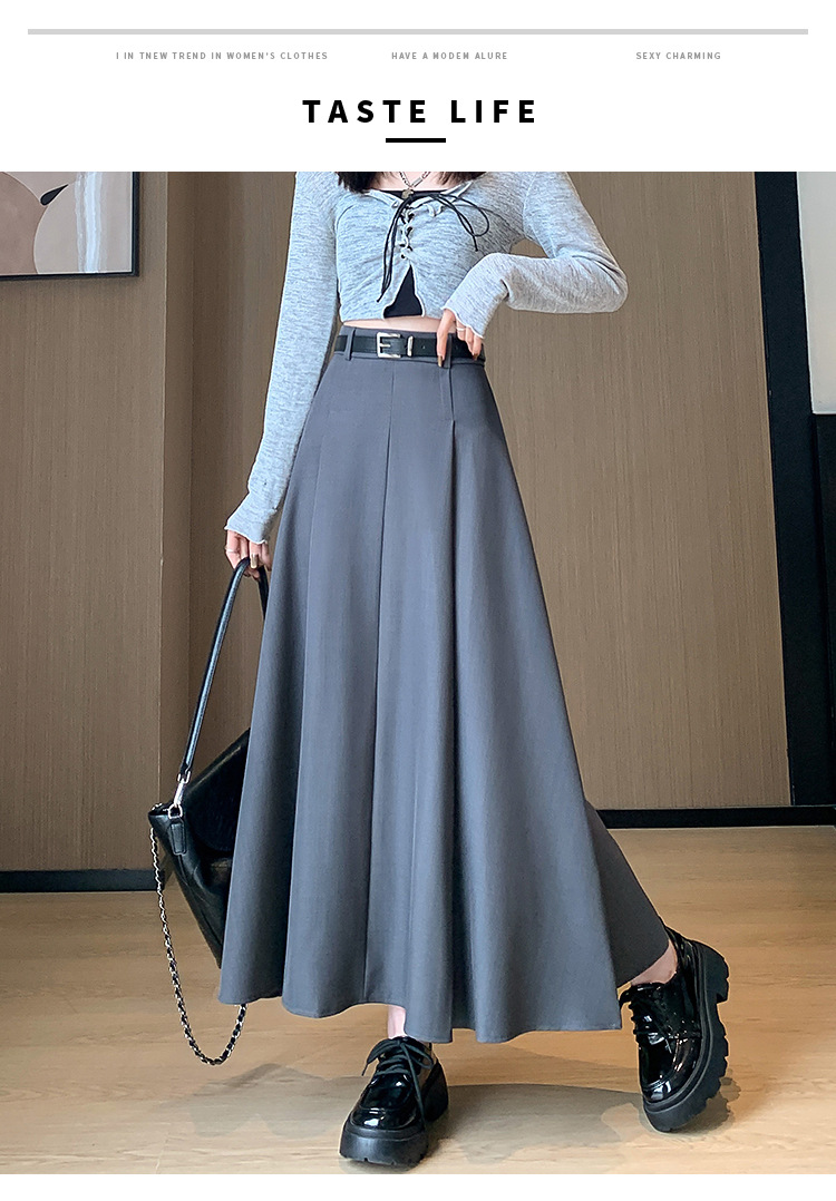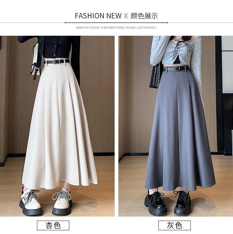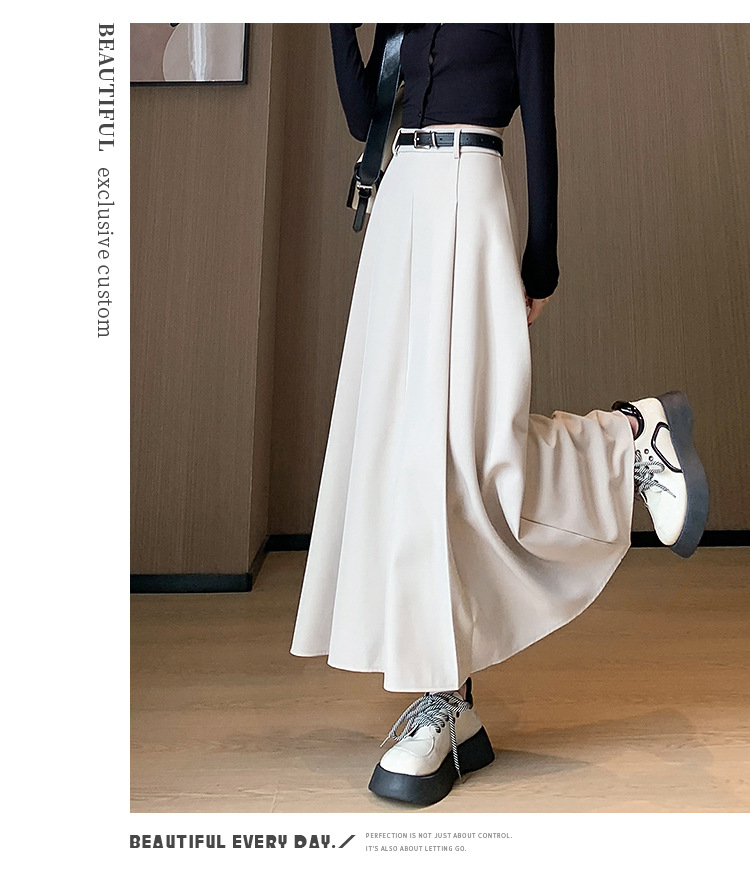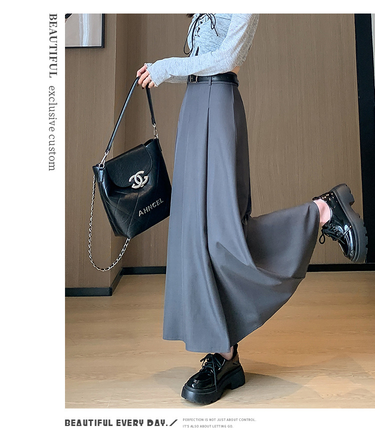 큰 밑단의 스커트, 가을 겨울 신상 플리츠 스커트, 하이웨이스트 슬림핏, 고급스러운 중간 길이 스커트, 우아한 분위기의 정장