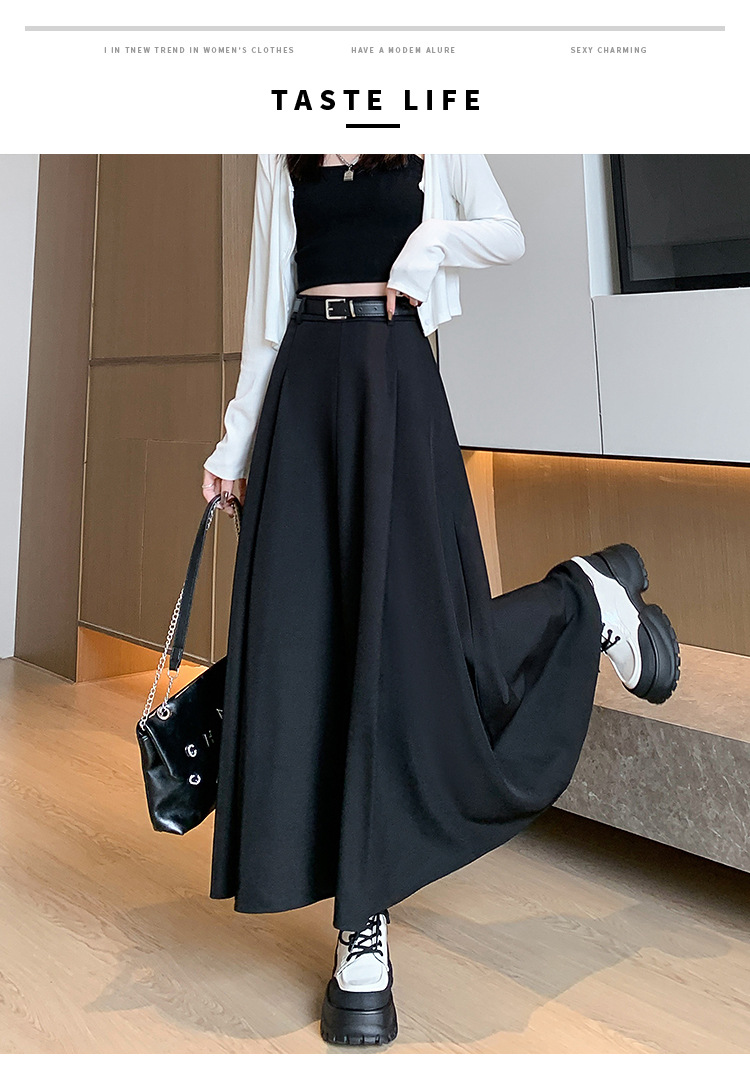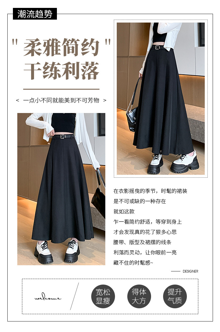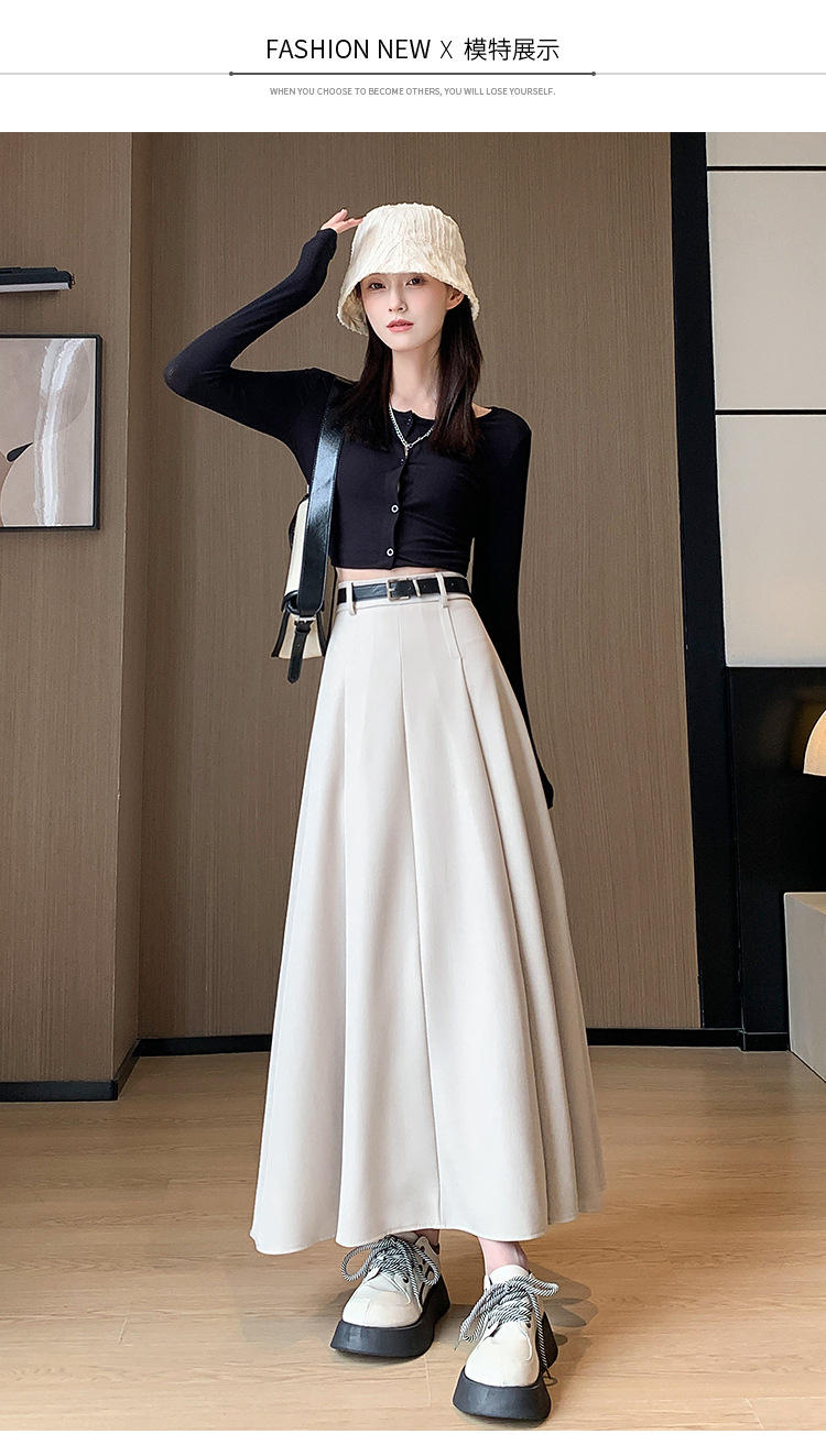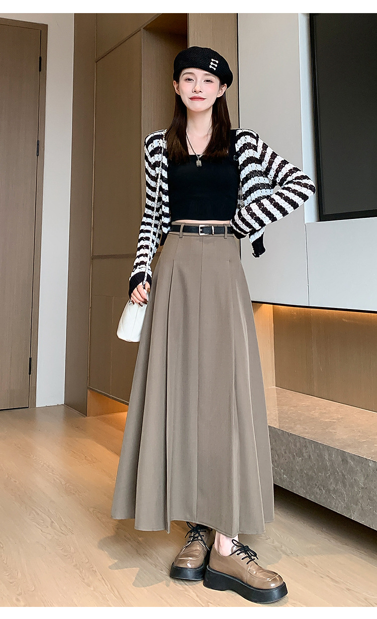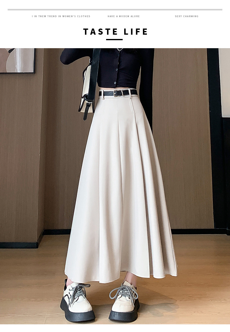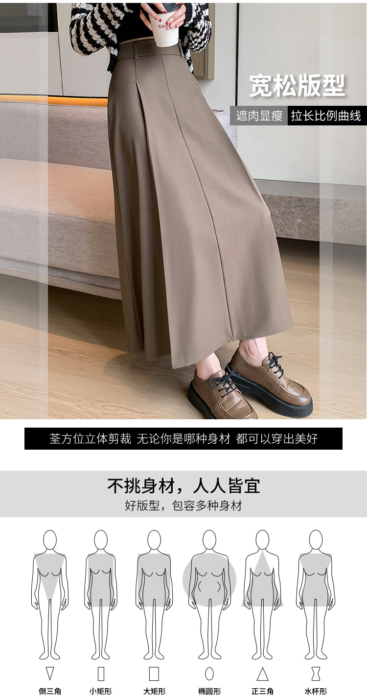 큰 밑단의 스커트, 가을 겨울 신상 플리츠 스커트, 하이웨이스트 슬림핏, 고급스러운 중간 길이 스커트, 우아한 분위기의 정장