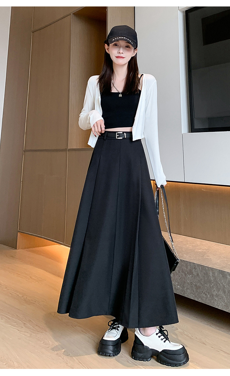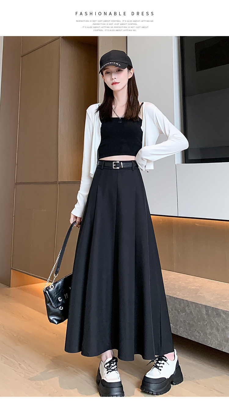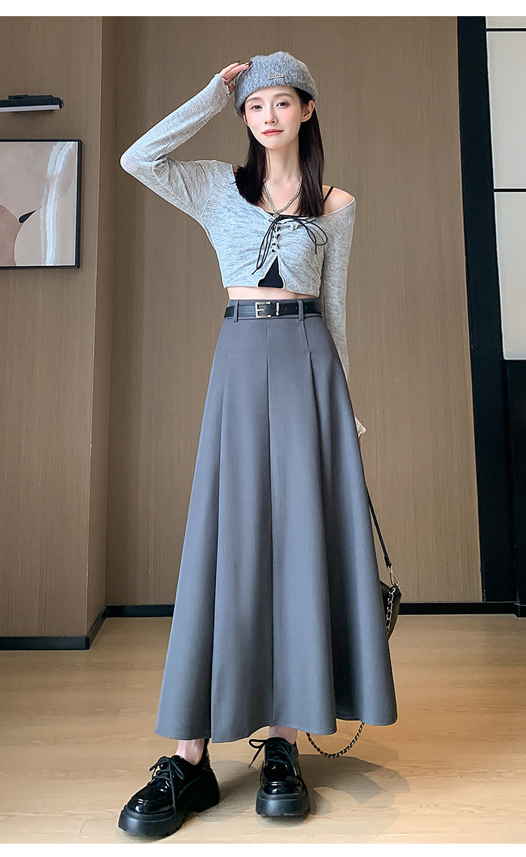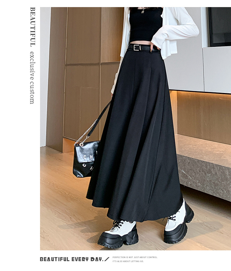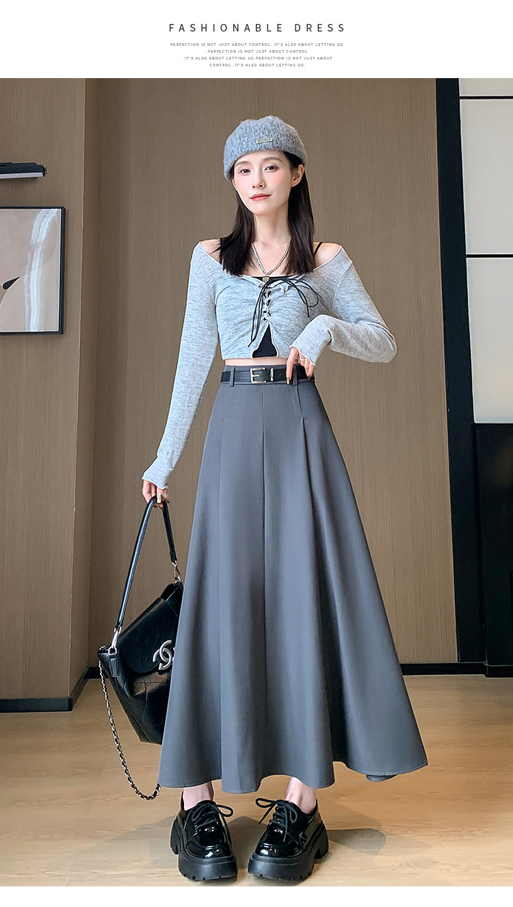 큰 밑단의 스커트, 가을 겨울 신상 플리츠 스커트, 하이웨이스트 슬림핏, 고급스러운 중간 길이 스커트, 우아한 분위기의 정장