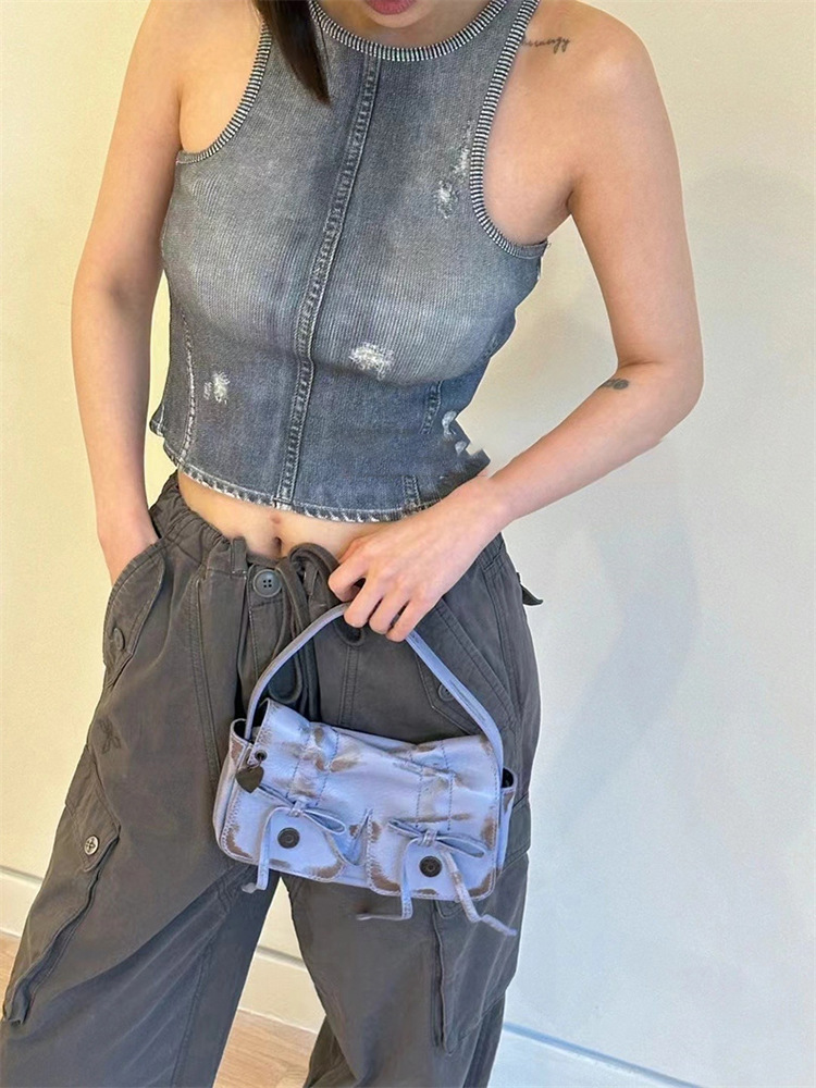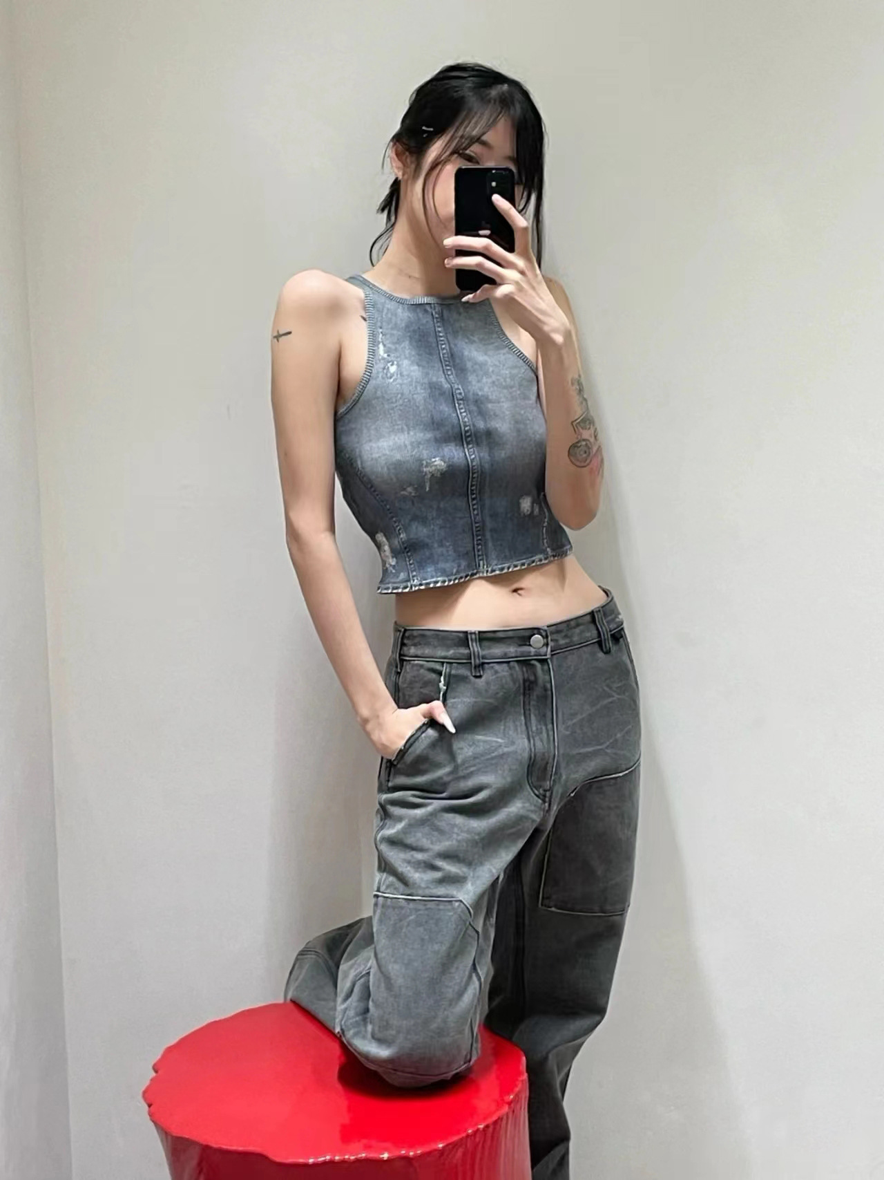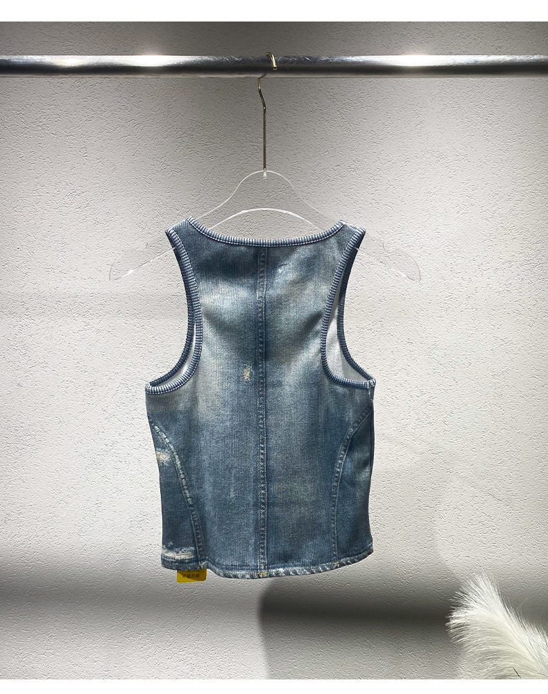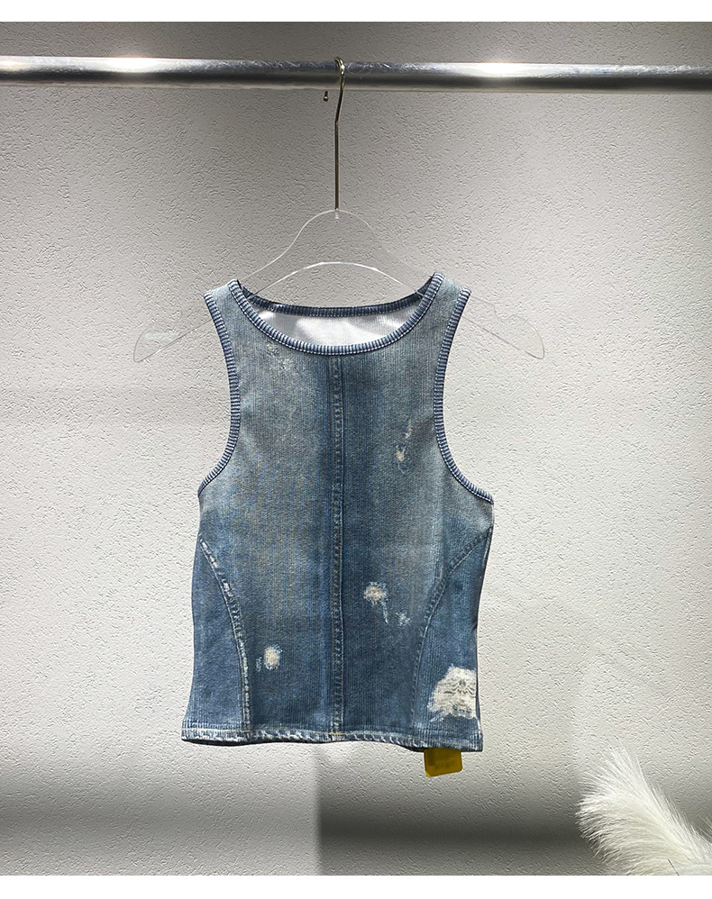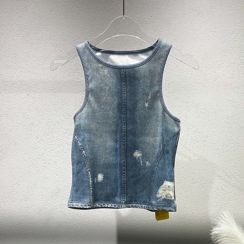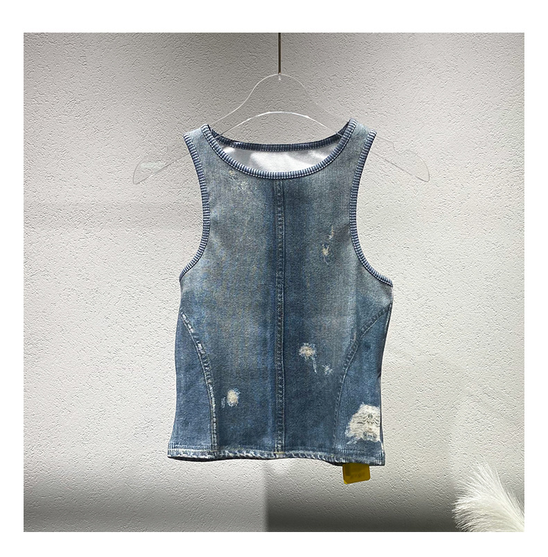 Xiaozhong 2024 봄과 여름 새로운 구멍 느낌 레트로 오래 된 니트 조끼스토어 가기