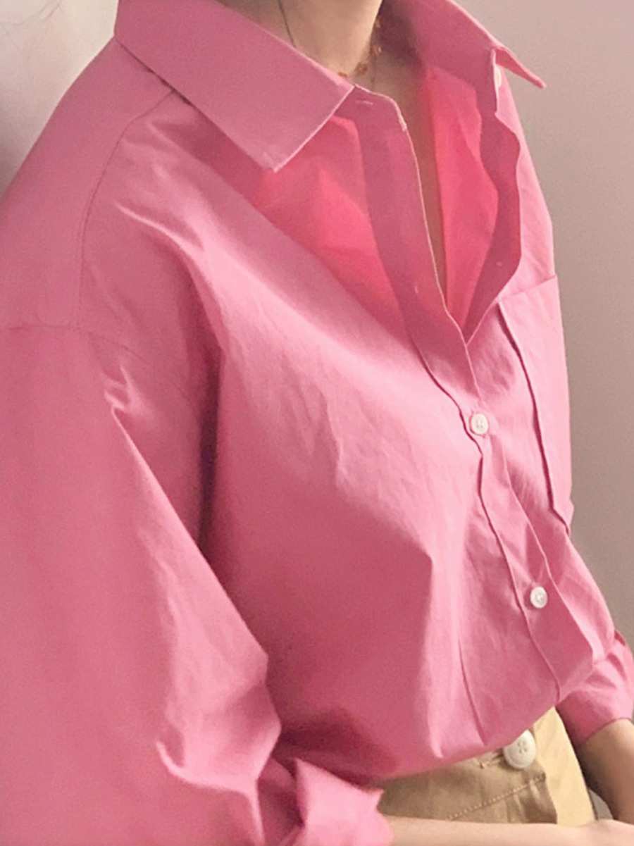 2024 봄 새로운 복고풍 홍콩 스타일 셔츠 여성 디자인 감각 틈새 셔츠 느슨한 내부 핑크 상단