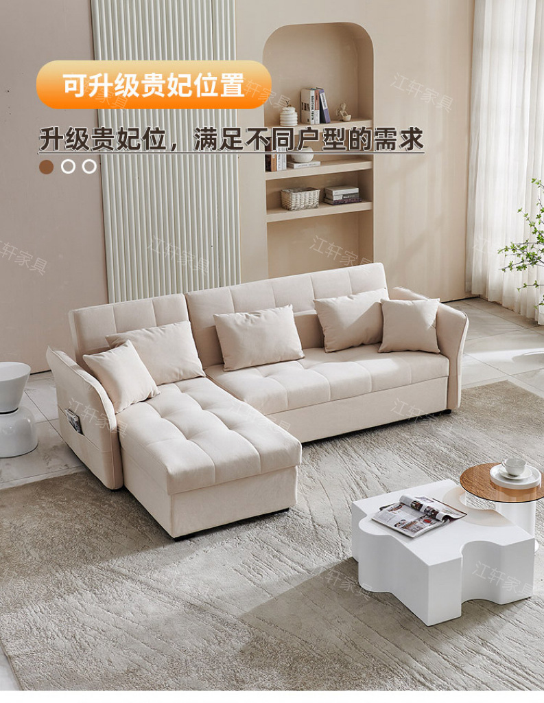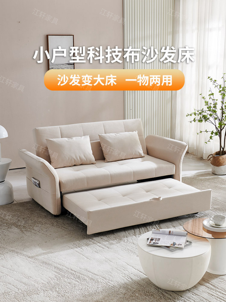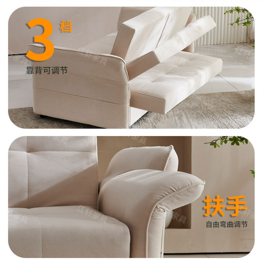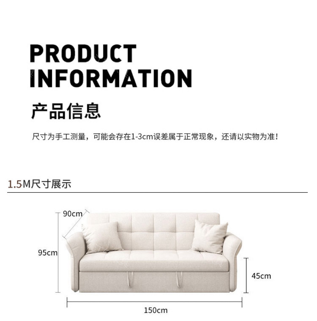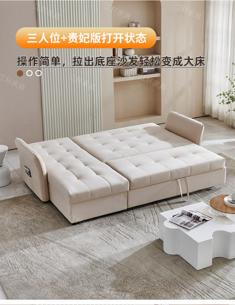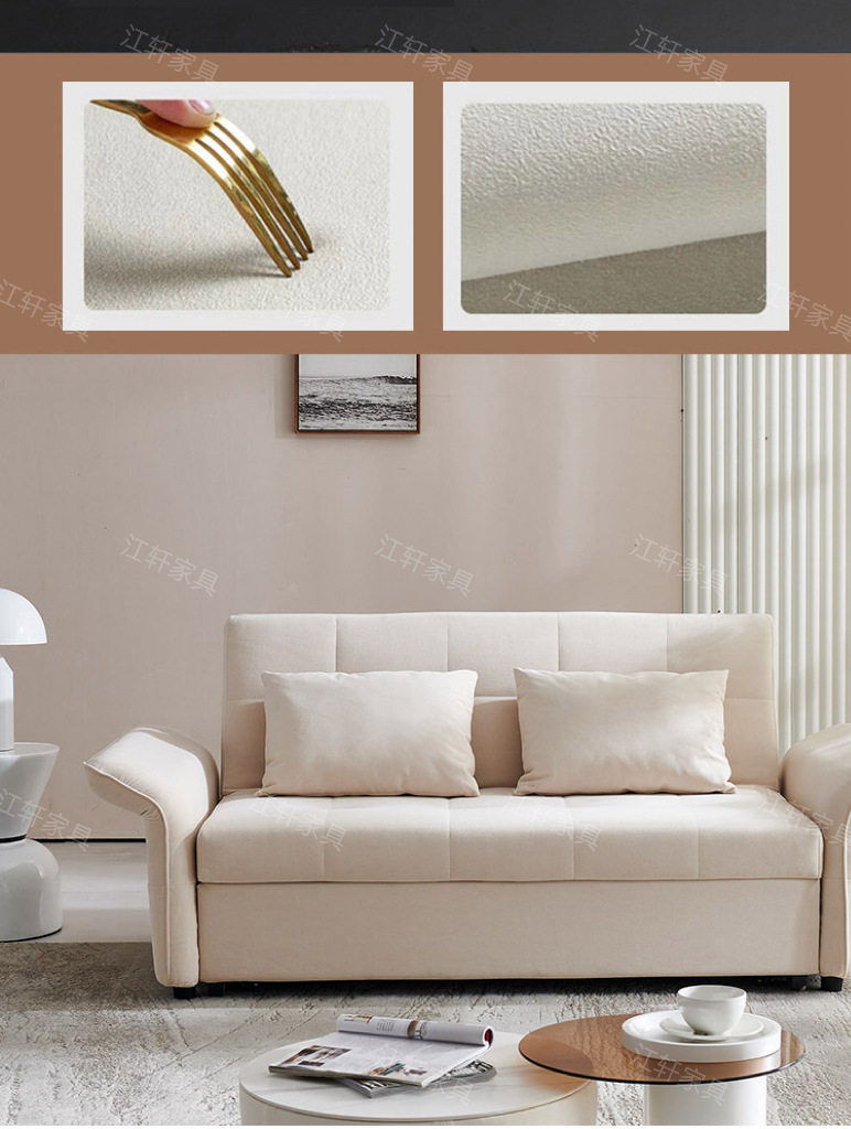 소형 크림색 소파베드, 접이식 겸용 거실/침실용 수납형 확장형 소파베드