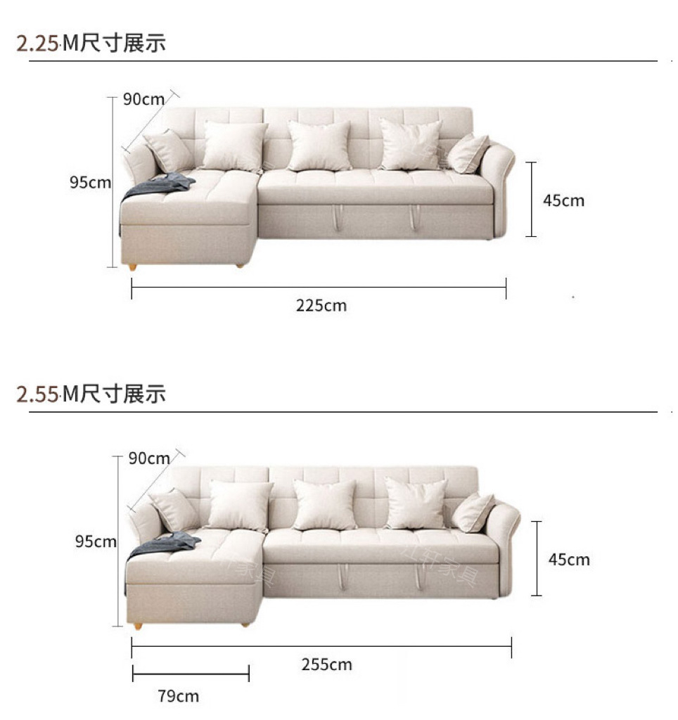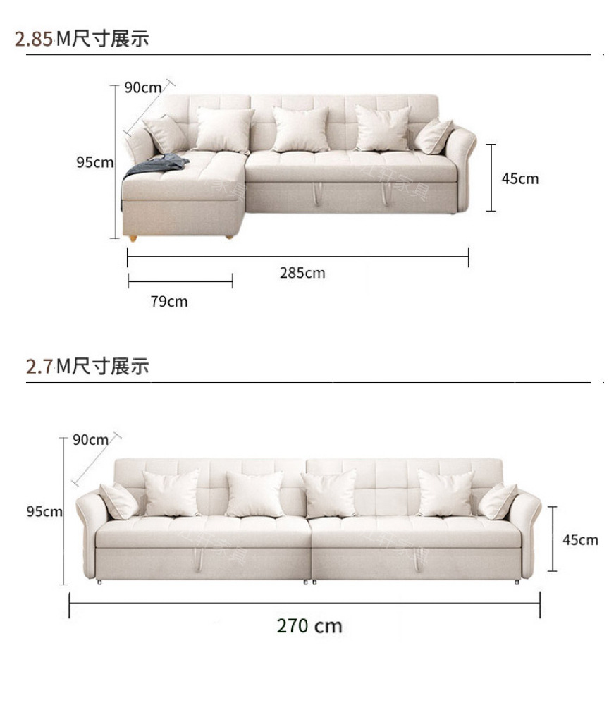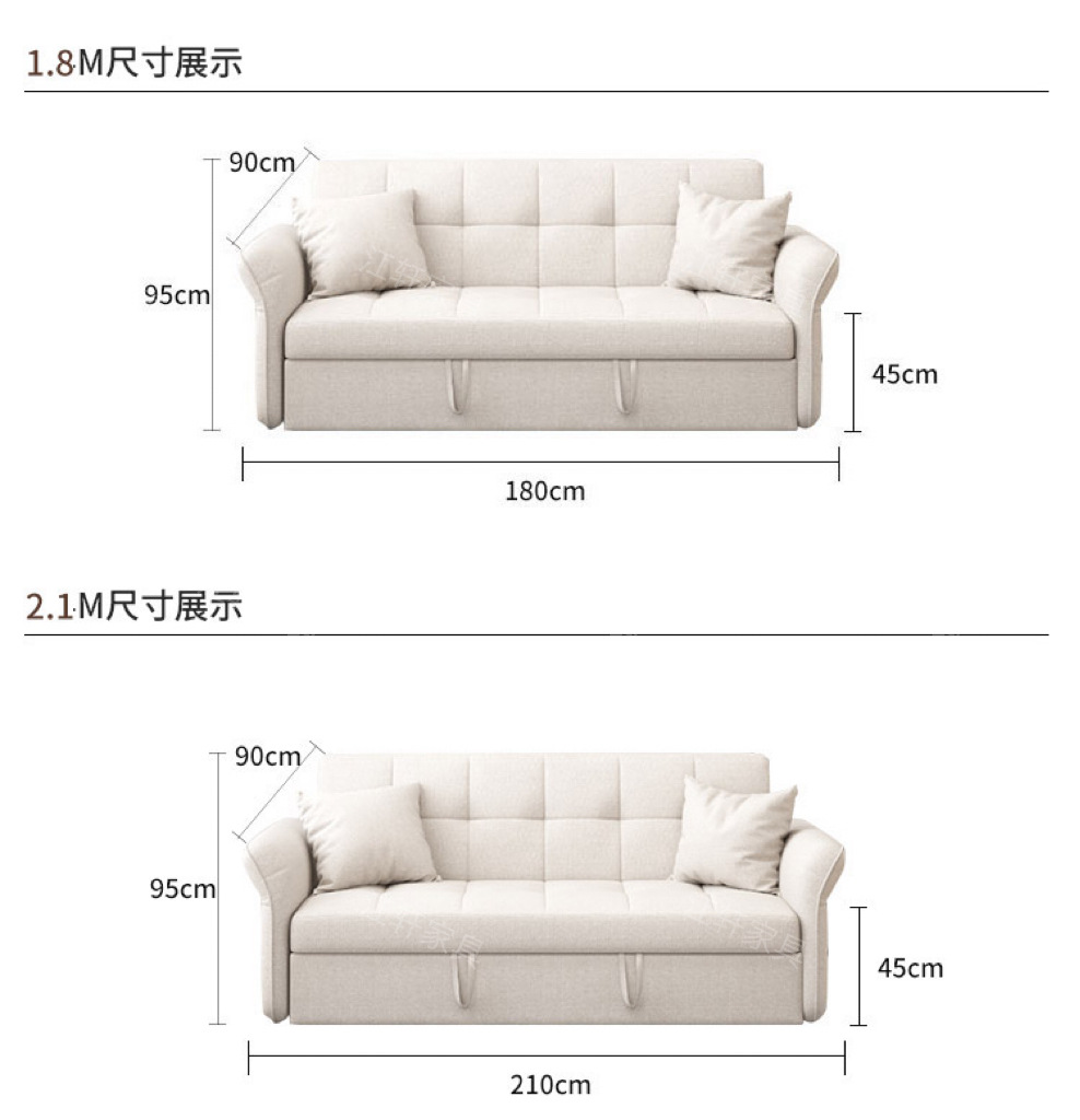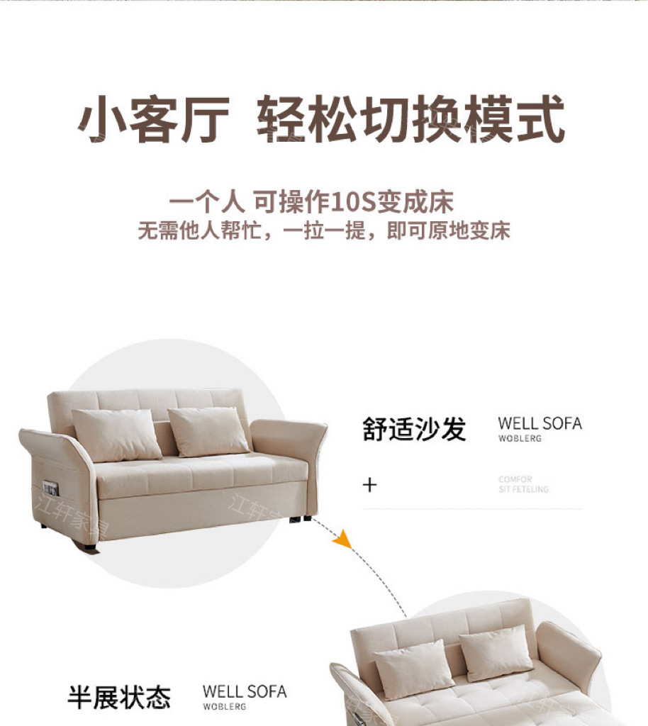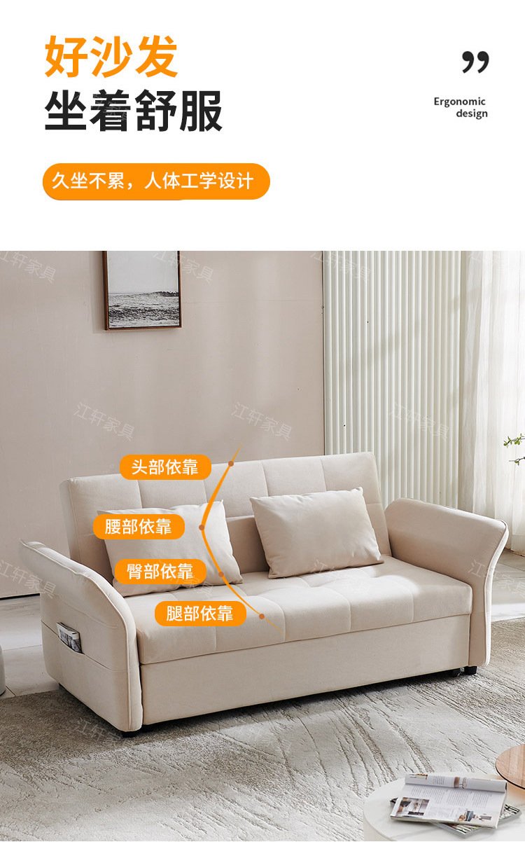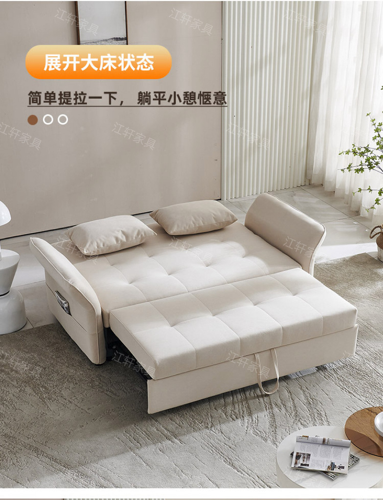 소형 크림색 소파베드, 접이식 겸용 거실/침실용 수납형 확장형 소파베드