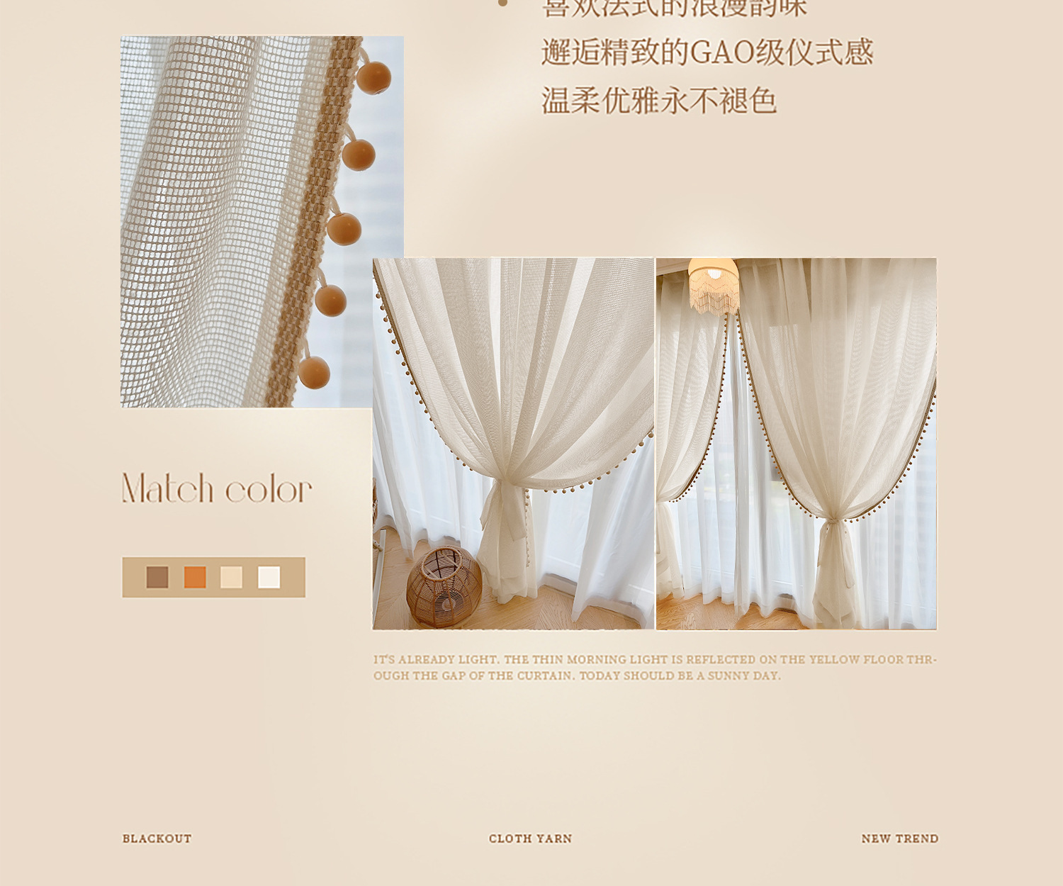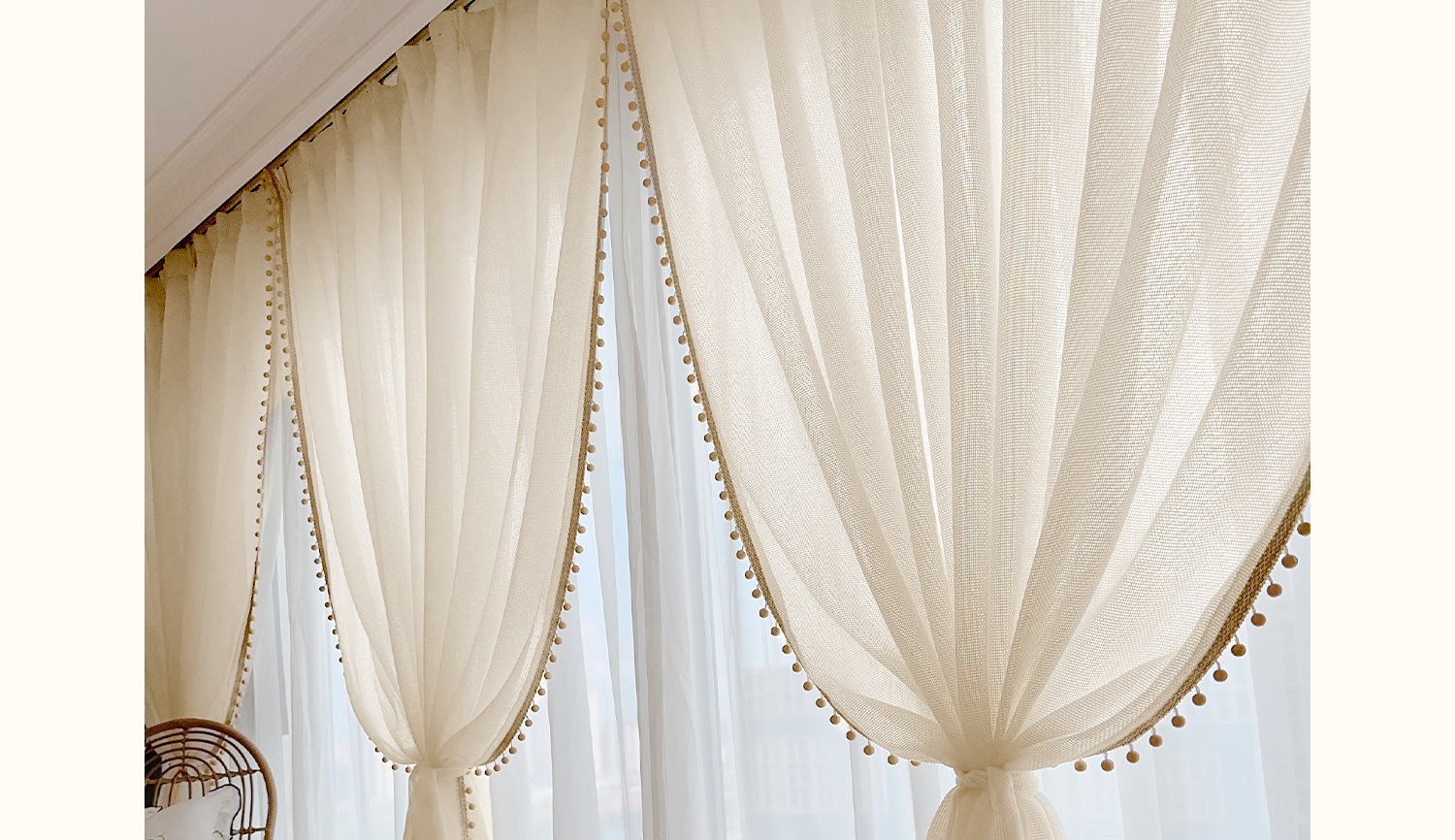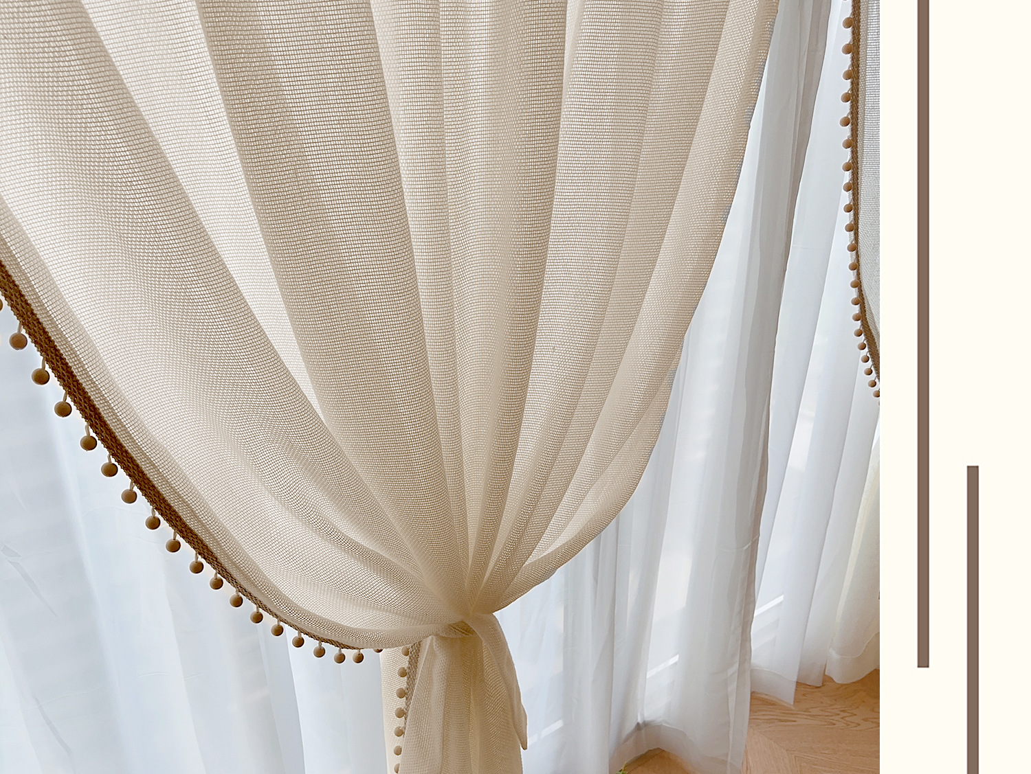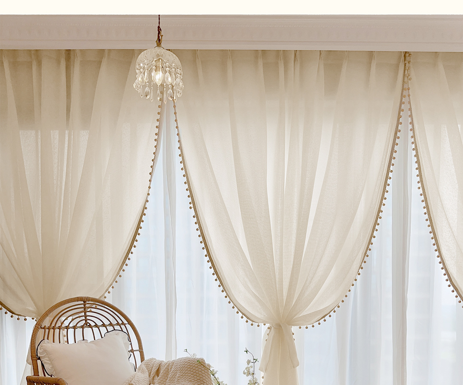 크림 양모 원사 면 린넨 거즈 프랑스 복고풍 더블 레이어 창 화면 거실 침실 발코니 베이 창 커튼 커튼