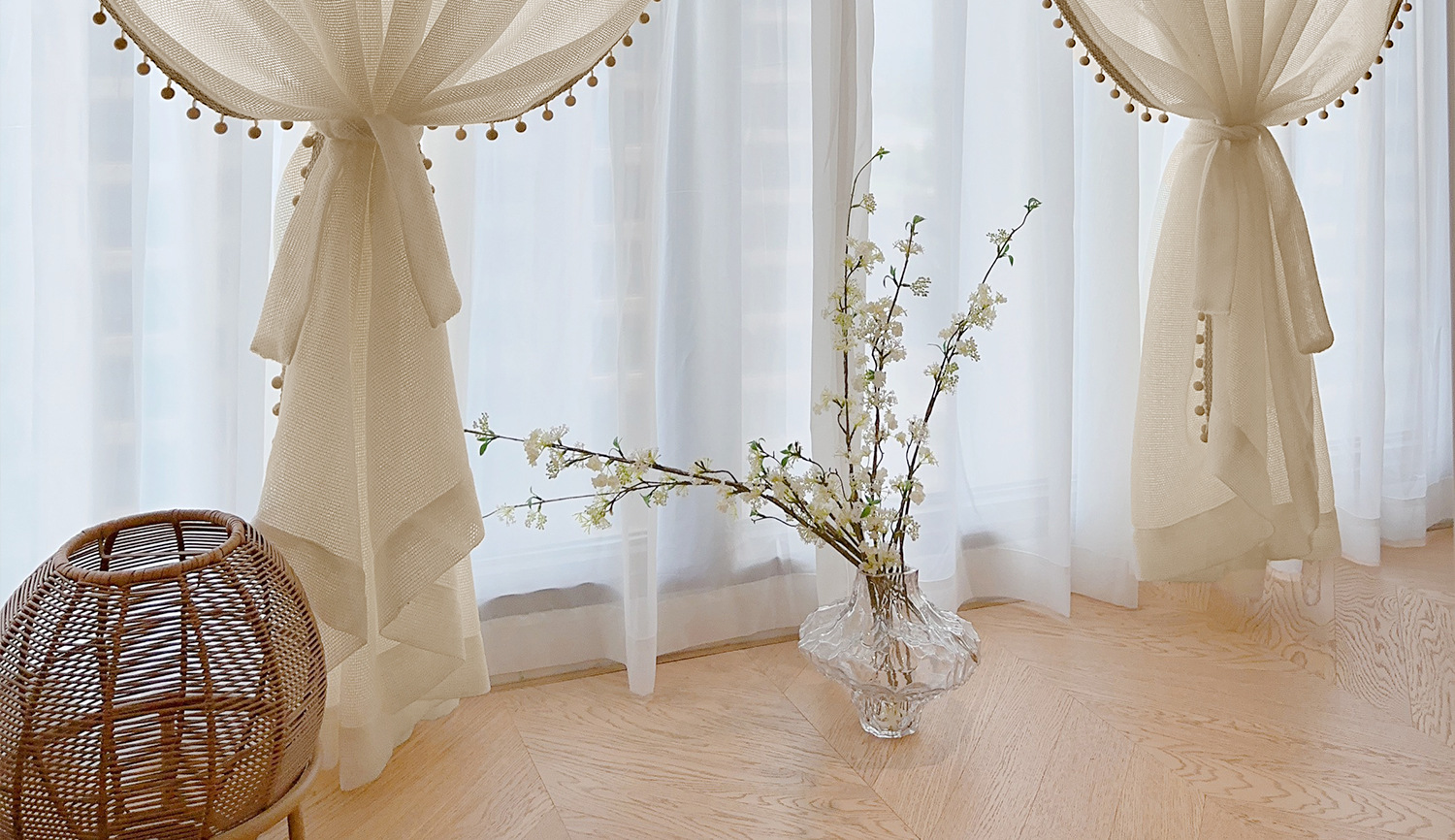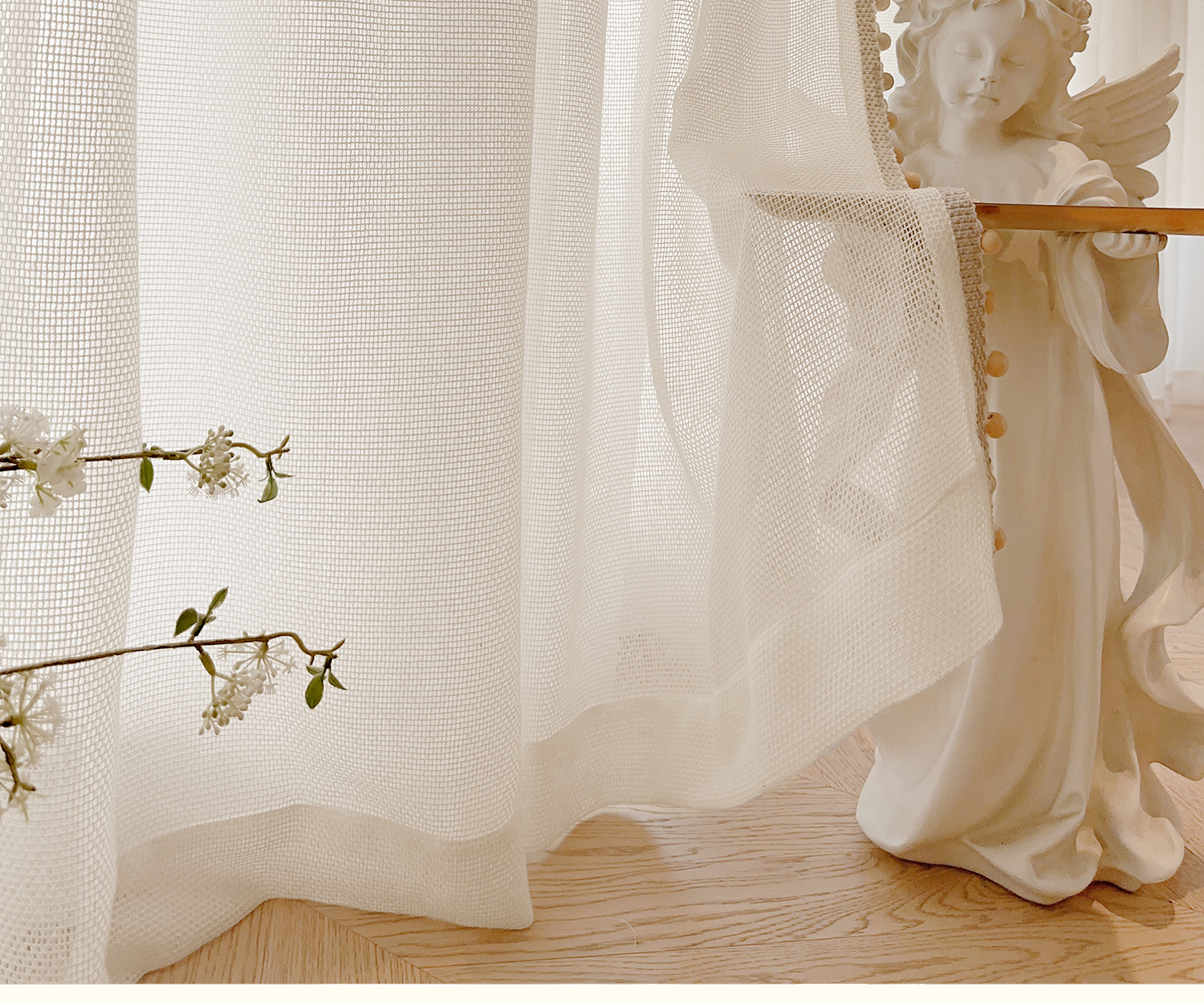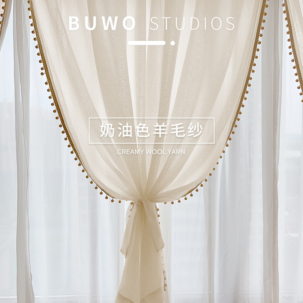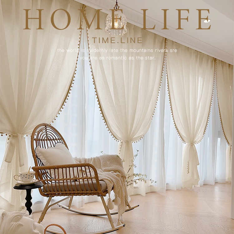 크림 양모 원사 면 린넨 거즈 프랑스 복고풍 더블 레이어 창 화면 거실 침실 발코니 베이 창 커튼 커튼스토어 가기