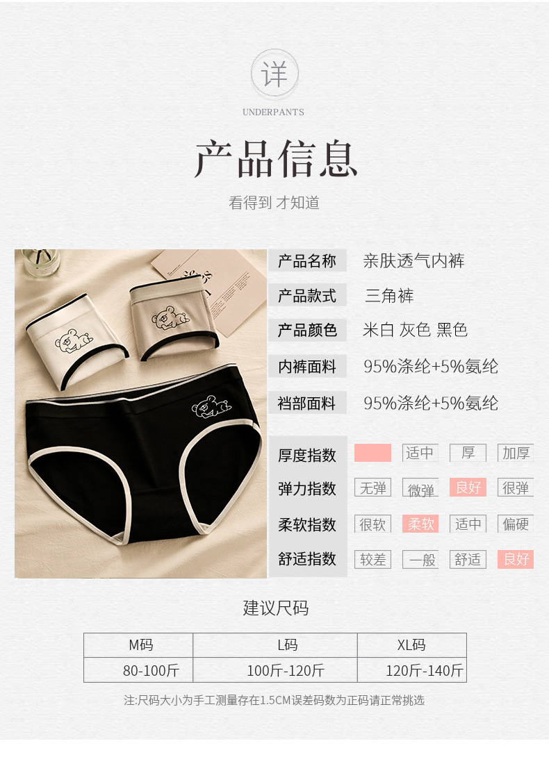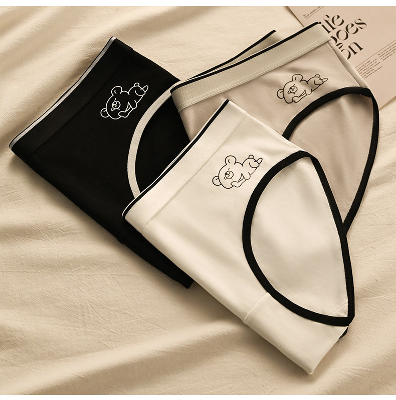 소녀 속옷 여성의 한국 스타일 섹시한 학생 더블 레이어 가랑이 만화 곰 인쇄 가랑이 중간 허리 통기성 브리프
