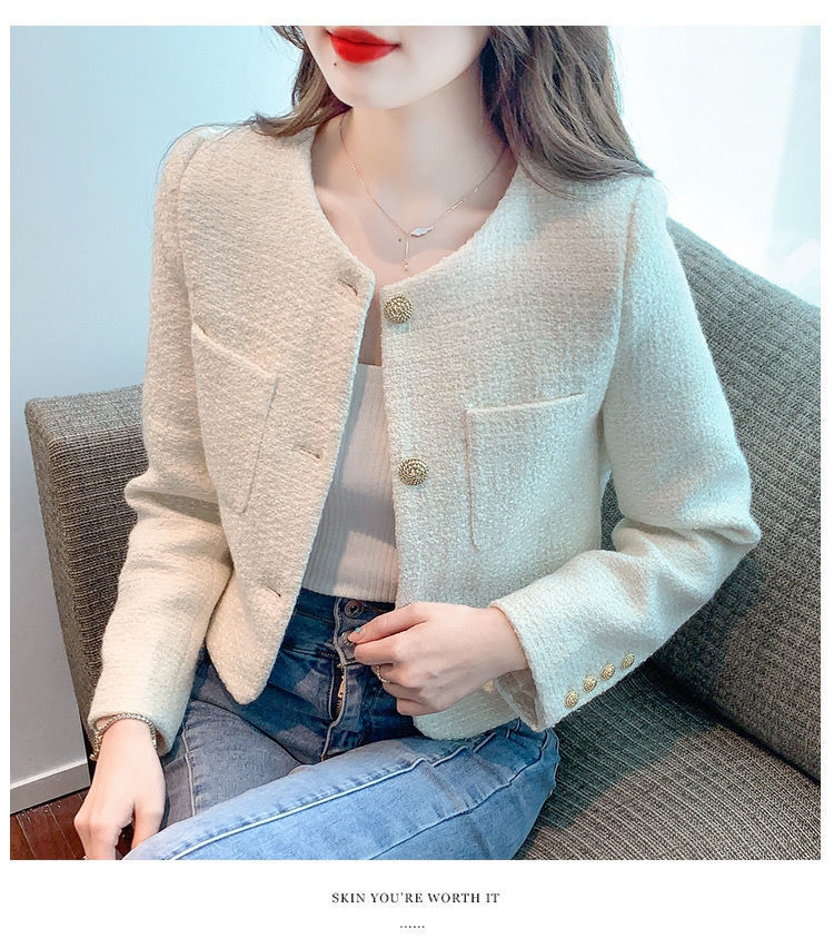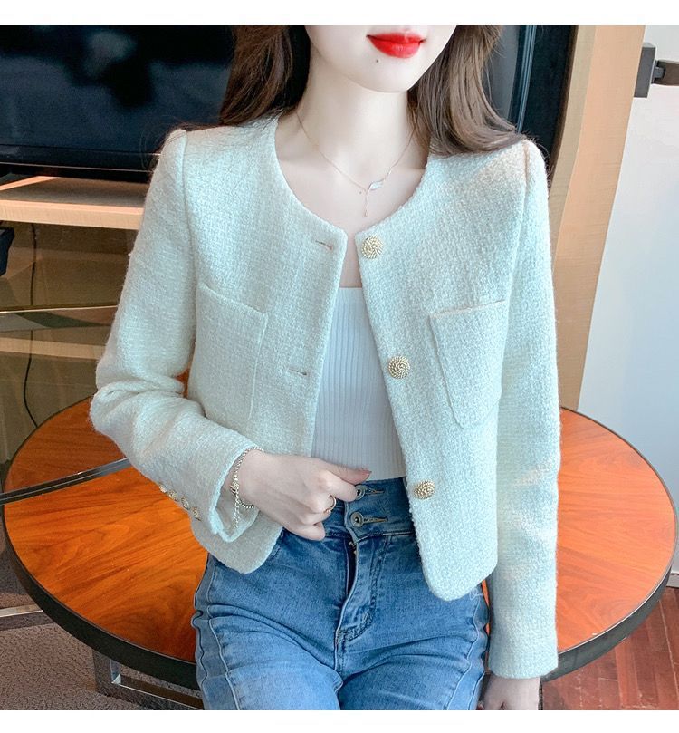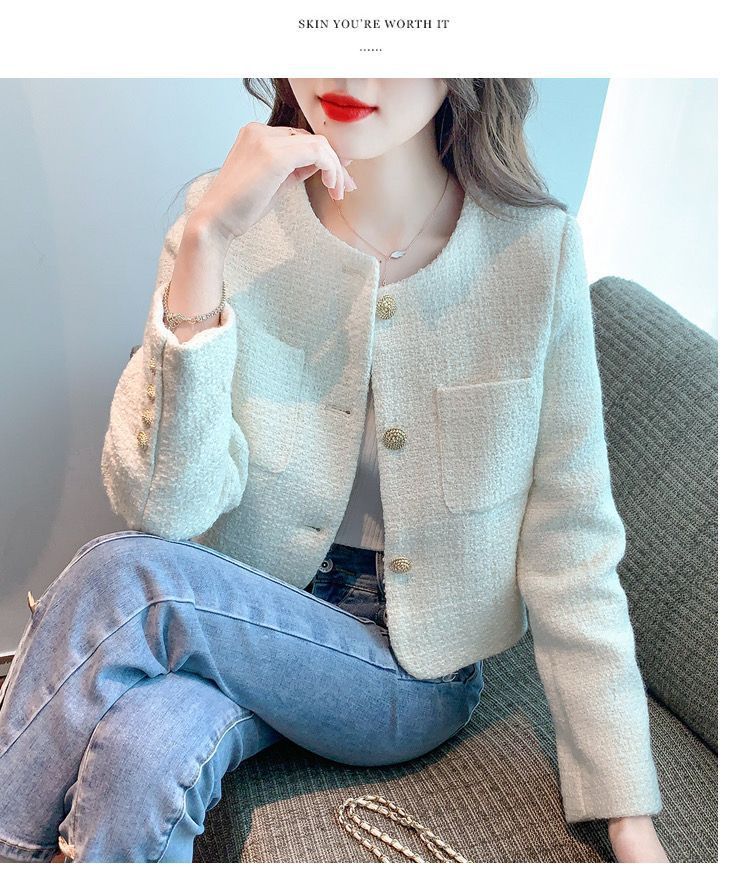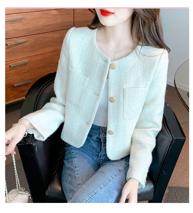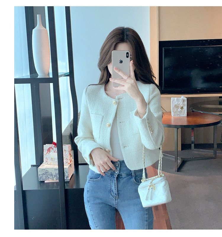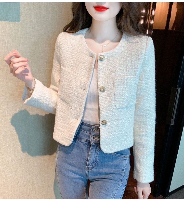 샤넬 스타일 프랑스 스타일 최고 트위드 짧은 코트 2024 봄과 여름 하이 엔드 단색 우아한 샤넬 스타일 코트스토어 가기