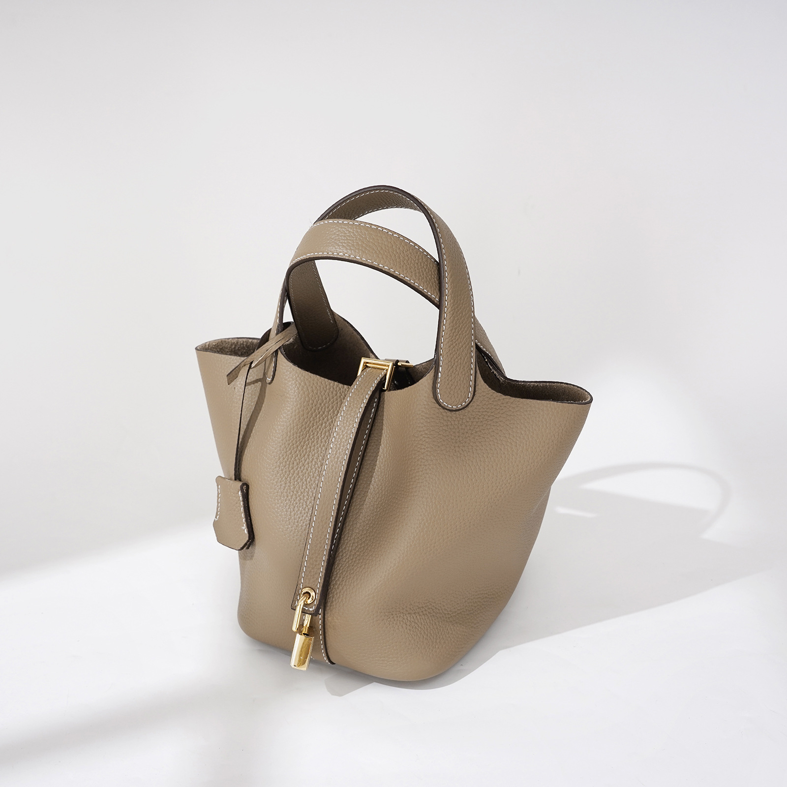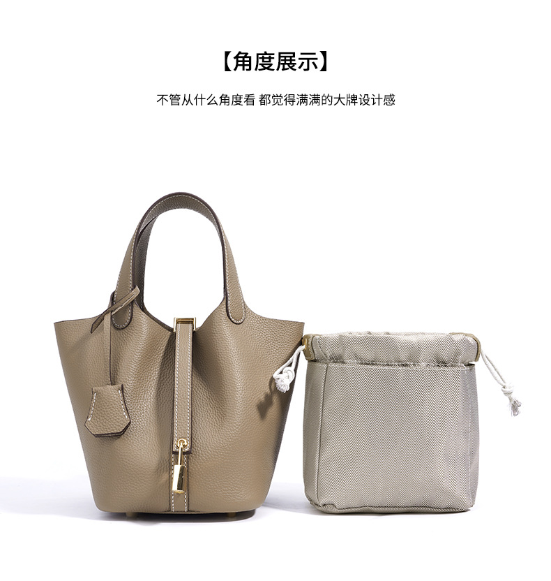 첫 번째 레이어 소 가죽 야채 바구니 가방 정품 가죽 가방 여성 틈새 디자인 고급 질감 대용량 핸드백 버킷 가방스토어 가기