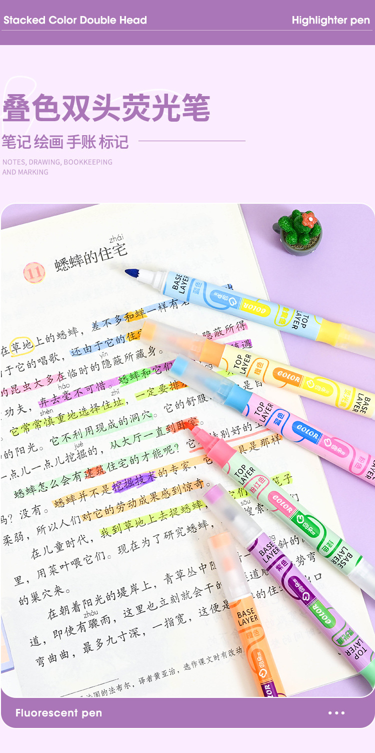 새로운 in 컬러 더블 헤드 하이라이트 펜 키 펜 학생 컬러 마커 대용량 표시 저널 펜스토어 가기