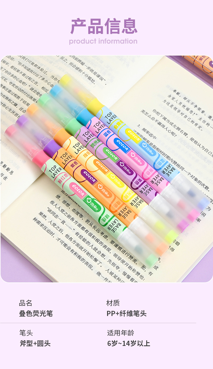 새로운 in 컬러 더블 헤드 하이라이트 펜 키 펜 학생 컬러 마커 대용량 표시 저널 펜