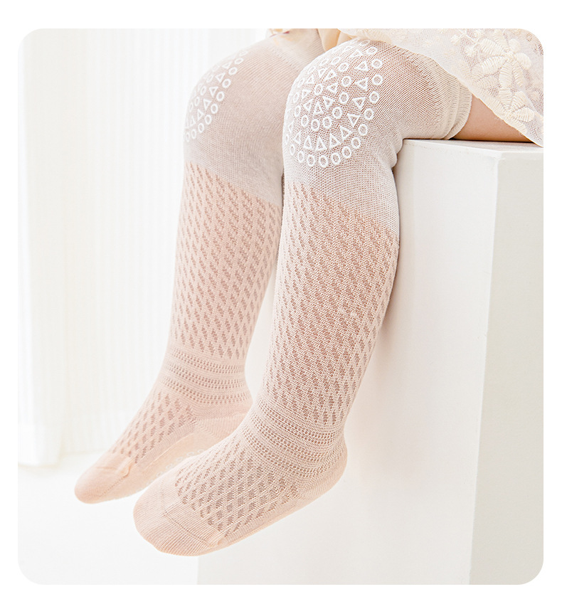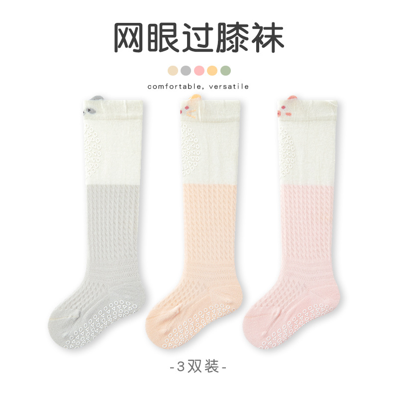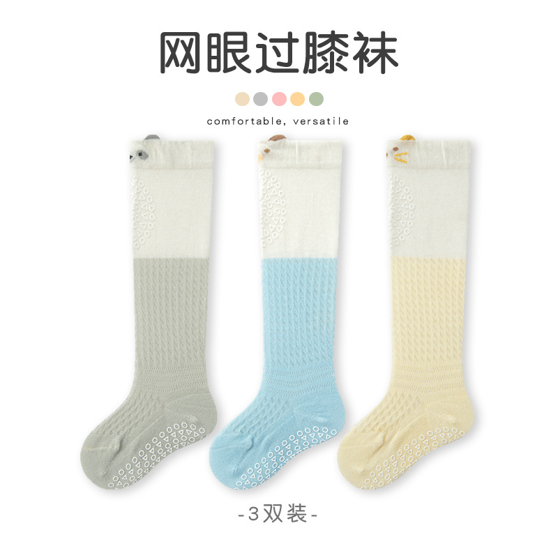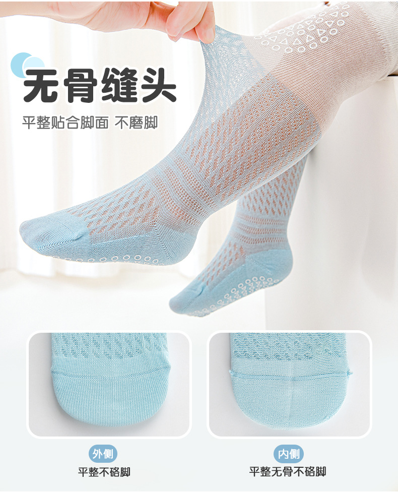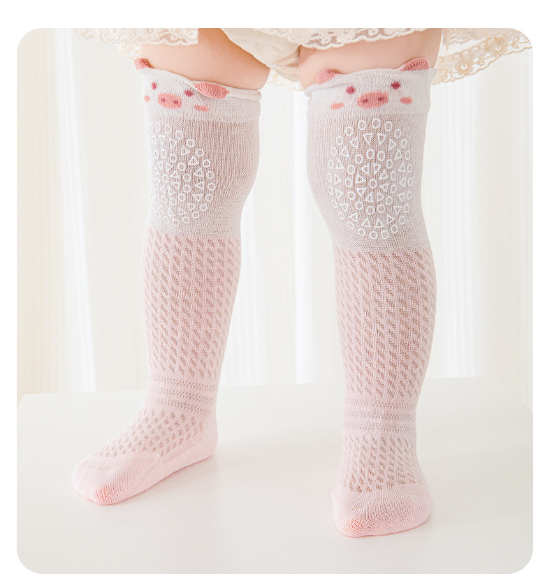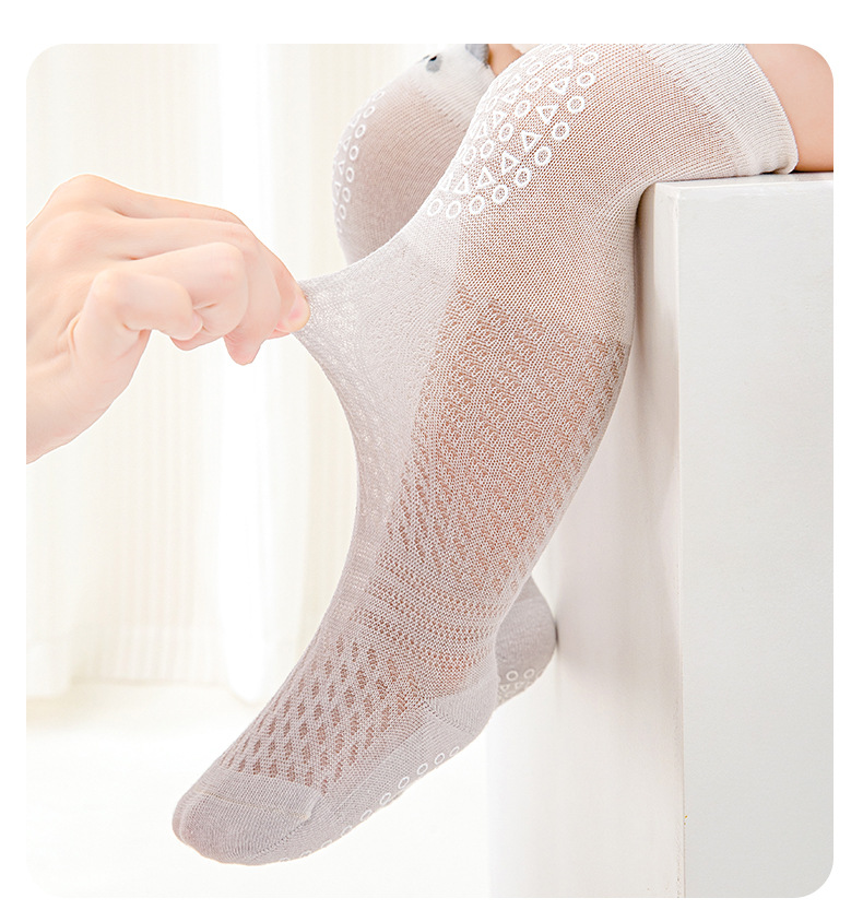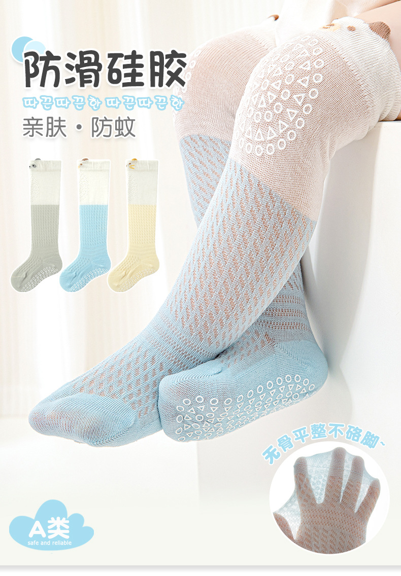 여름 얇은 아기 양말 0-5 개월 새로운 아기 긴면 중간 종아리 양말 소년과 소녀 아기 모기 방지 양말 메쉬 양말스토어 가기