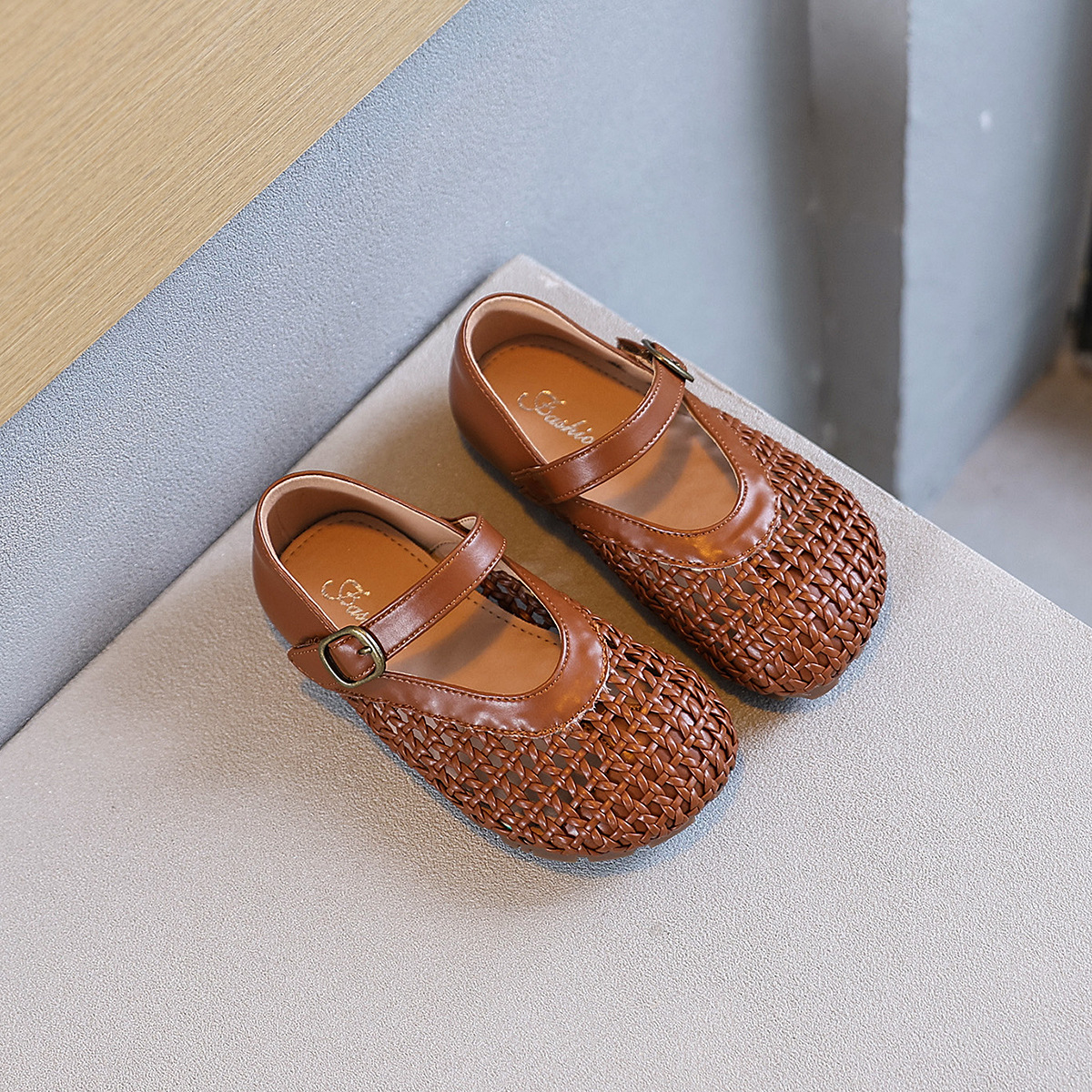 24 여름 새로운 한국식 소녀 공주 신발 아기 소녀의 부드러운 바닥 중공 신발 어린이 우유 신발 완두콩 신발