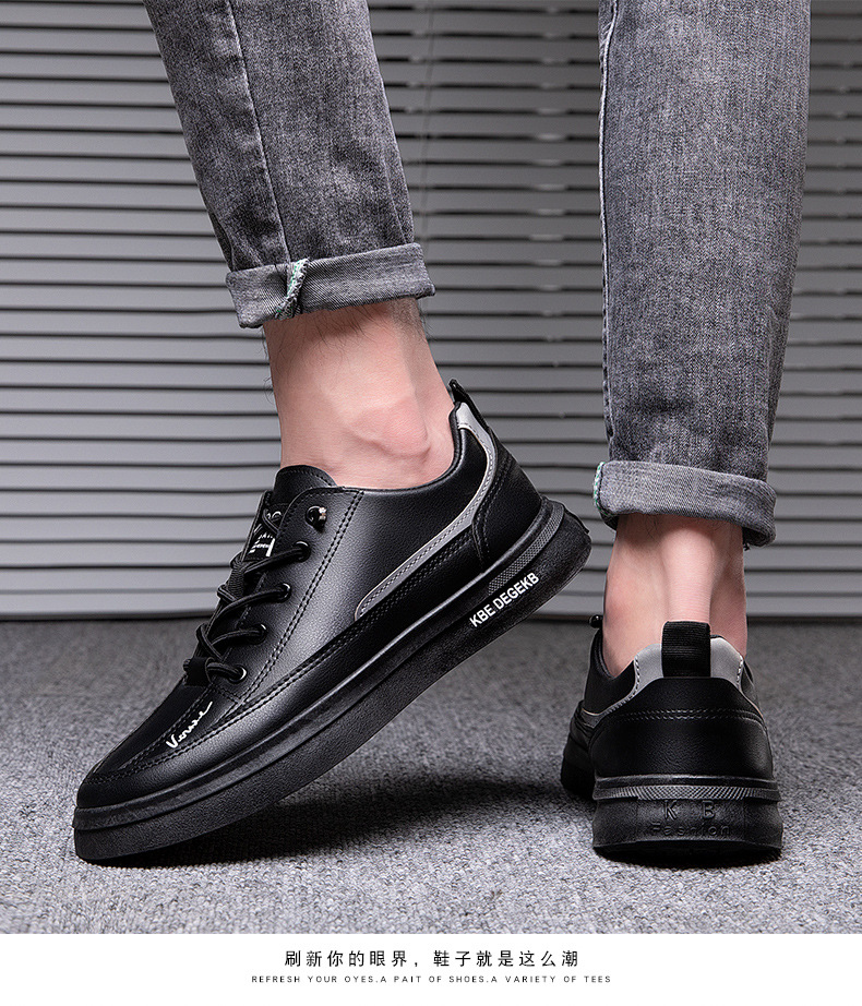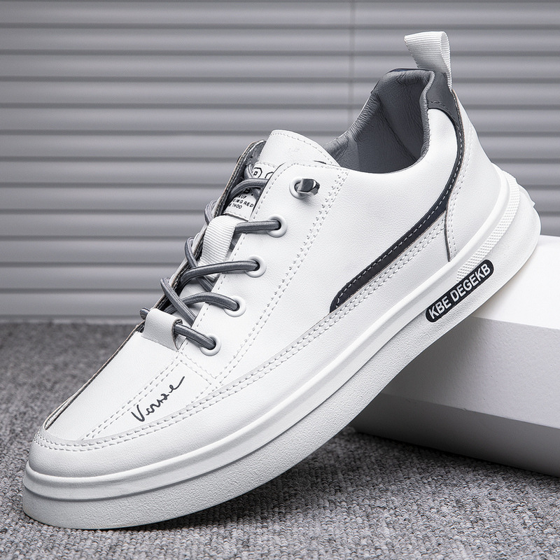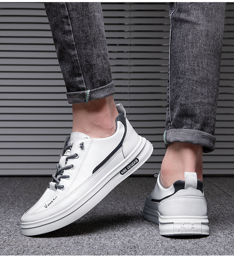 남성 캐주얼 스니커즈 유행 올 매치 소프트 하단 미끄럼 방지 새로운 가죽 로우 탑 통기성 흰색 신발 트렌디 한 한국 스타일스토어 가기