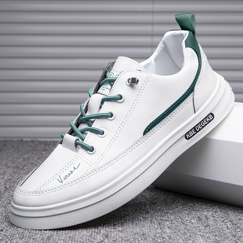 남성 캐주얼 스니커즈 유행 올 매치 소프트 하단 미끄럼 방지 새로운 가죽 로우 탑 통기성 흰색 신발 트렌디 한 한국 스타일