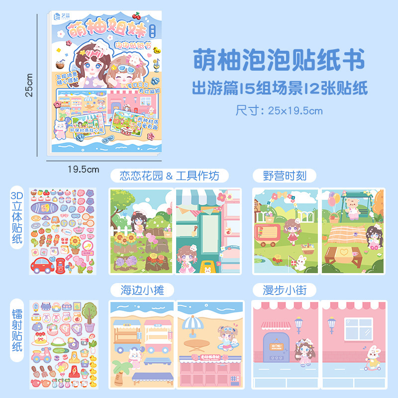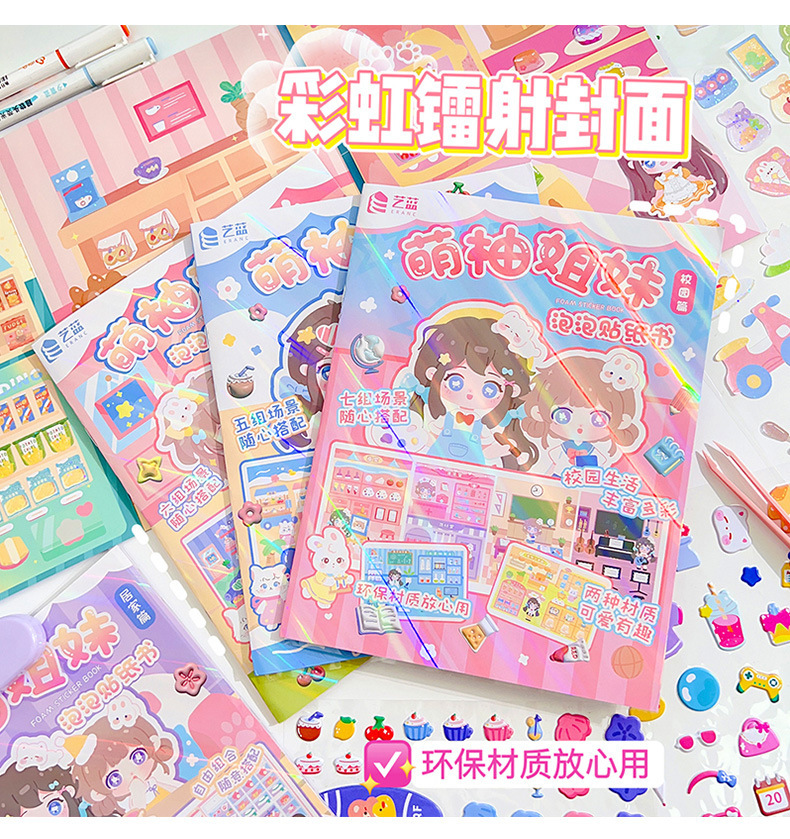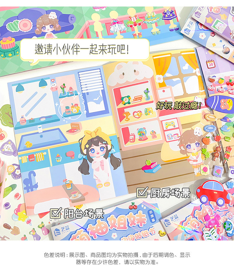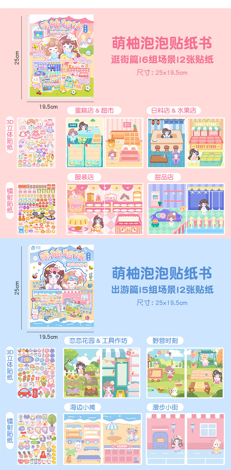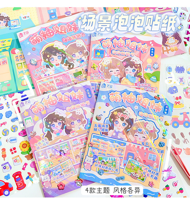 귀여운 자몽 자매 거품 스티커 책 귀여운 스티커 책 창조적 인 풍경 저널 구 카드 스티커 세트 어린이 스티커스토어 가기