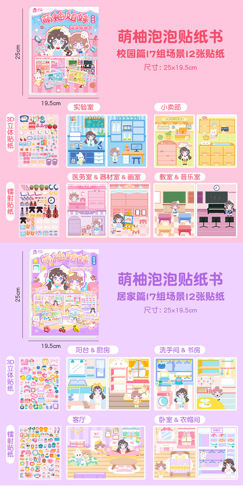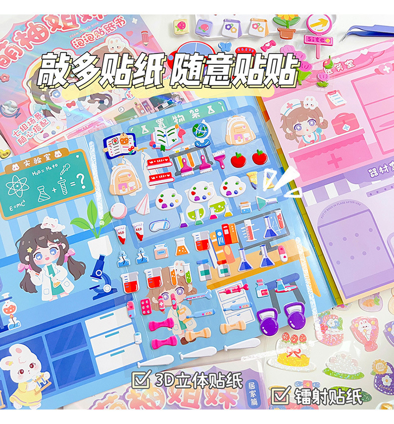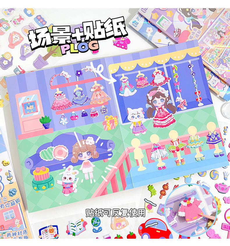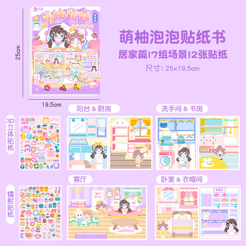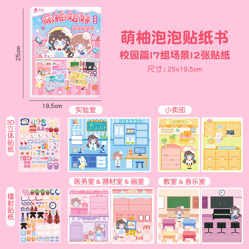 귀여운 자몽 자매 거품 스티커 책 귀여운 스티커 책 창조적 인 풍경 저널 구 카드 스티커 세트 어린이 스티커스토어 가기
