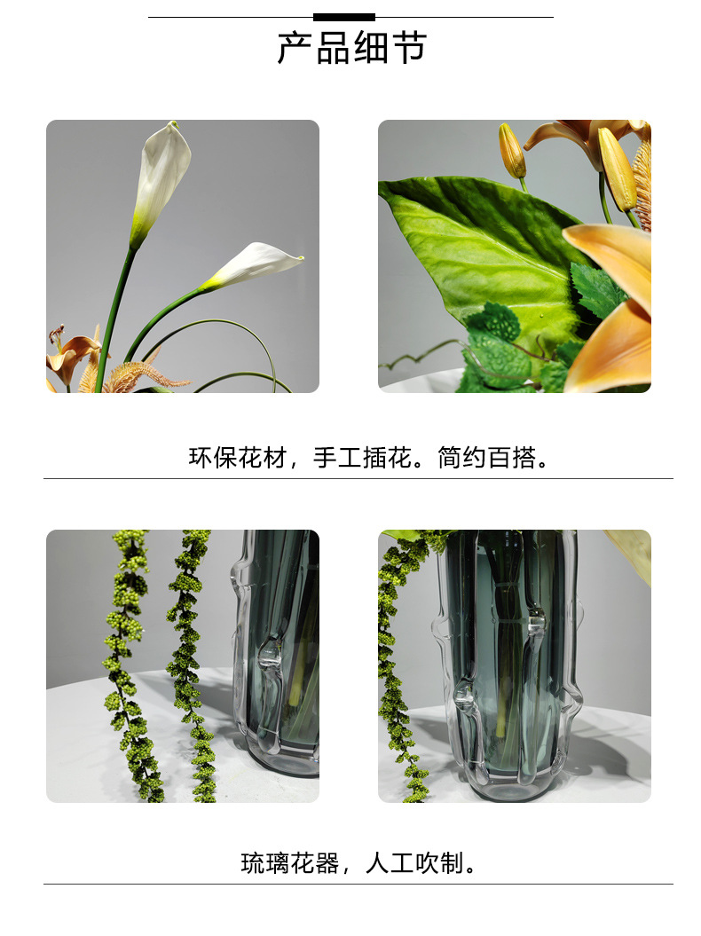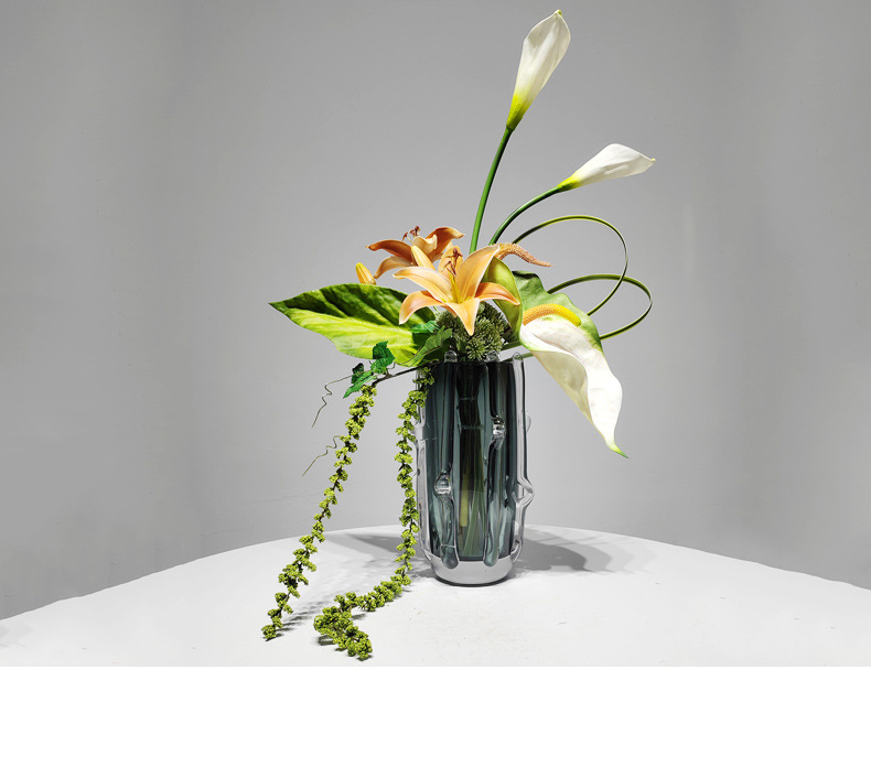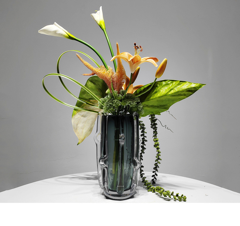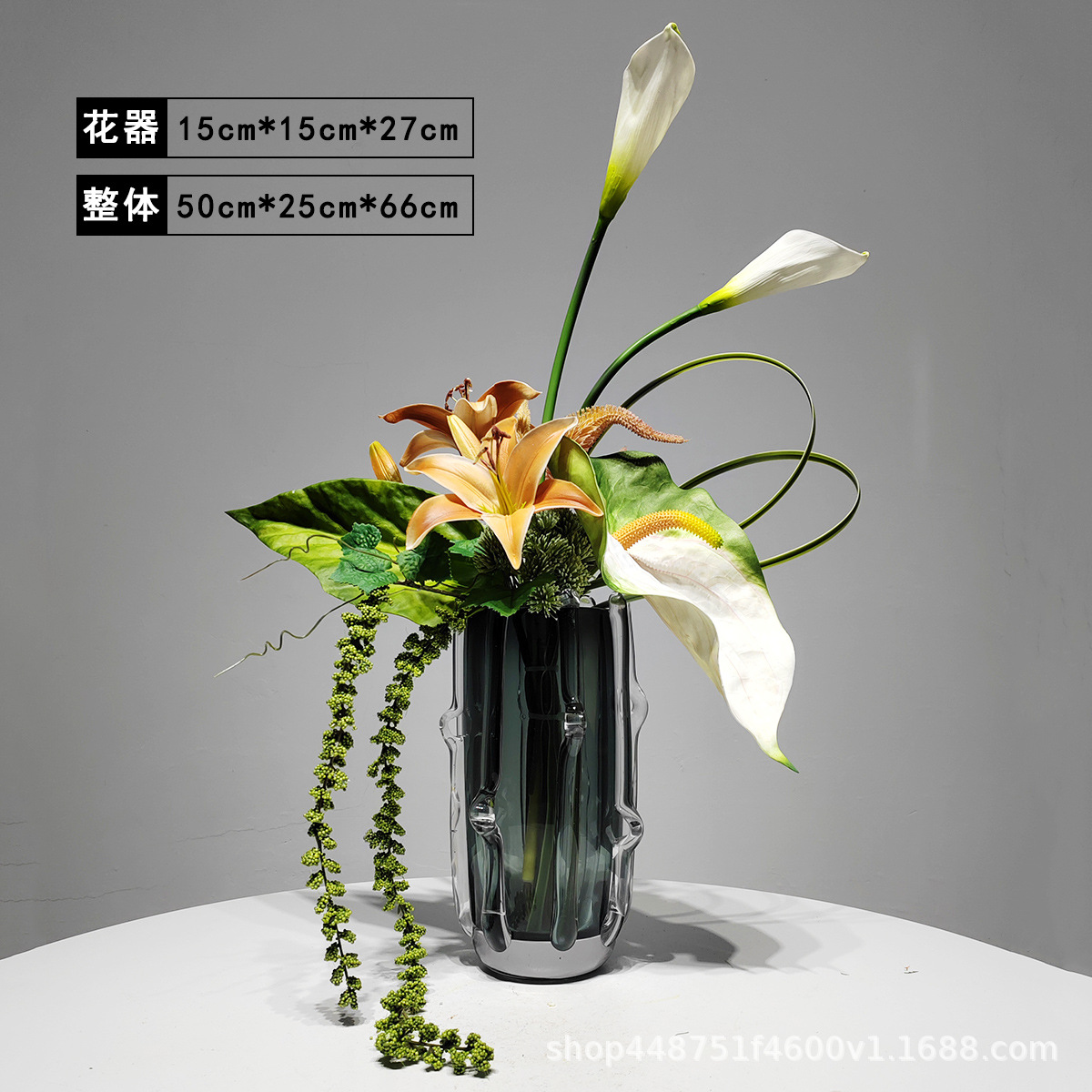현대 인공 꽃 녹색 식물 유리 꽃병 모델 방 거실 식탁 커피 테이블 판매 사무실 빛 고급 장식 장식품