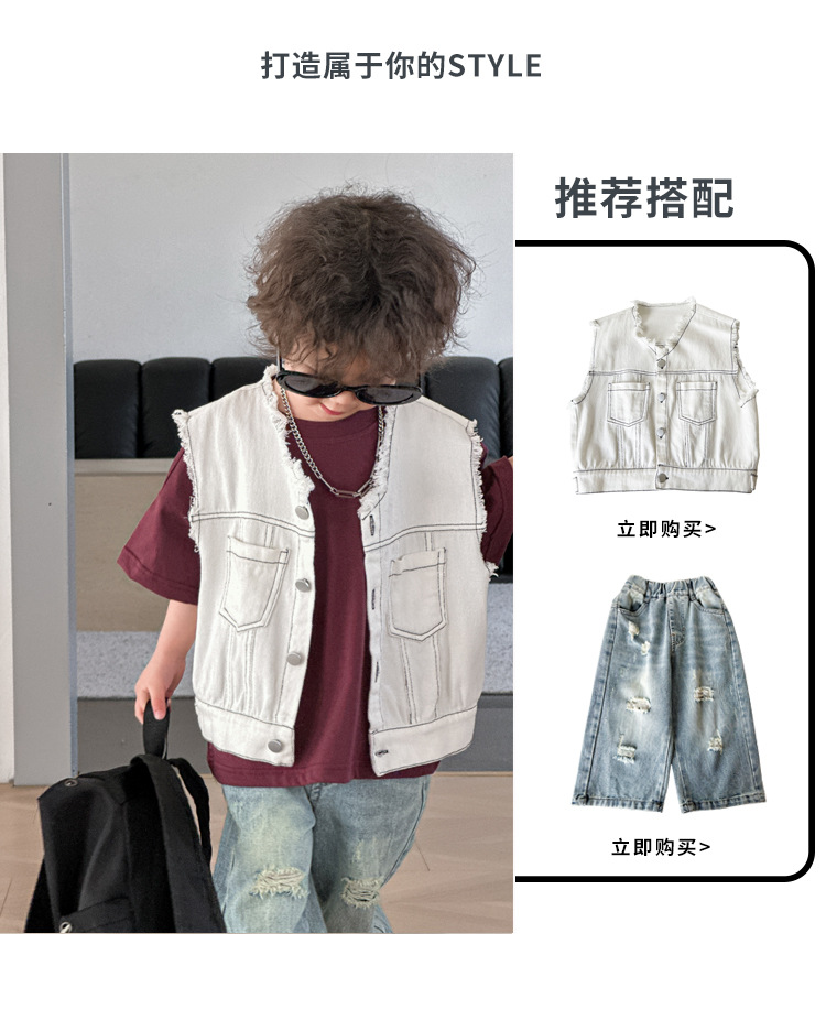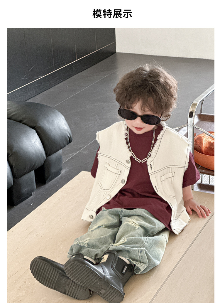 어린이 조끼 2024 봄 소년의 새로운 밝은 라인 버 조끼 어린이 올 매치 단색 아기 조끼