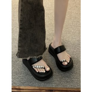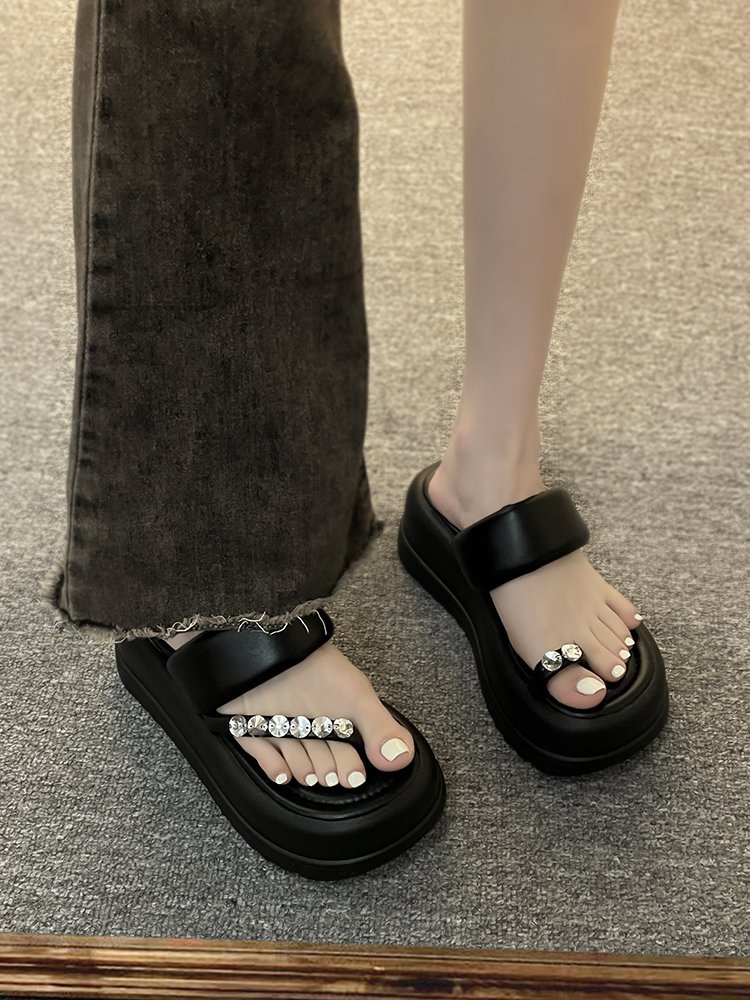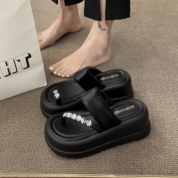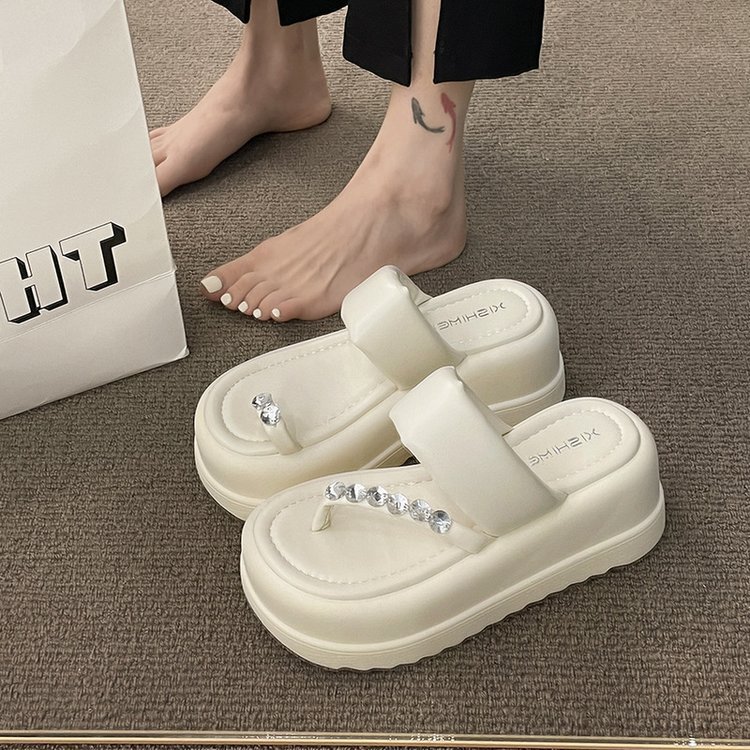 라인스톤 플립 플롭 여성 아웃도어 2024 여름 새로운 작은 높이 증가 샌들 올 매치 두꺼운 바닥 한 단어스토어 가기