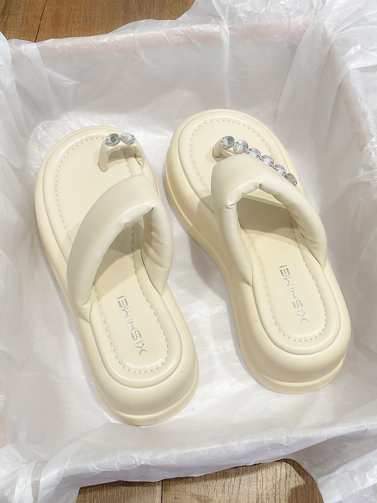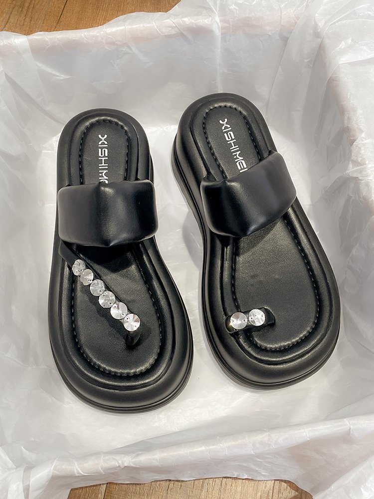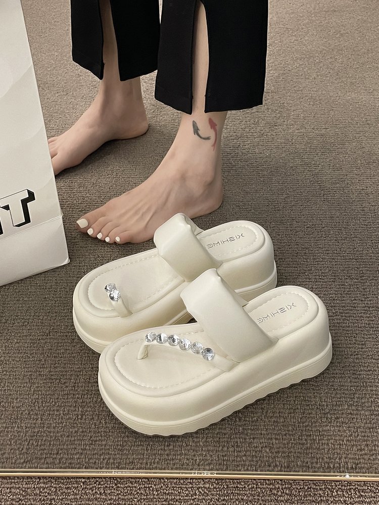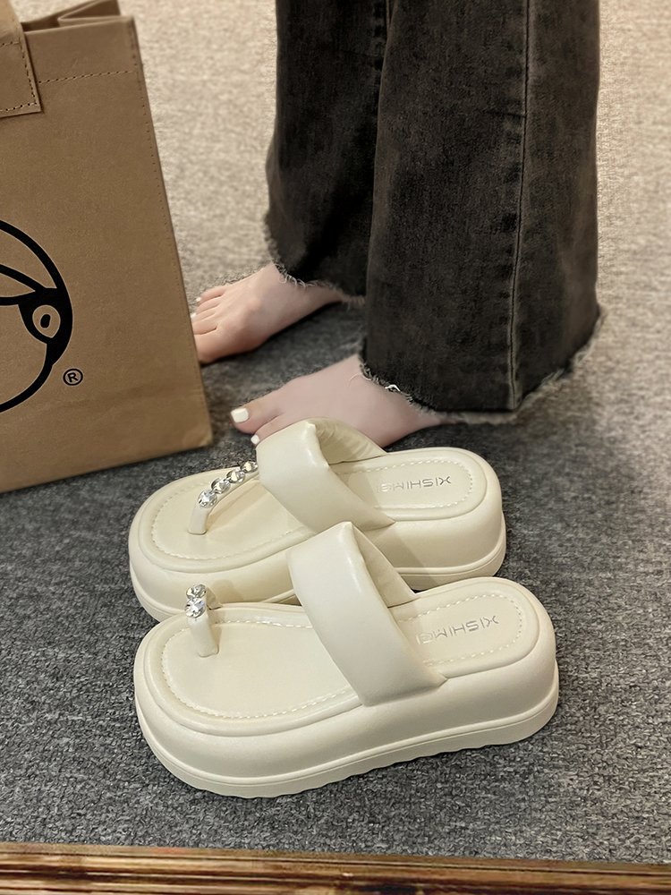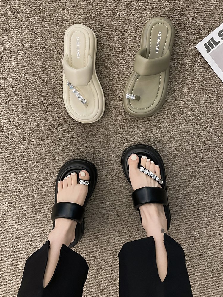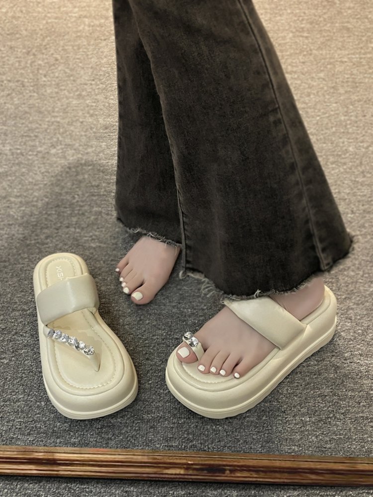 라인스톤 플립 플롭 여성 아웃도어 2024 여름 새로운 작은 높이 증가 샌들 올 매치 두꺼운 바닥 한 단어