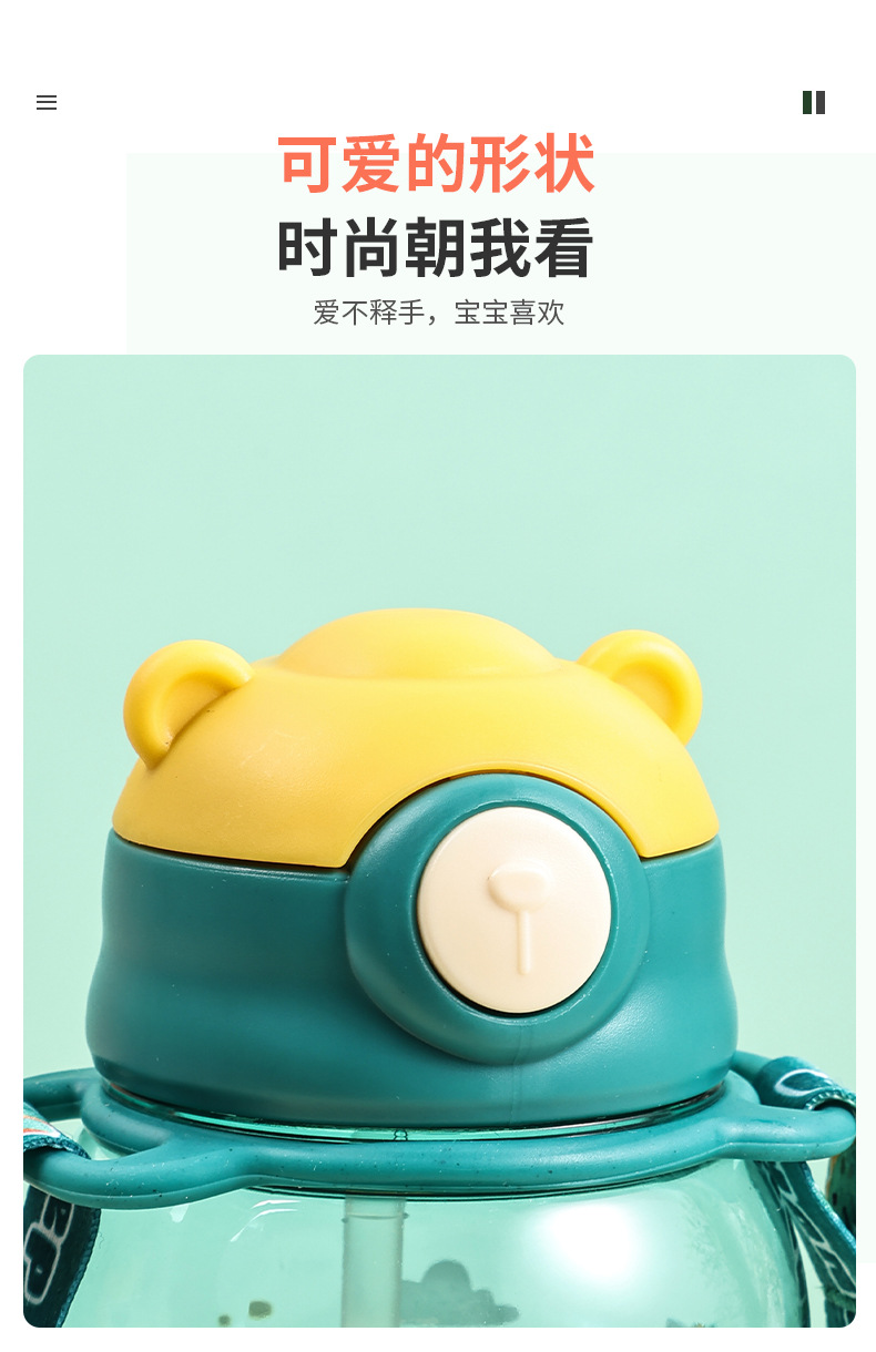 대용량 어린이 밀짚 컵 만화 스트랩 물 컵 유치원 학생 마시는 물 플라스틱 컵 고온 저항스토어 가기