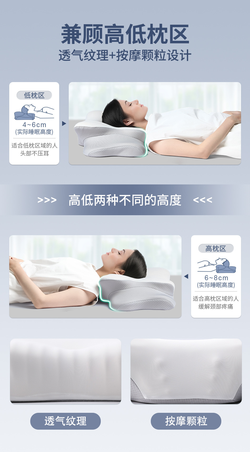 크로스보더 나비형 메모리폼 베개, 나비 모양 제로포인트 클라우드 감촉, 느린 반발, 경추 보호, 아이스 실크 특수형 측면 수면 메모리폼 베개스토어 가기