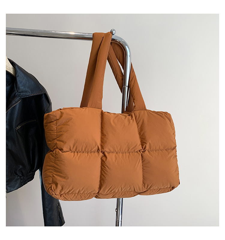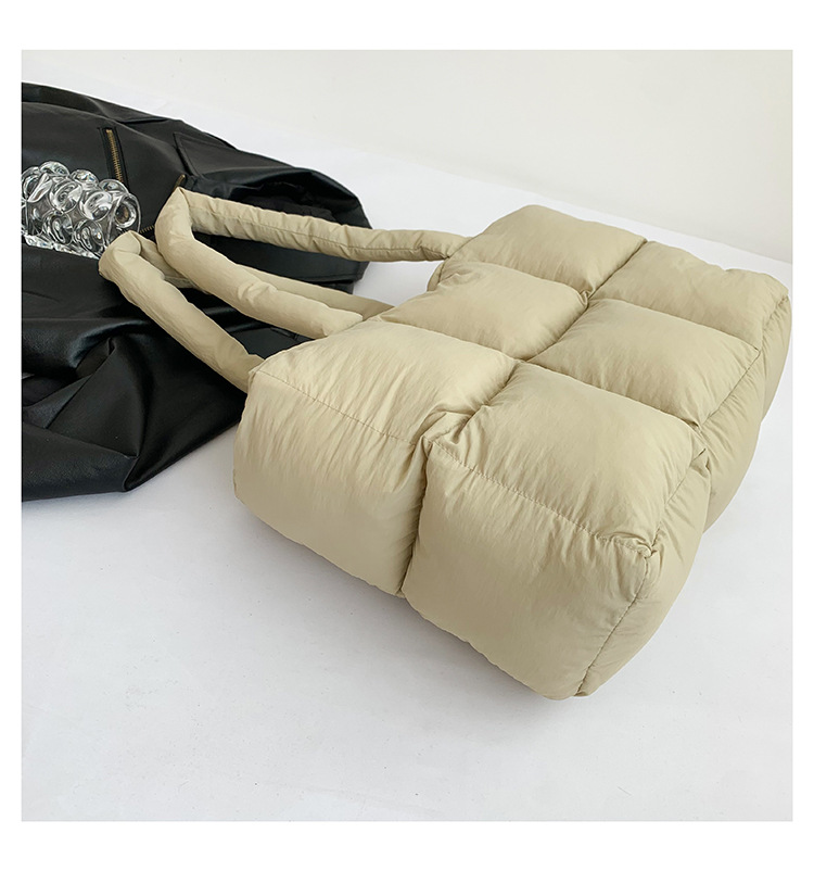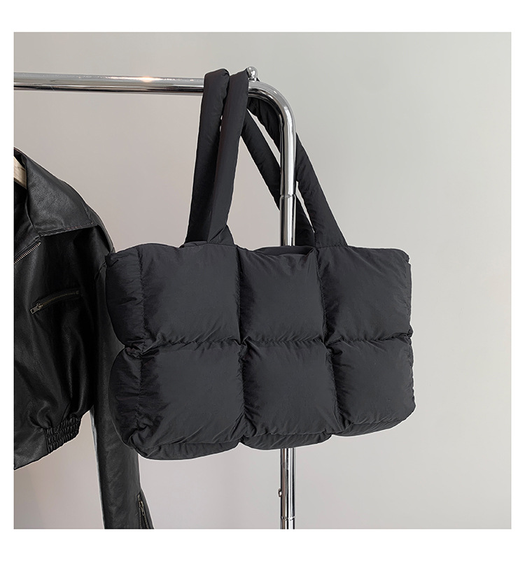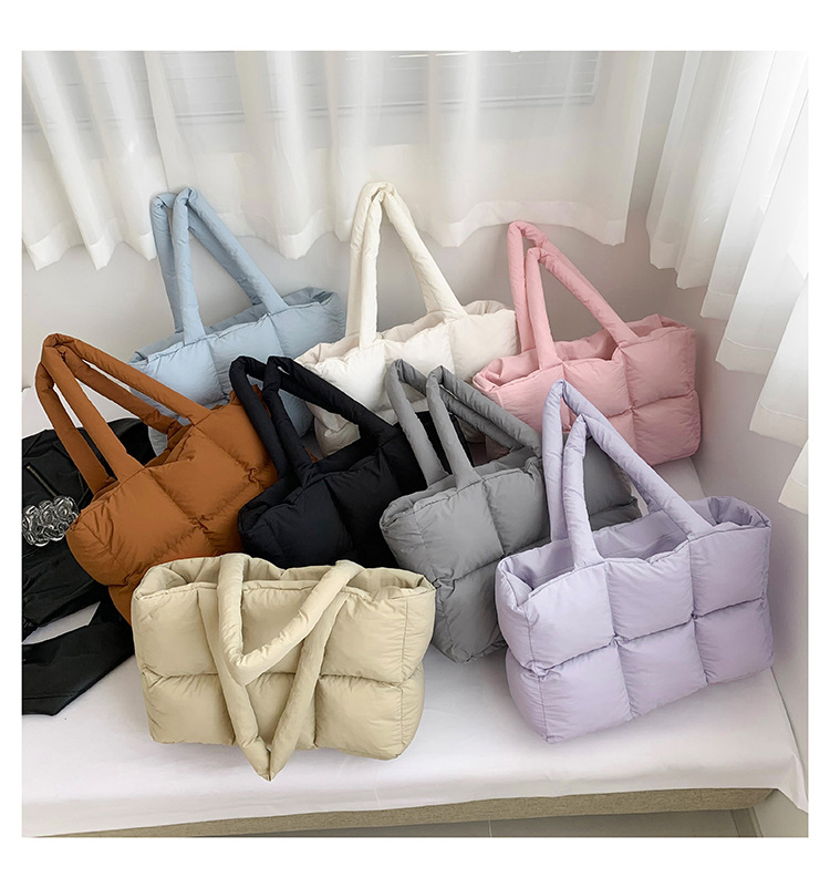 새로운 국경 간 다운 가방 면화 패딩 여성 가방 단순한면으로 채워진 공간 가방 토트 백 부드러운 격자 무늬 겨드랑이 숄더백