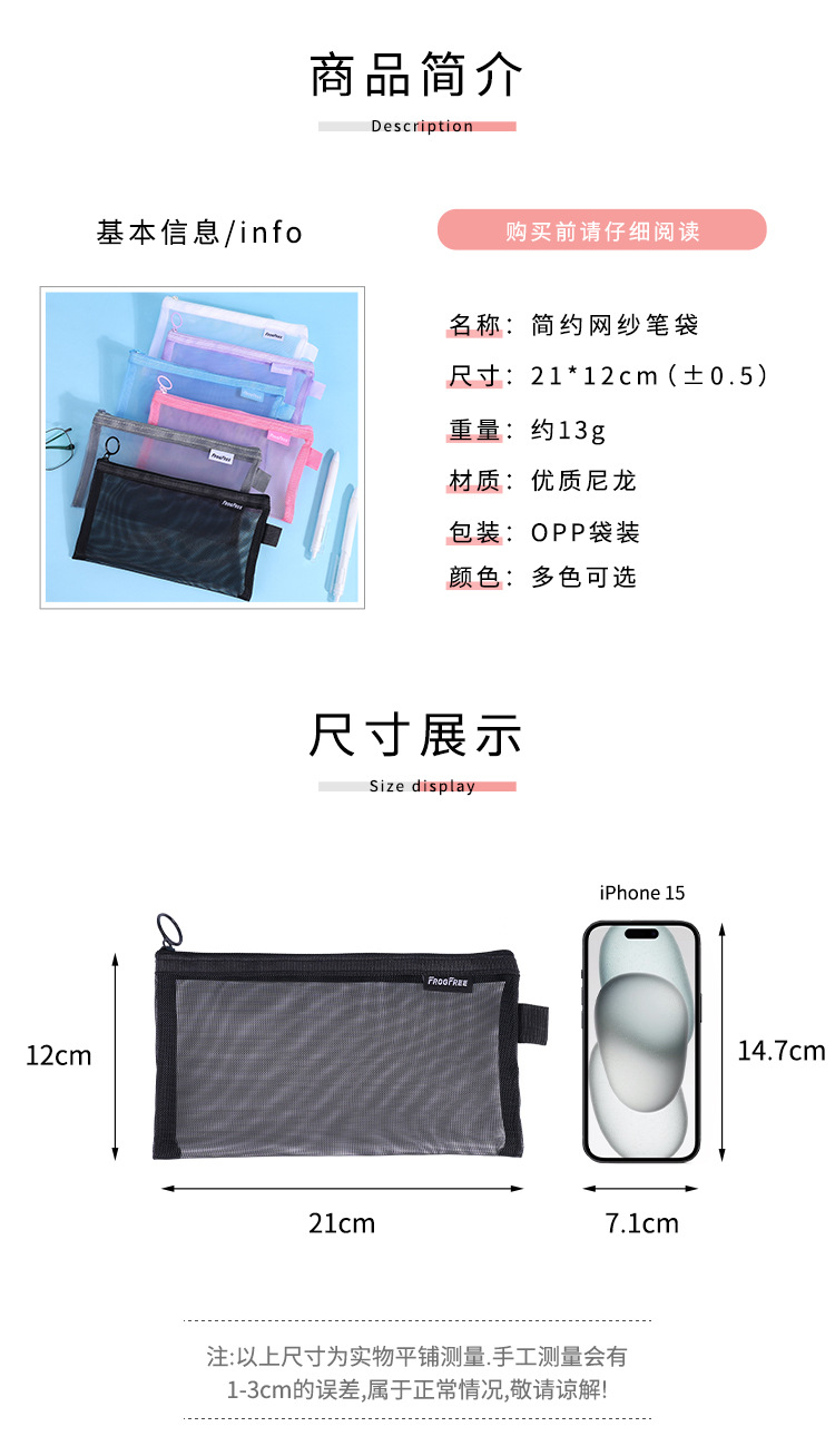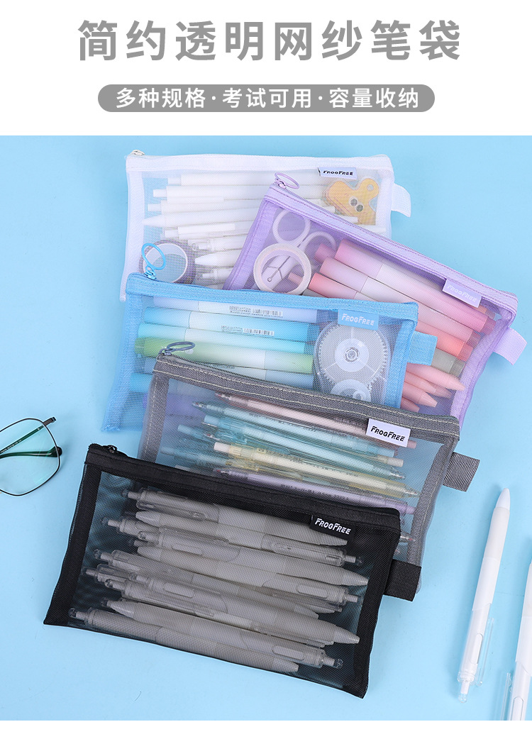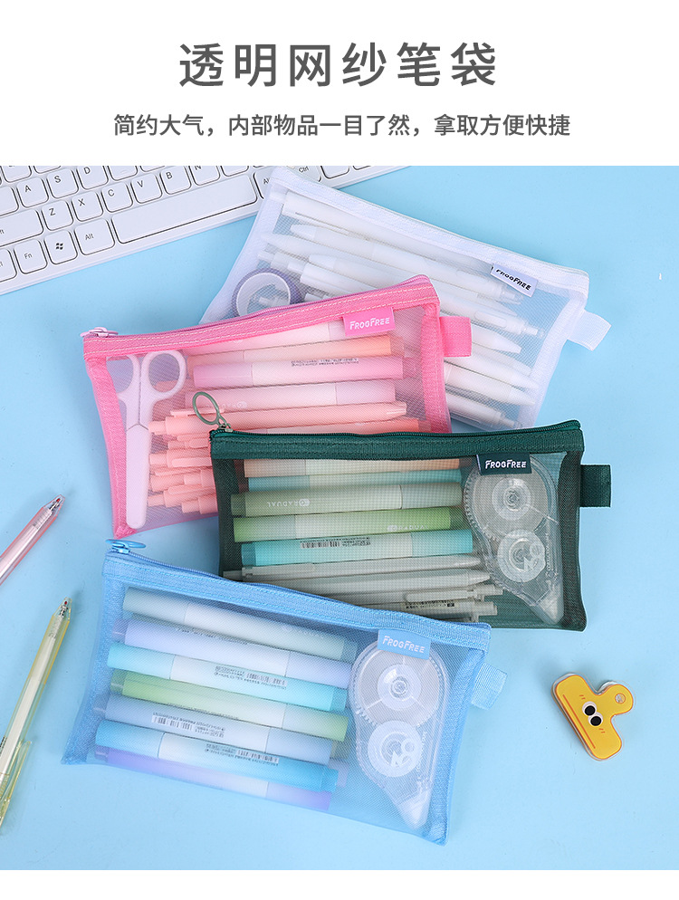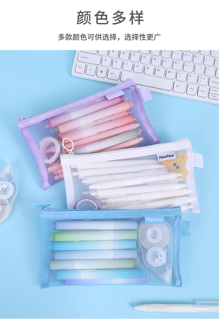 망사 대용량 필통 심플 투명 문구 가방 오염 방지 학생용 필통 귀여운 스타일 연필 케이스 맞춤 제작스토어 가기