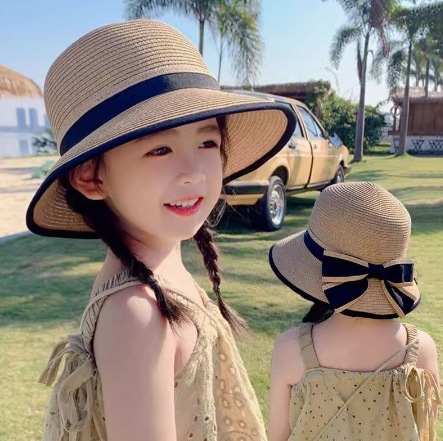 [엄선] 인스타 감성 여아 어린이 밀짚모자 여름용 자외선 차단 모자 귀여운 공주님 해변 휴가용 햇빛 가리개 모자