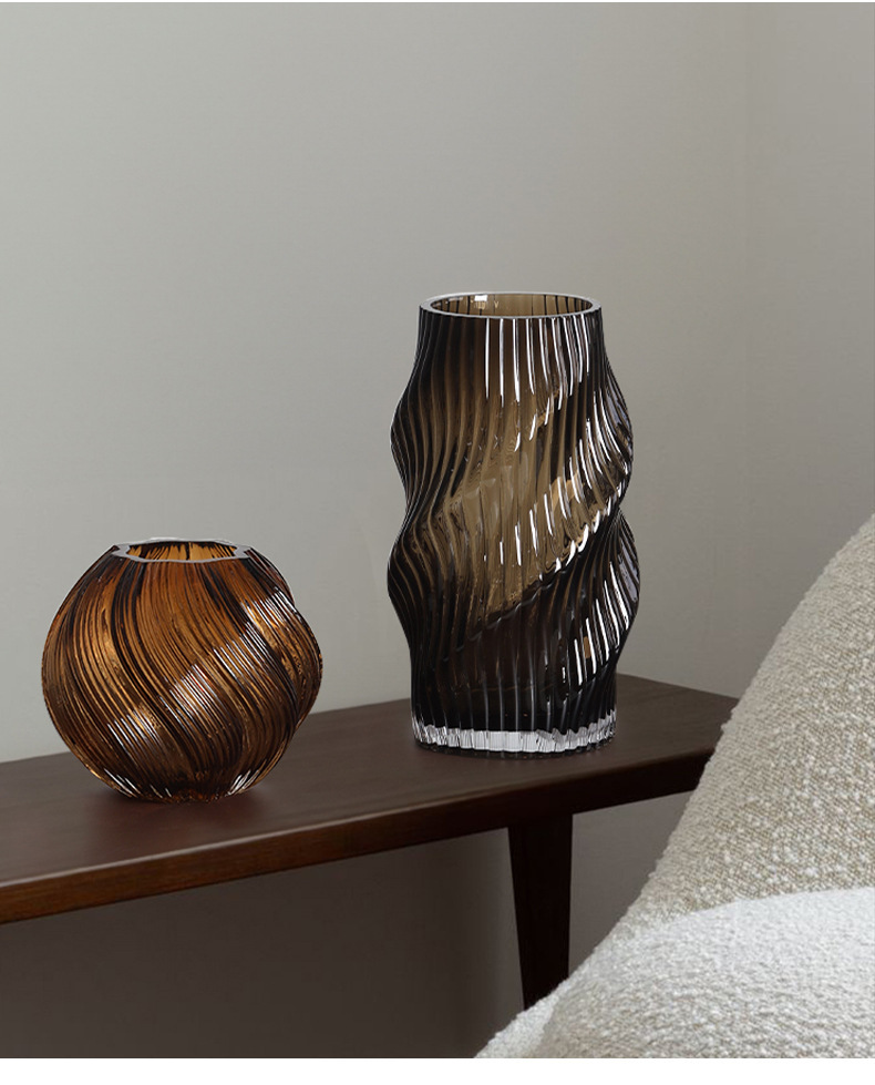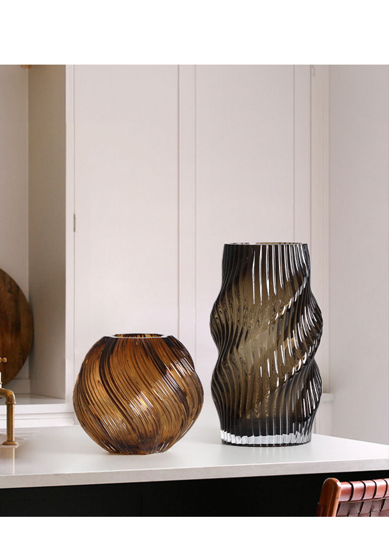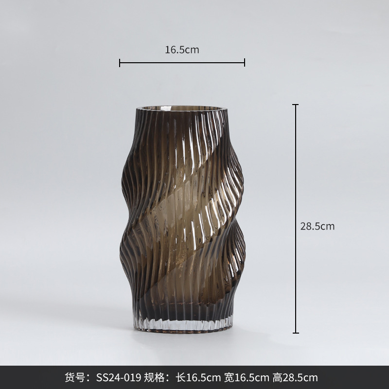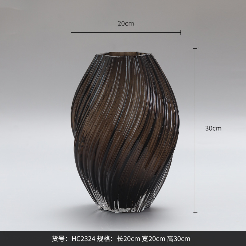 Daxiu 홈 다크 브라운 나선형 불규칙한 꼬인 수경 유리 꽃병 현대 가정 장식 꽃