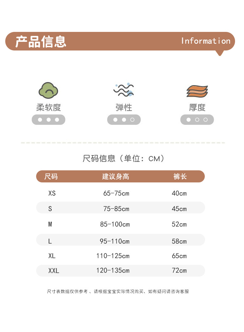 • XS (바지 길이 40cm, 권장 65-75cm,6-12 개월)